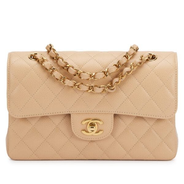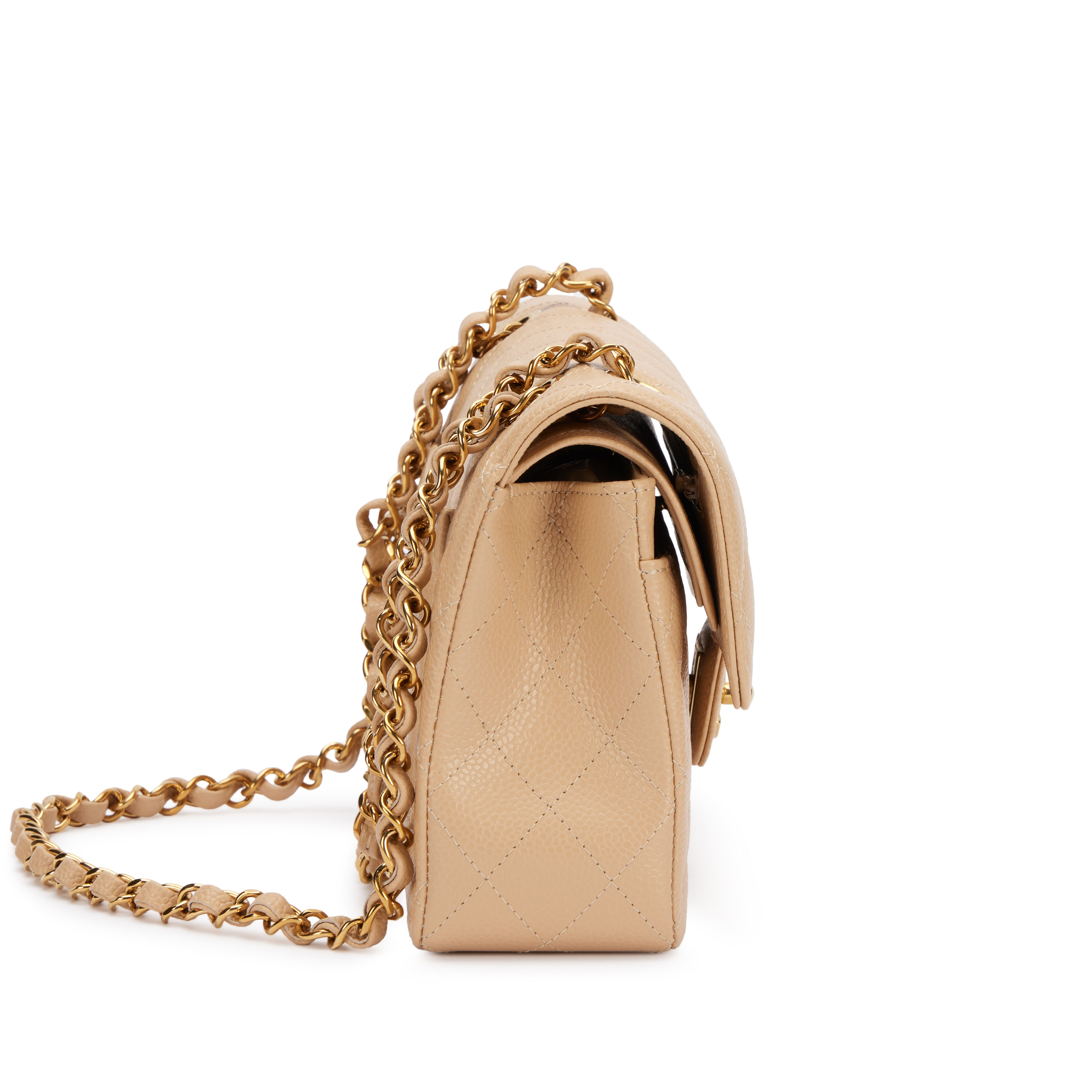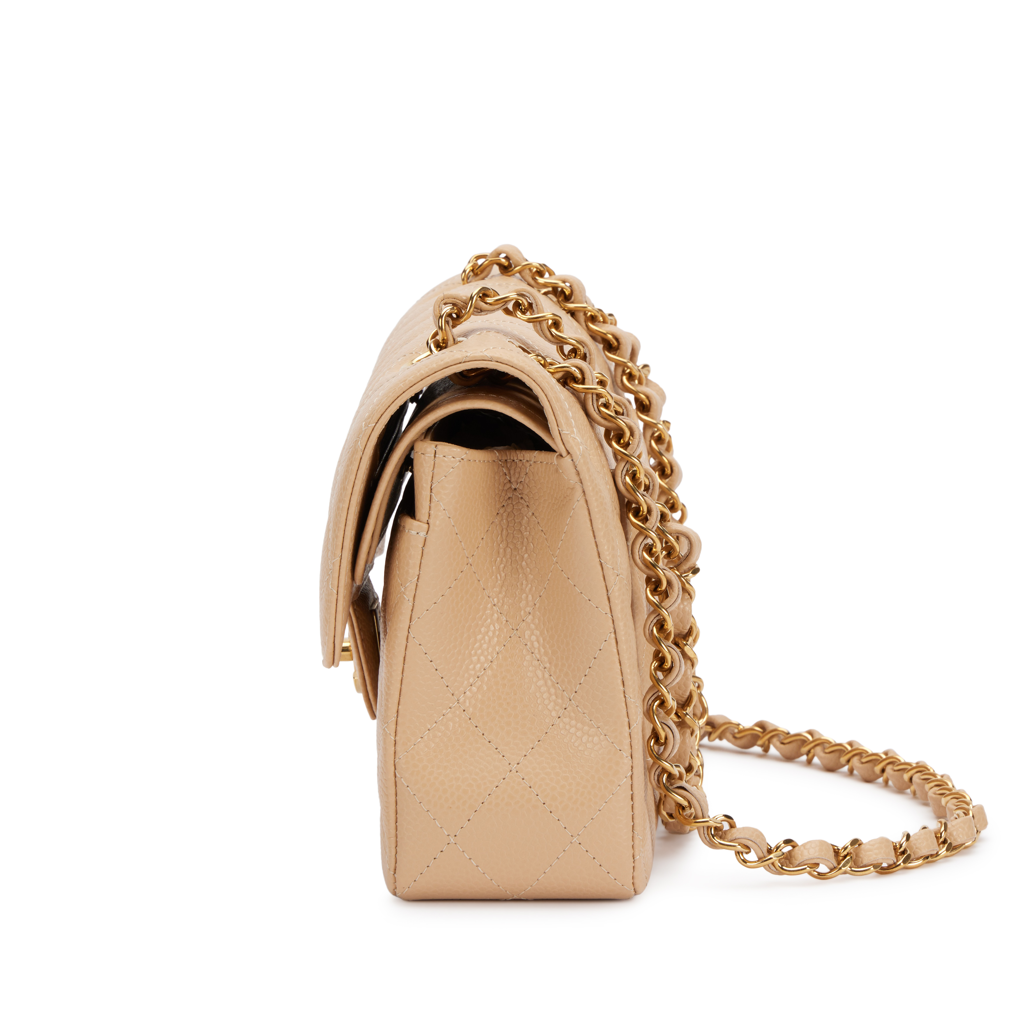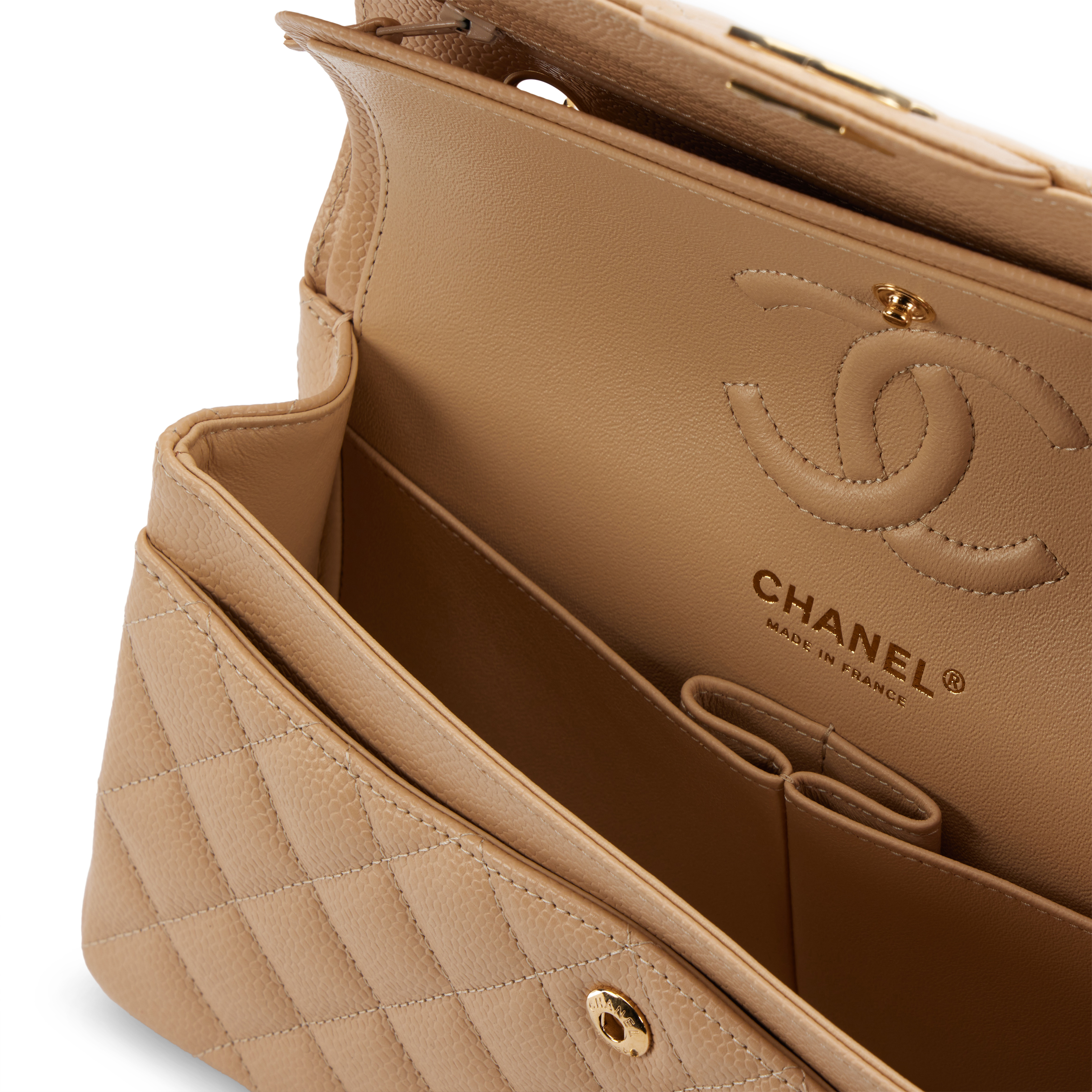 Chanel Beige Quilted Caviar Medium Classic Double Flap Bag Gold Hardware, 2022The interior is lined in a tonal leatherIncludes dust bag and boxThis item is final sale and not eligible for return