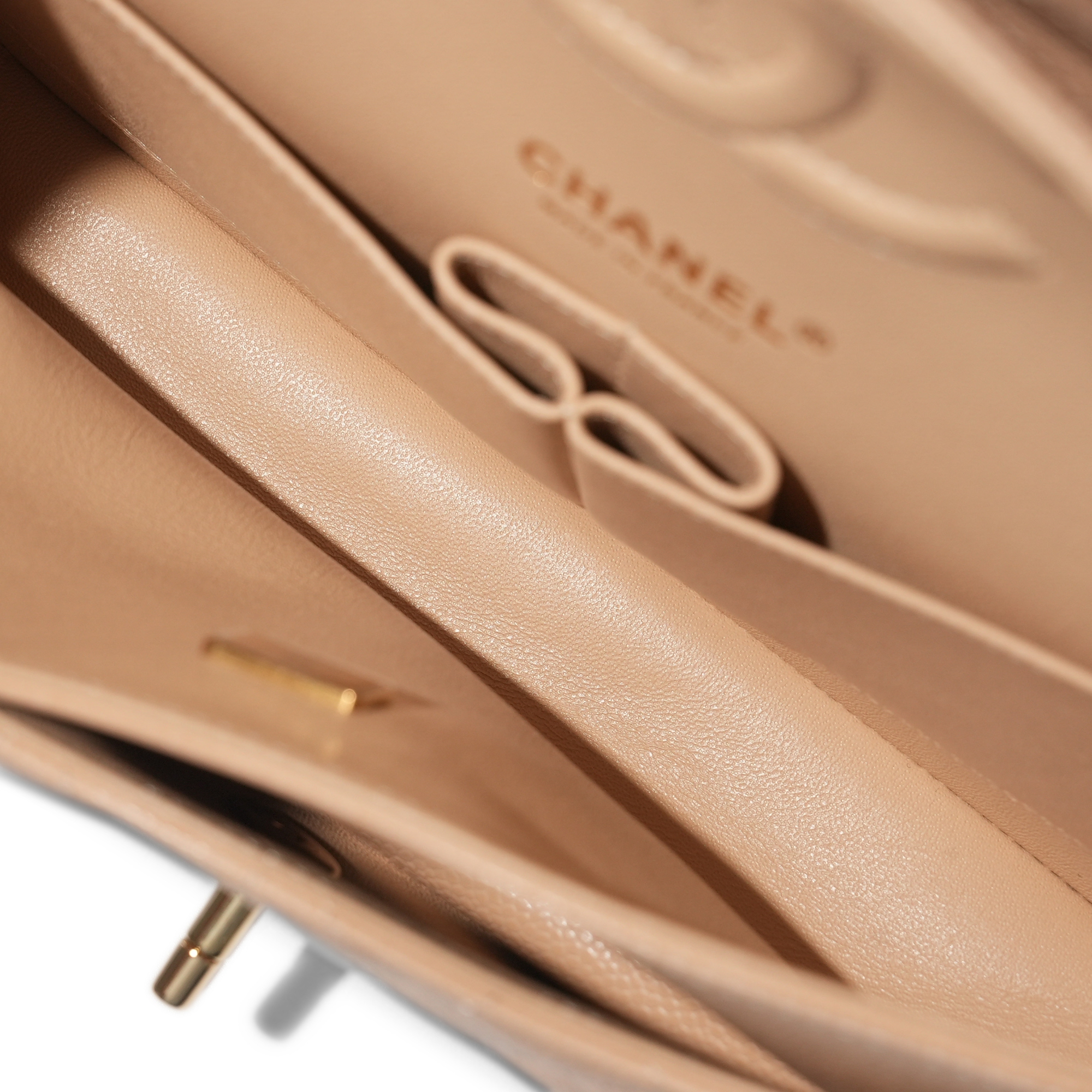 Chanel Beige Quilted Caviar Timeless Classic Double Flap Bag Brushed Gold Hardware, 2023The interior is lined with tonal leatherIncludes dust bag and boxThis item is final sale and not eligible for return