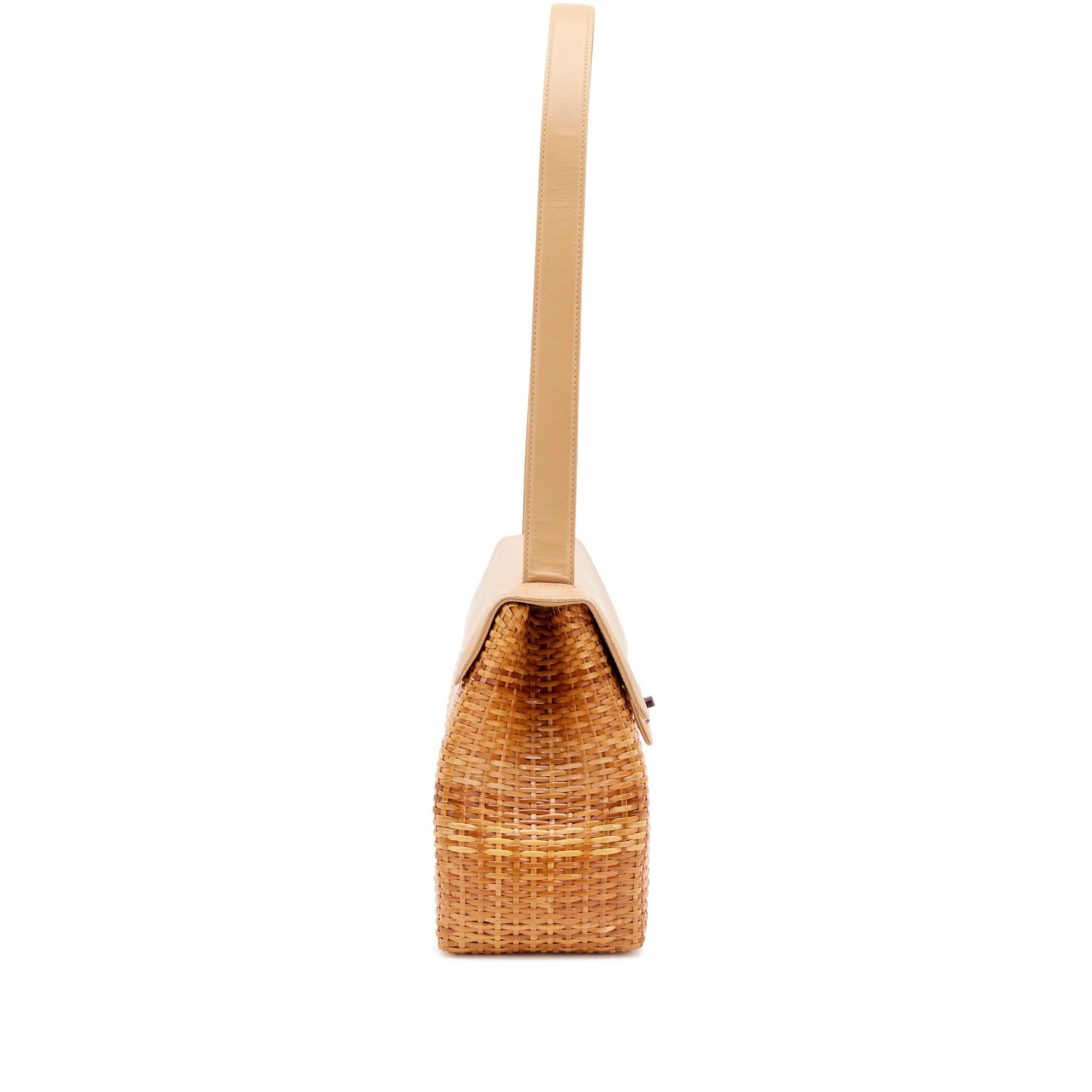 Chanel Beige Wicker Rattan and Lambskin Basket Shoulder Bag Tortoiseshell Bakelite Hardware, 1997-1999The interior is lined in a beige textile materialIncludes boxThis item is final sale and not eligible for return