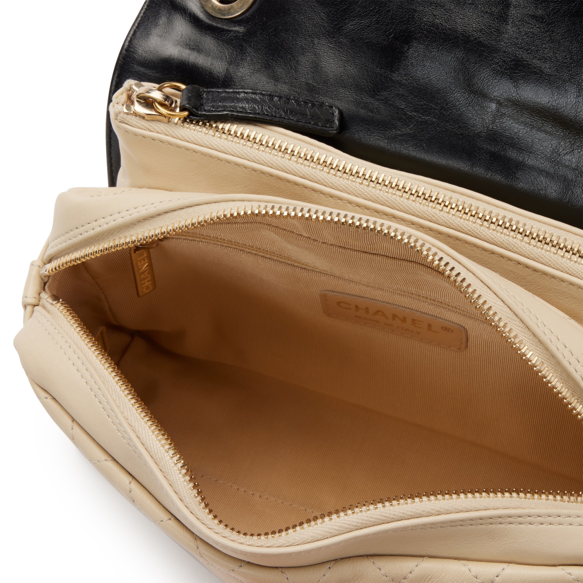 Chanel Black and Beige Quilted Leather CC Camera Flap Gold Hardware, 2012This bag is lined with beige fabricIncludes authenticity card and dustbagThis item is final sale and not eligible for return
