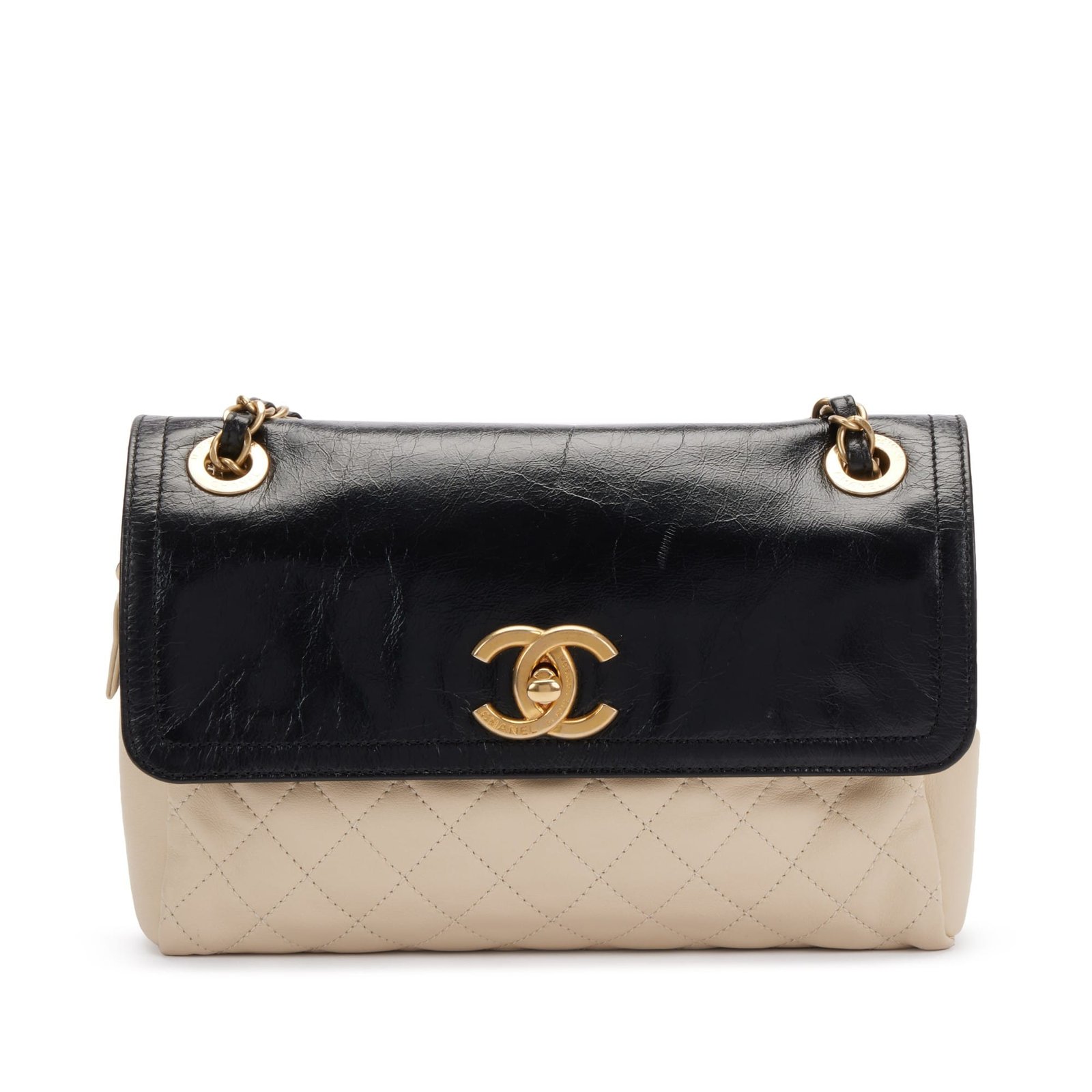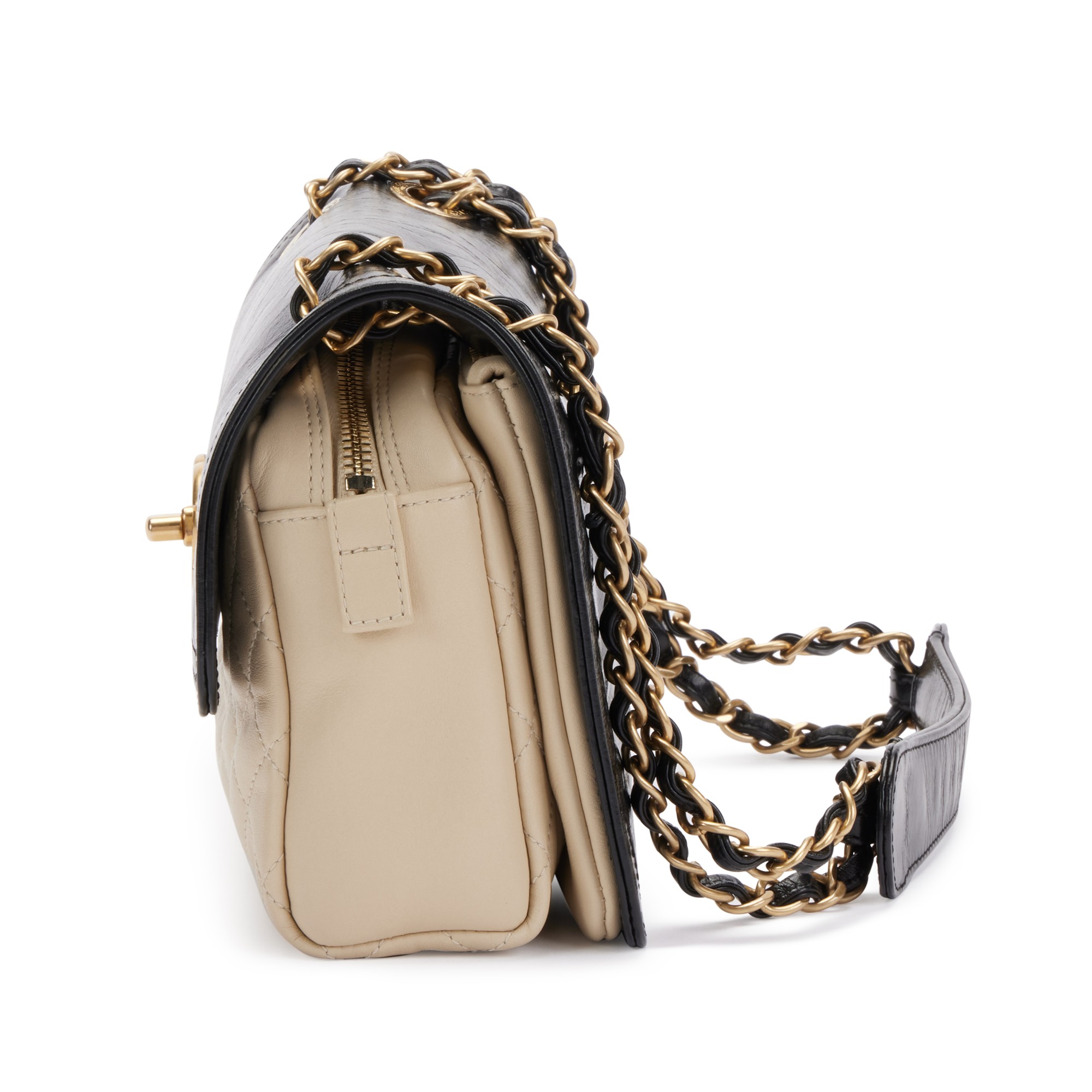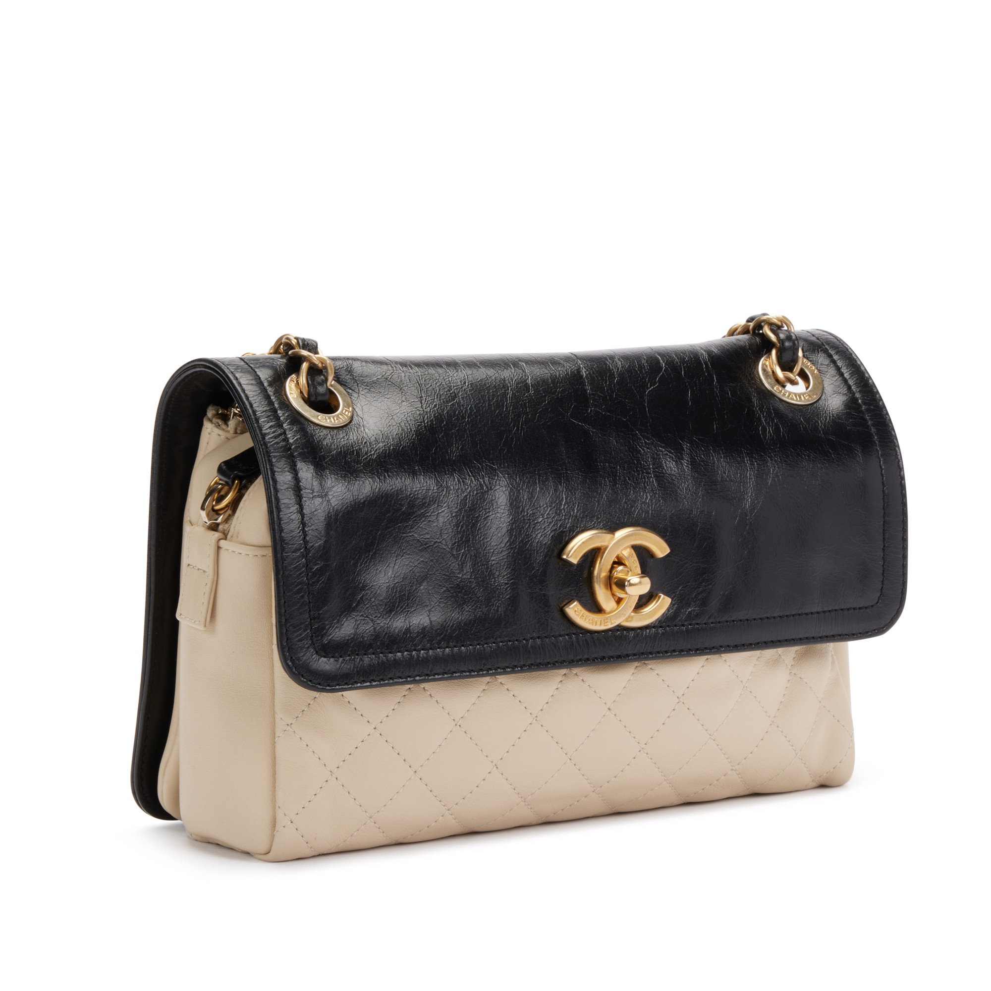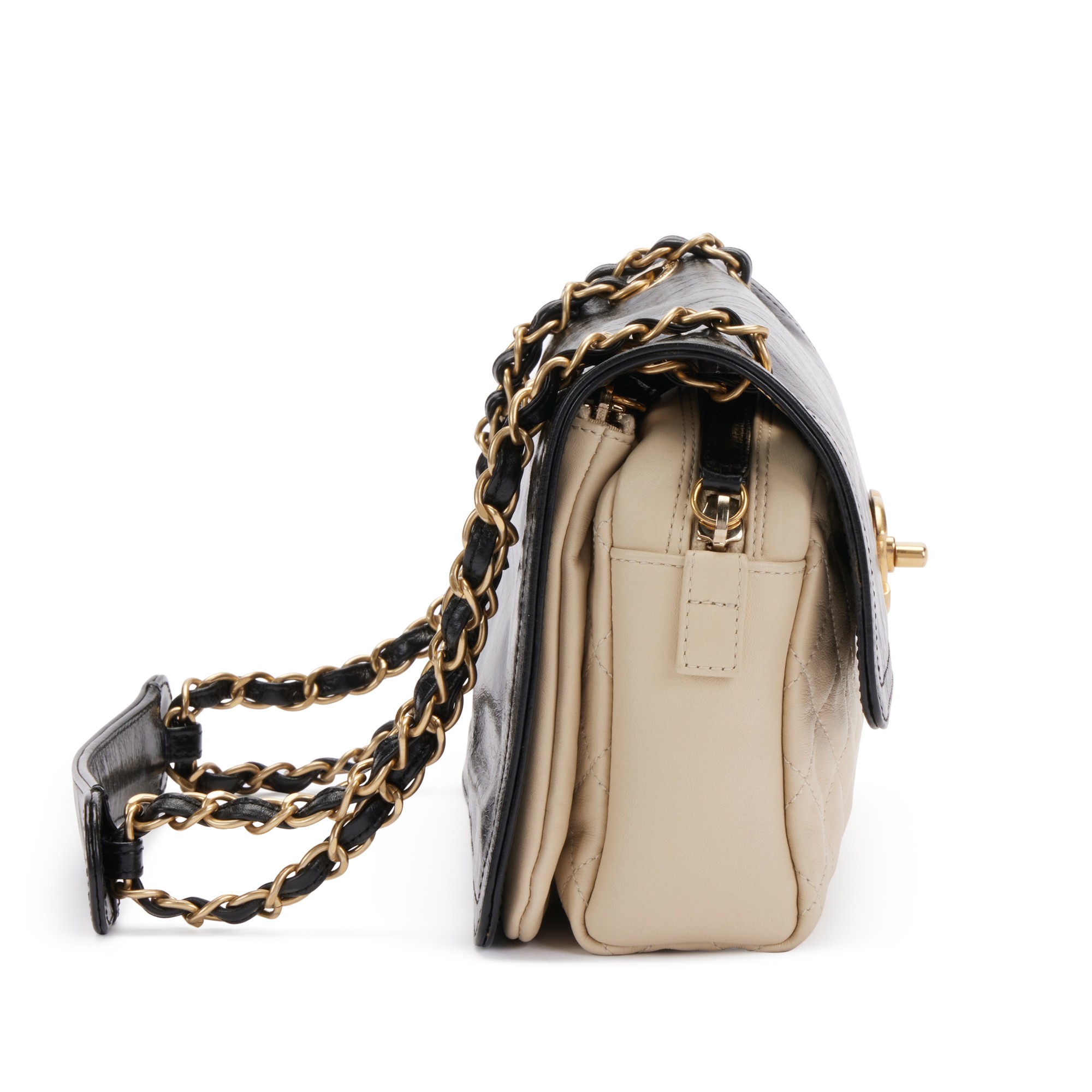 Black and Beige Quilted Leather CC Camera Flap Gold Hardware, 2012