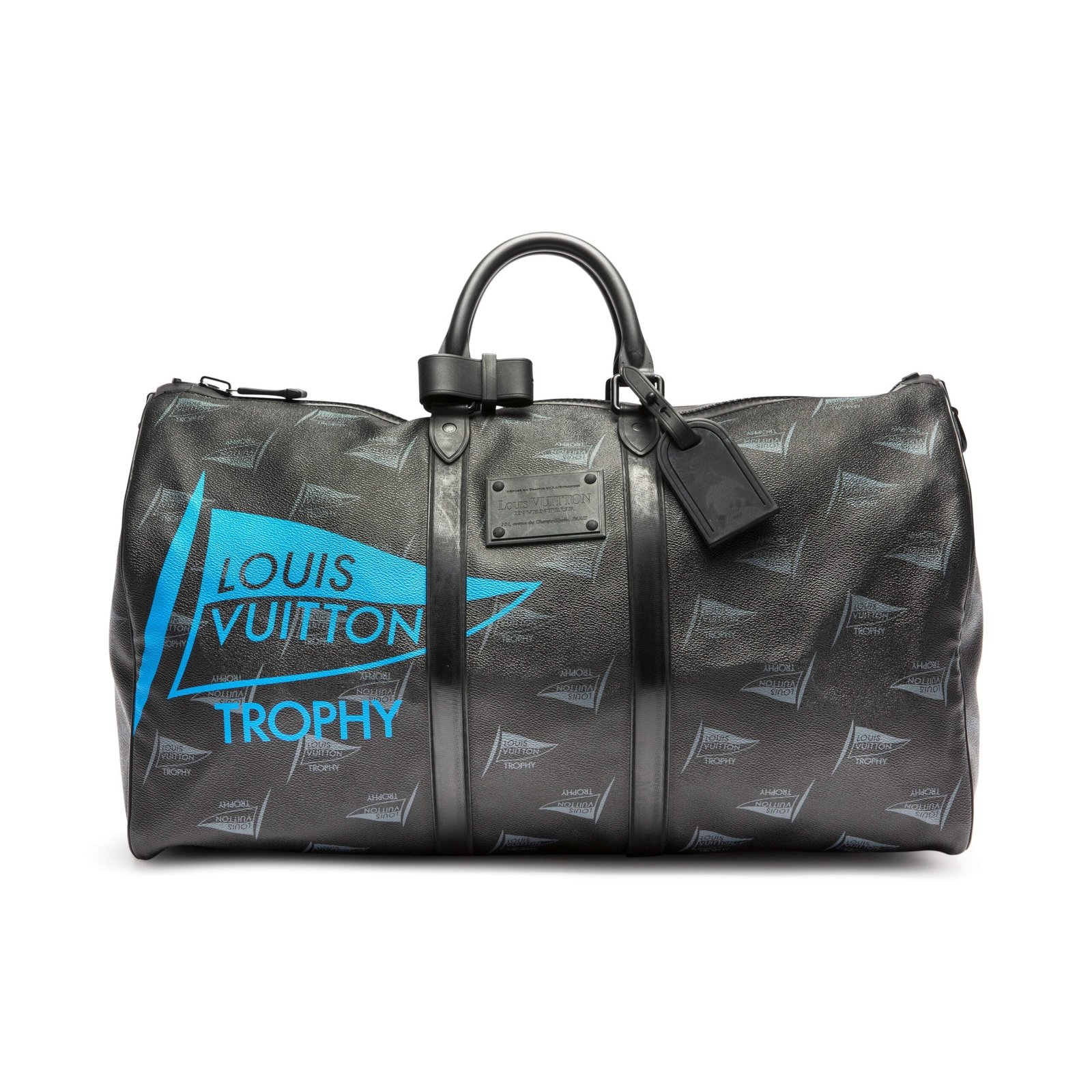 Louis Vuitton Black and Blue Limited Edition Dubai LV Cup Canvas Waterproof Keepall Bandouliere 55 with Black Hardware, 2010Includes dustbag, luggage tag, shoulder strap and poignetLimited Edition, number 37 of 200This item is final sale and not eligible for return