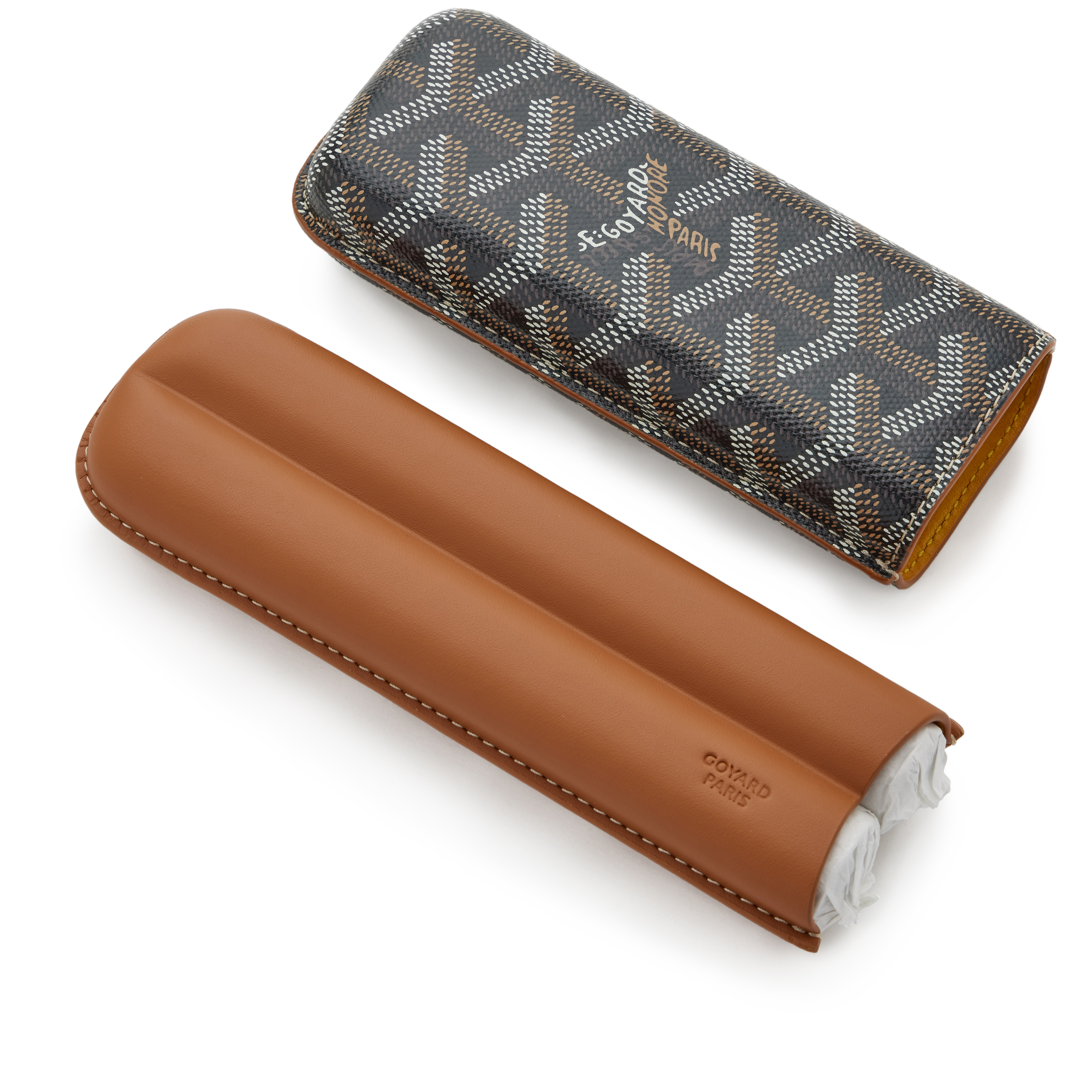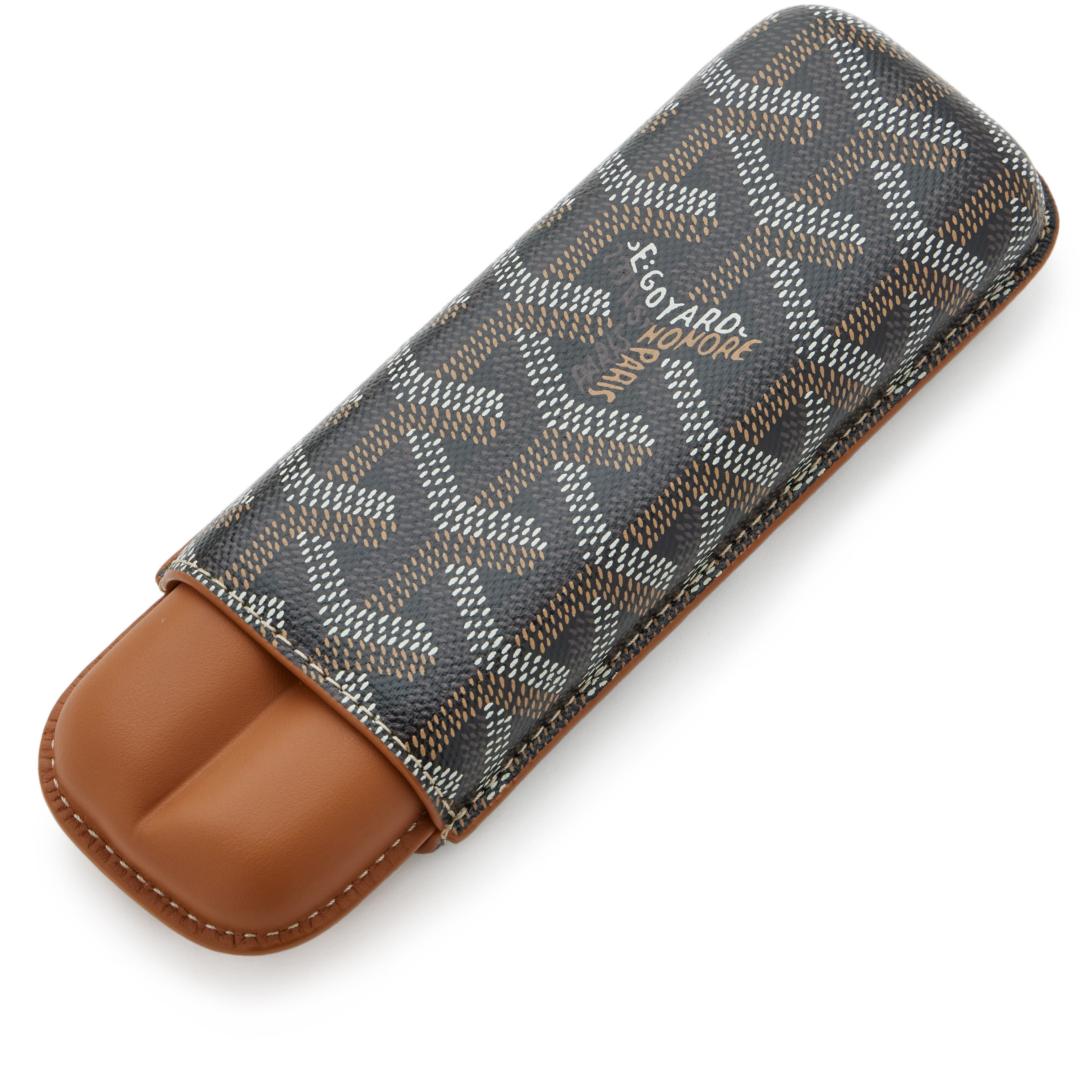 Black and Brown Goyardine Canvas & Clamecy Cowhide Churchill Double Cigar Case
