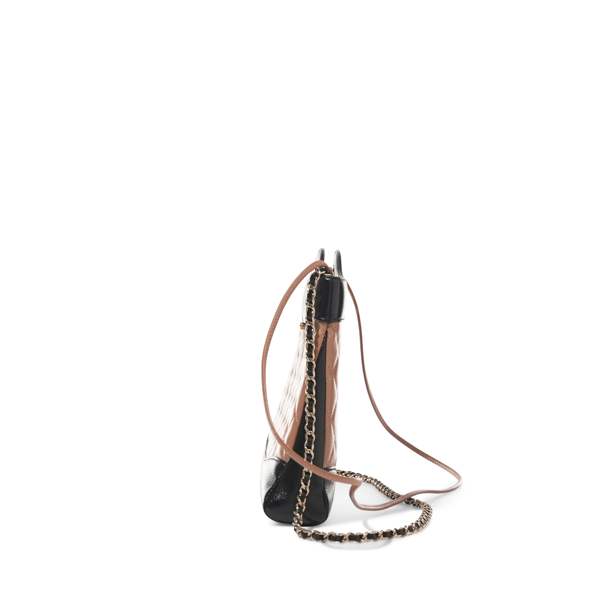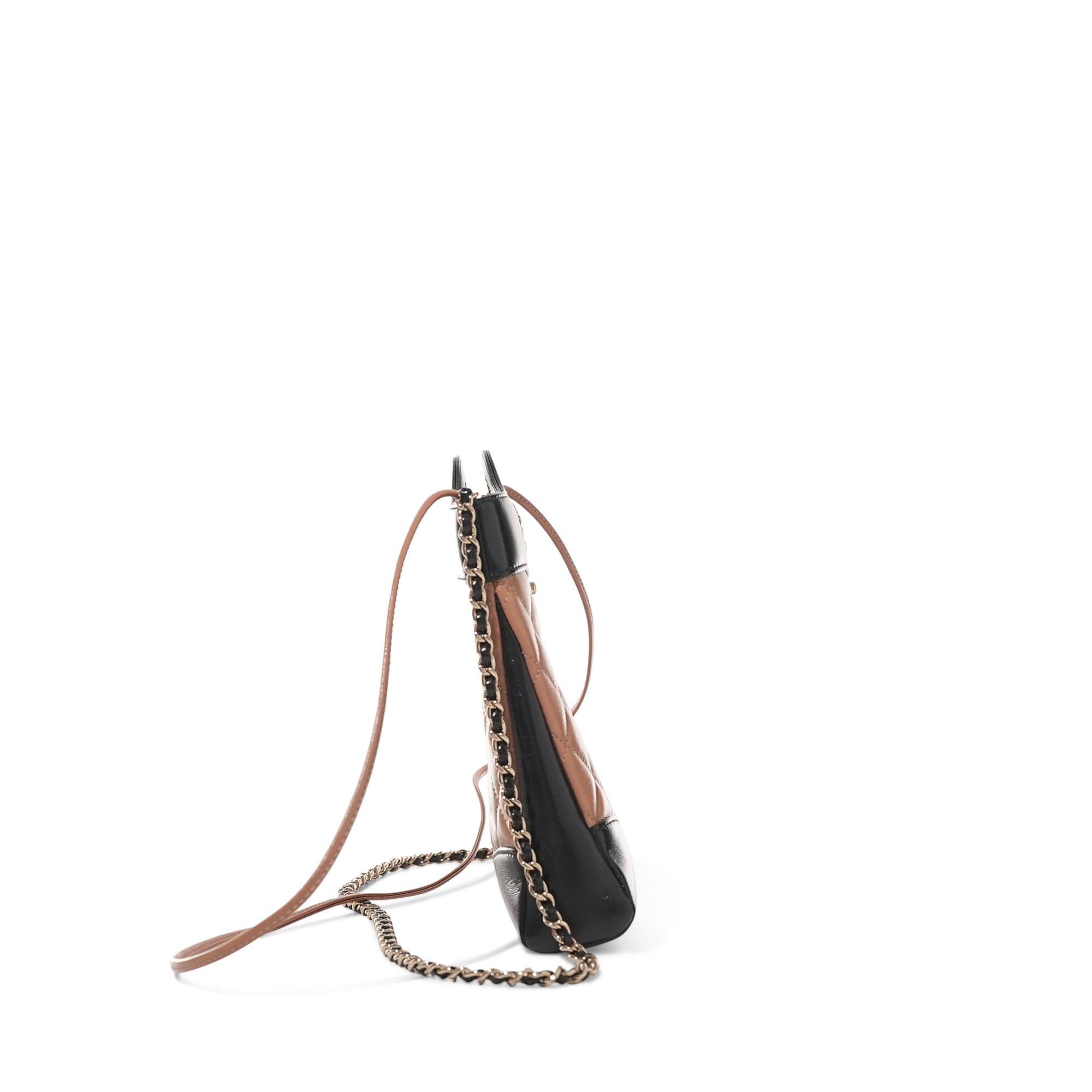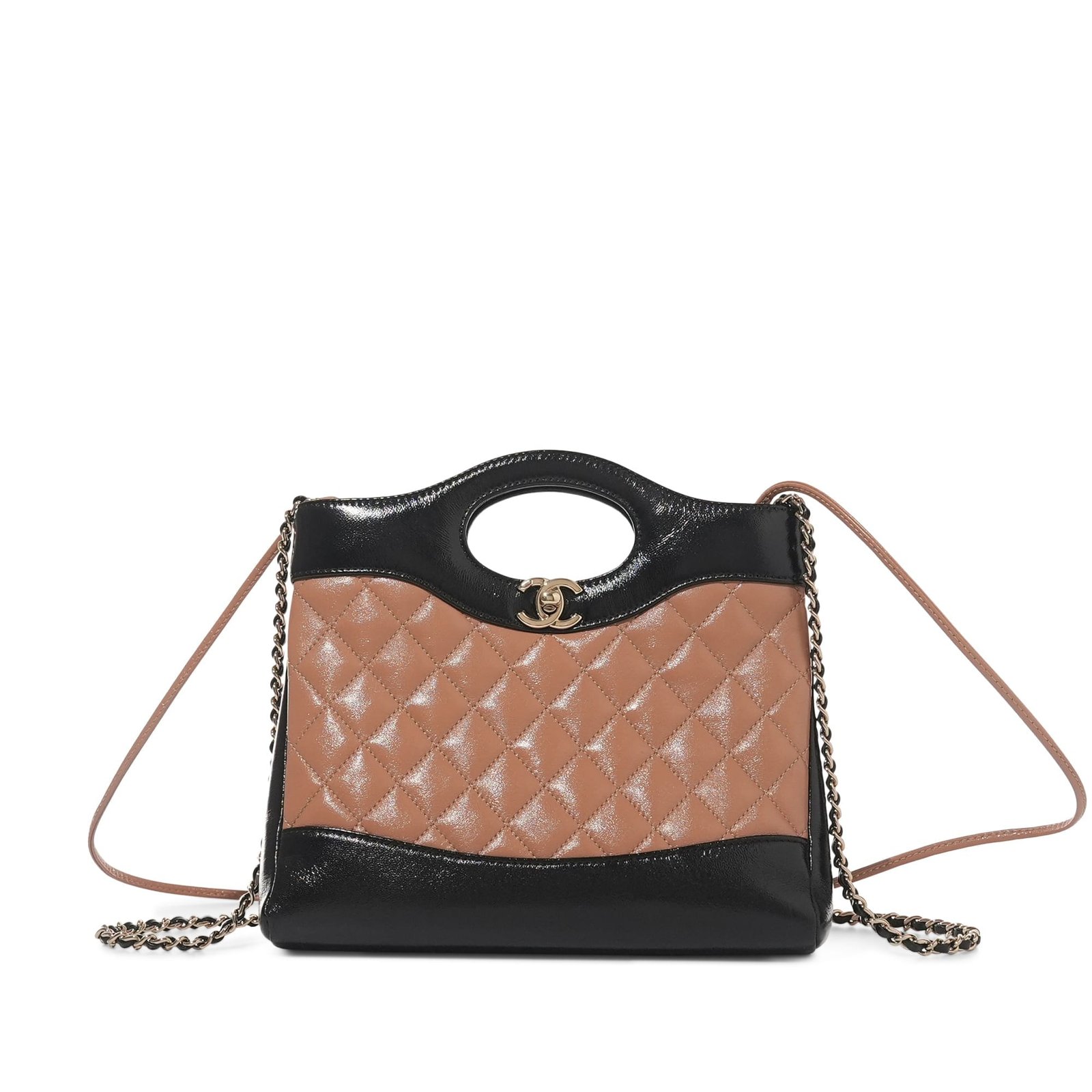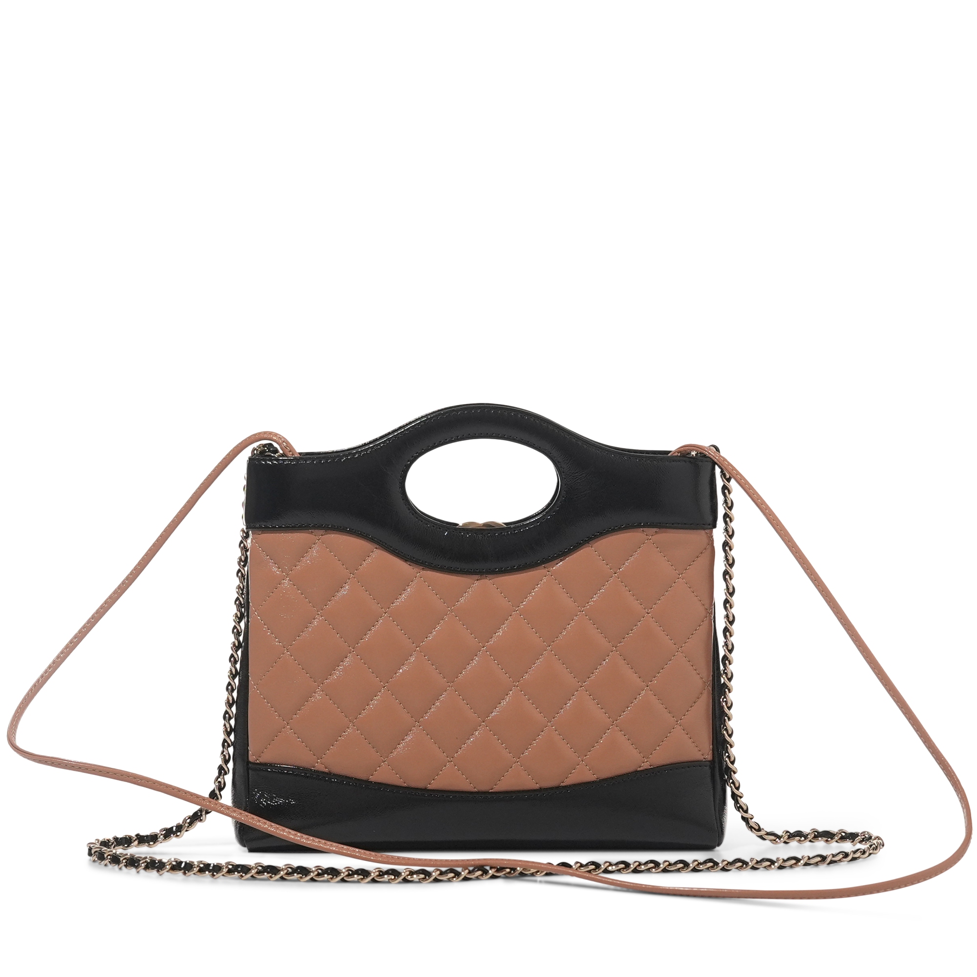 Black and Dark Beige Quilted Lambskin Chanel 31 Mini Shopping Bag Pale Gold Hardware