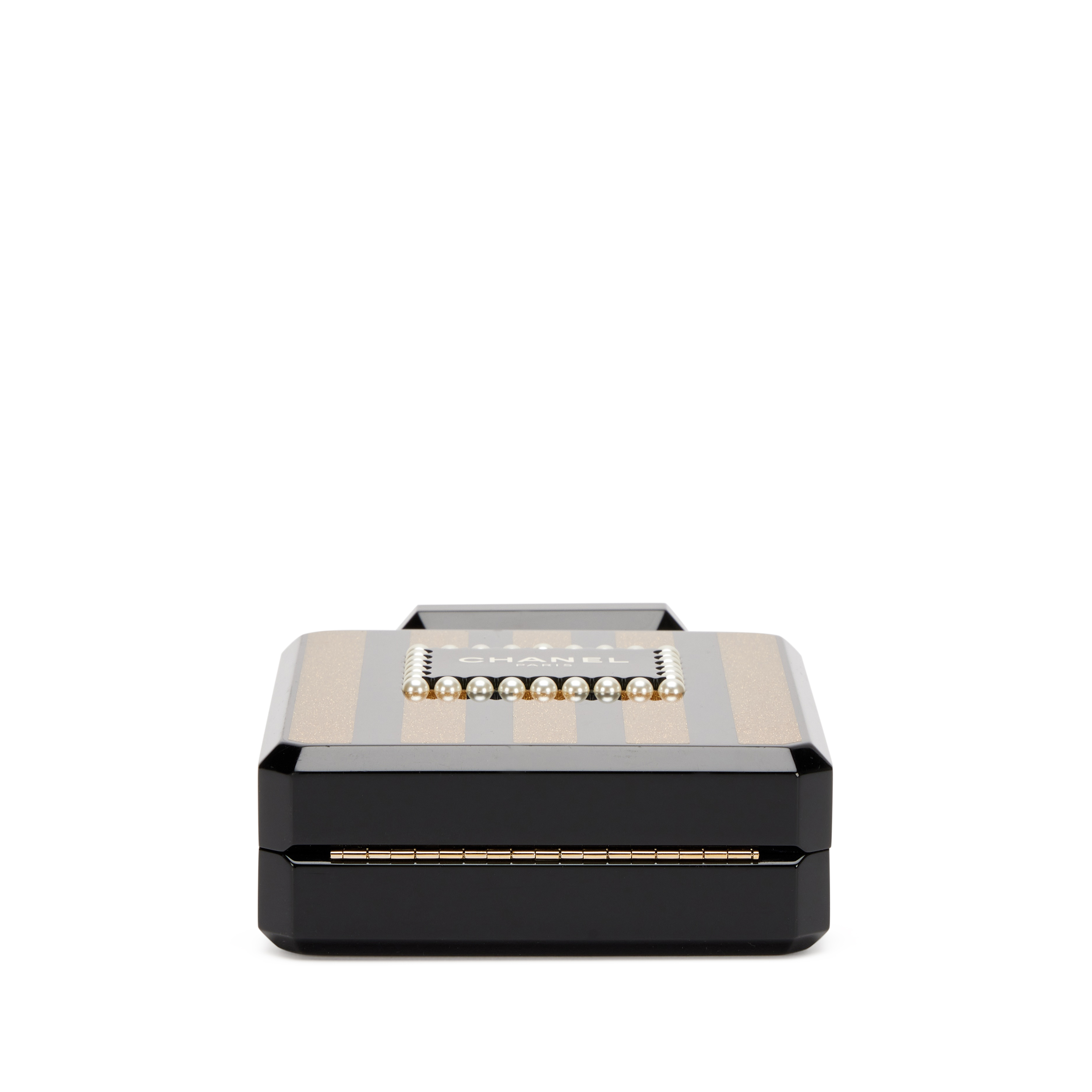 Chanel Black and Gold Glitter Plexiglass Faux Pearl Embellished Perfume Bottle Minaudière Gold Hardware, 2017The interior is lined in a gold leatherIncludes authenticity card, dust bag, and boxThis item is final sale and not eligble for return
