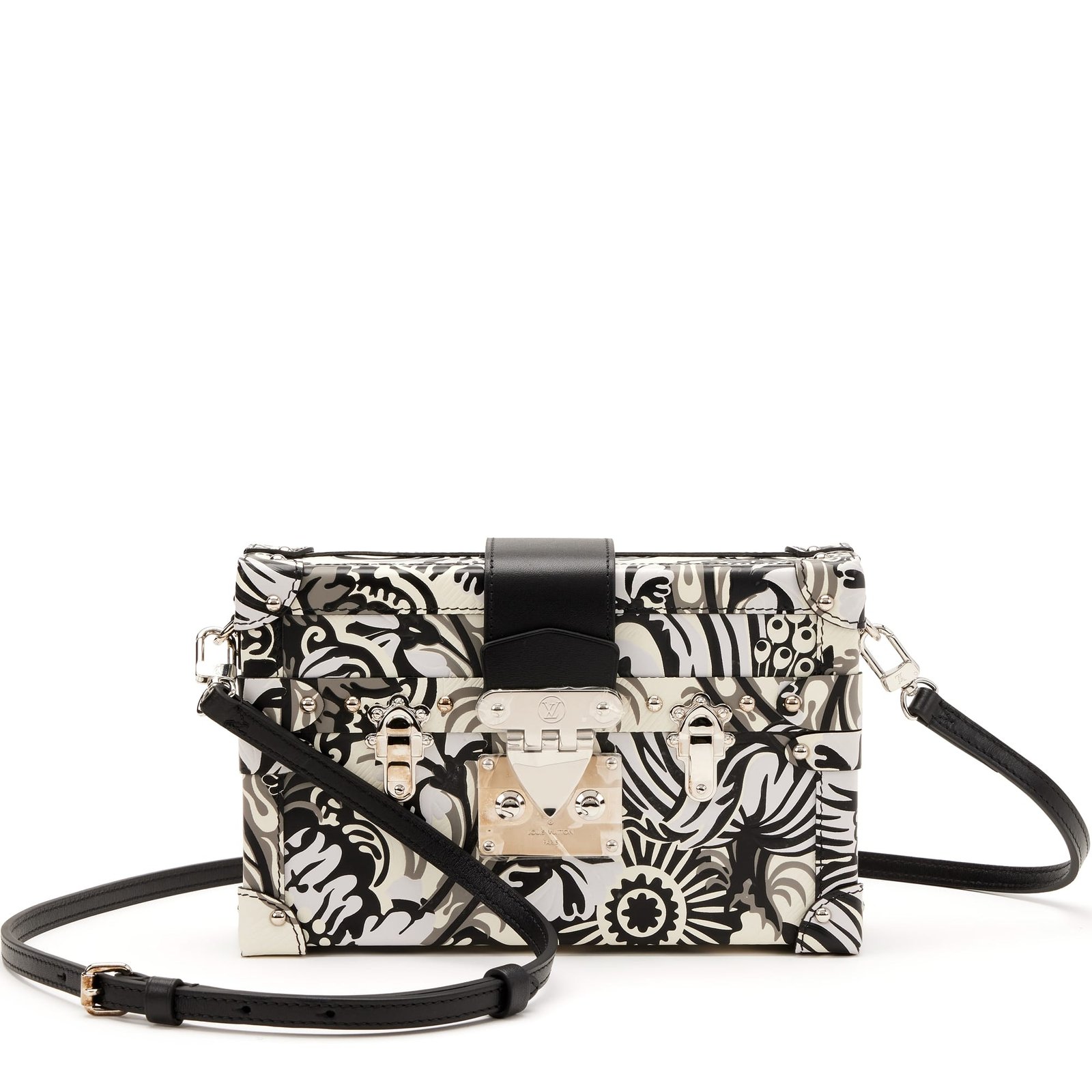 Louis Vuitton Black and White Floral Printed Embossed Calfskin Petite Malle Silver Hardware, 2017The interior is lined in beige leatherIncludes strap, strap dustbag, care booklet, care card, tag, dustbag and boxThis item is final sale and not eligible for return