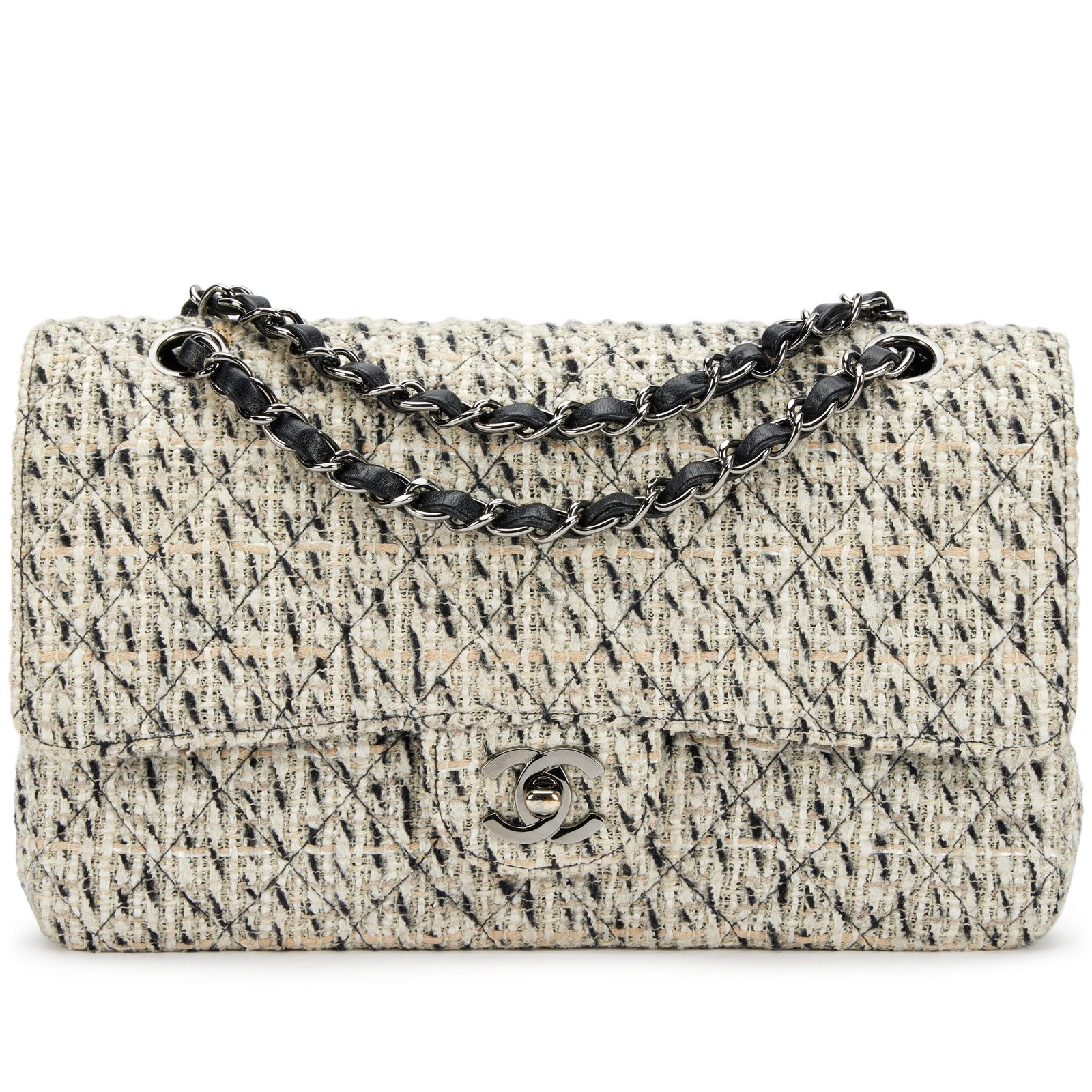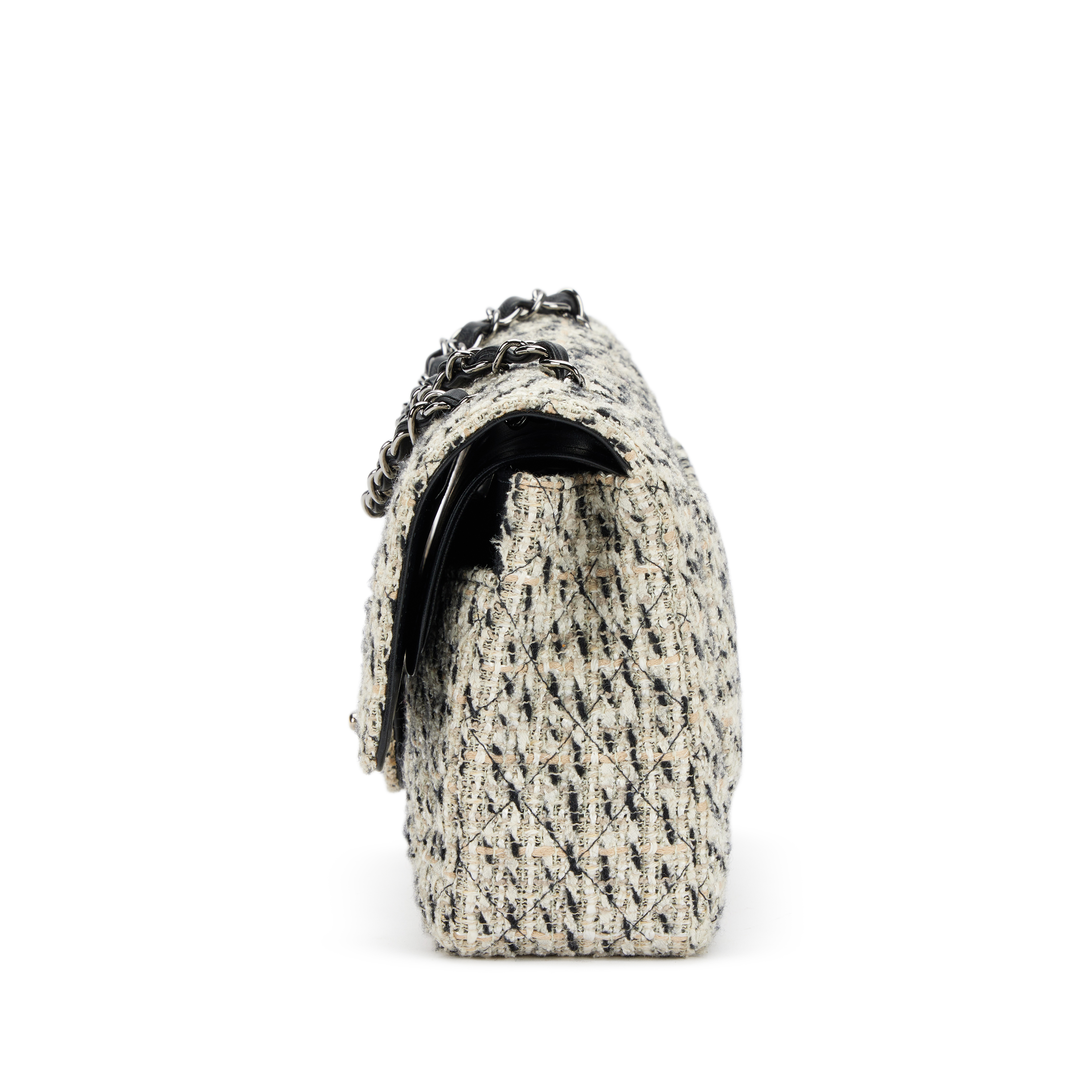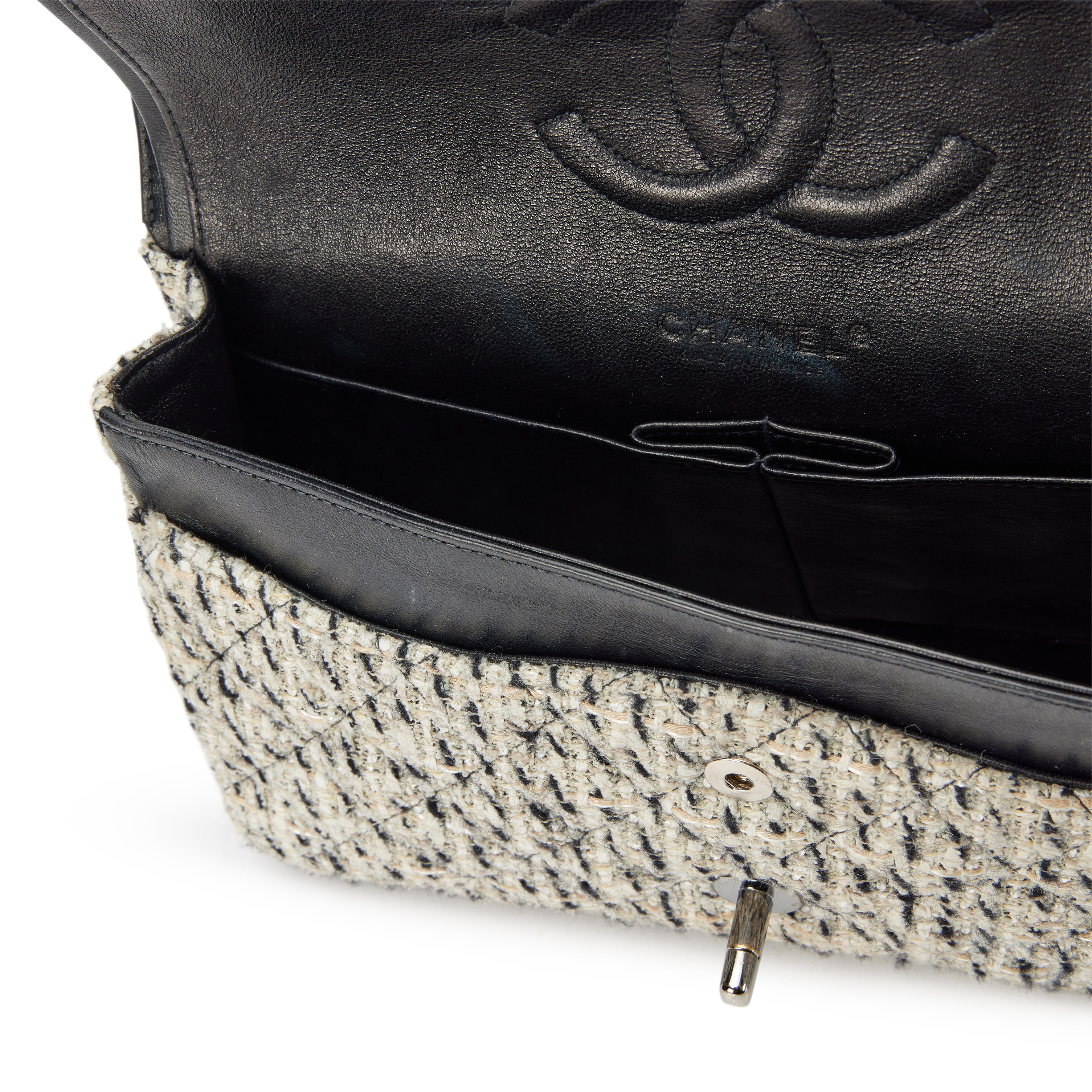 Chanel Black and White Multicolor Tweed Medium Classic Double Flap Bag Silver Hardware, 2002-2003The interior is lined in a black leatherIncludes dust bag and boxThis item is final sale and not eligible for return