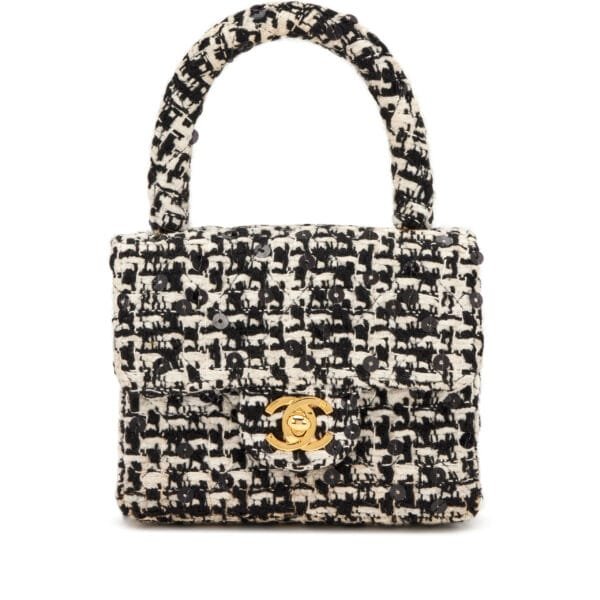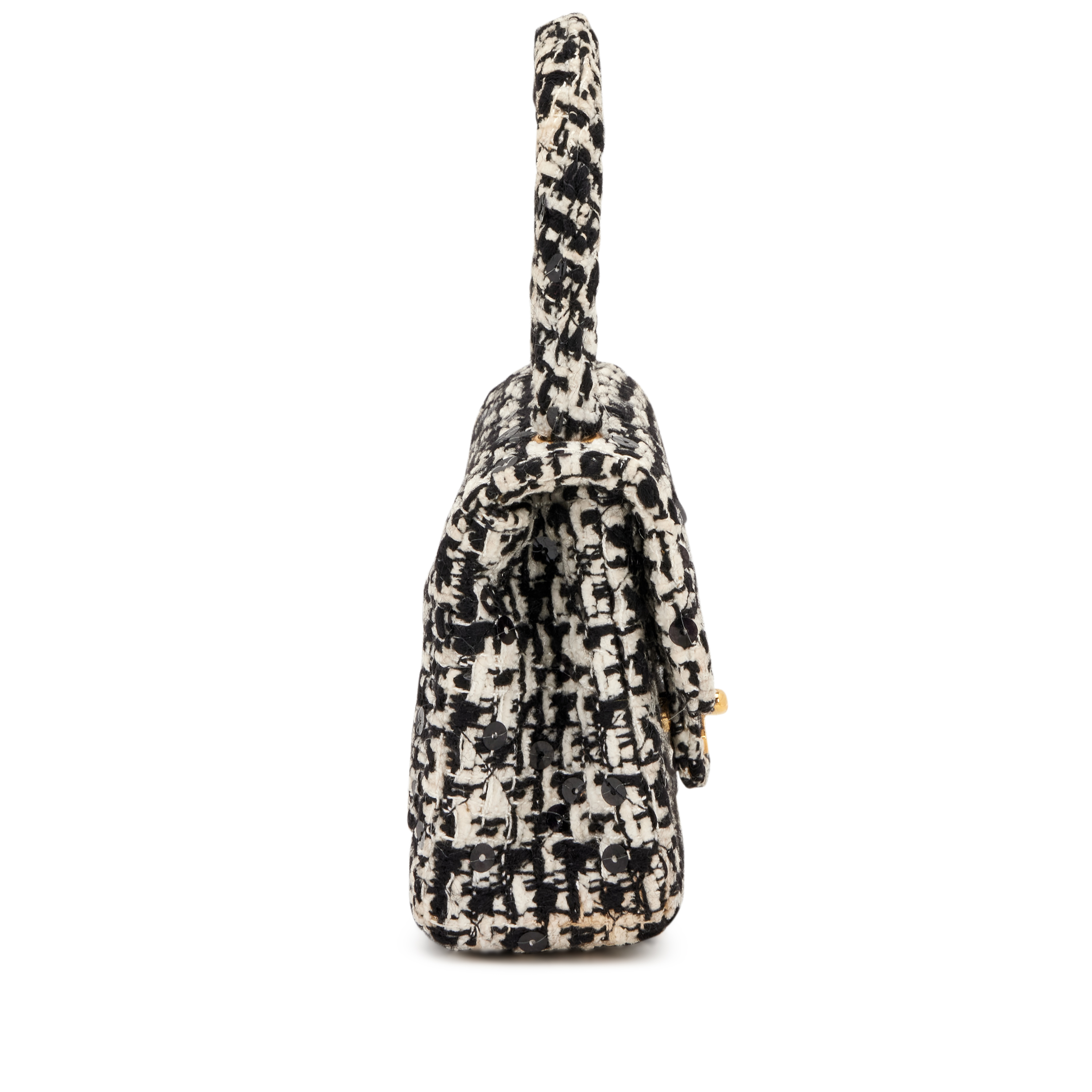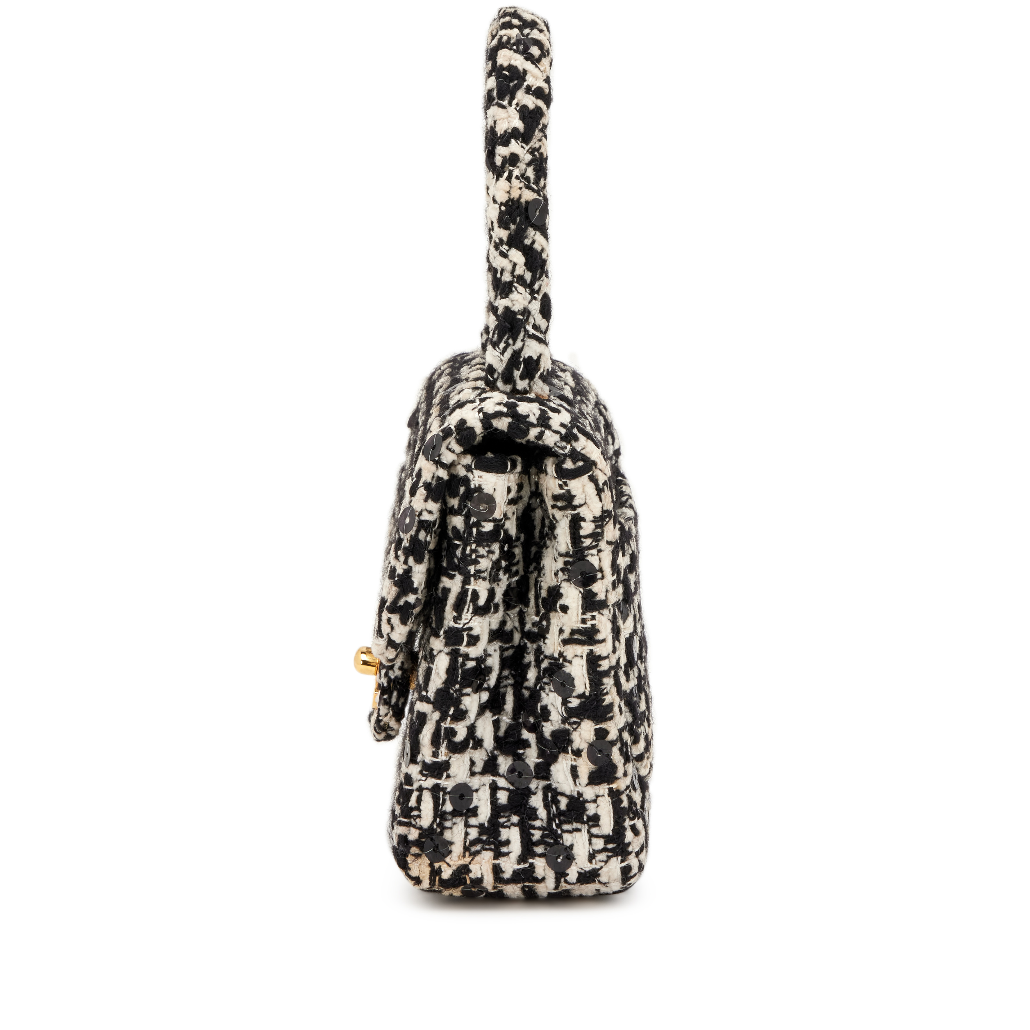 Black and White Tweed Mini Top Handle Flap Gold Hardware, 1990s