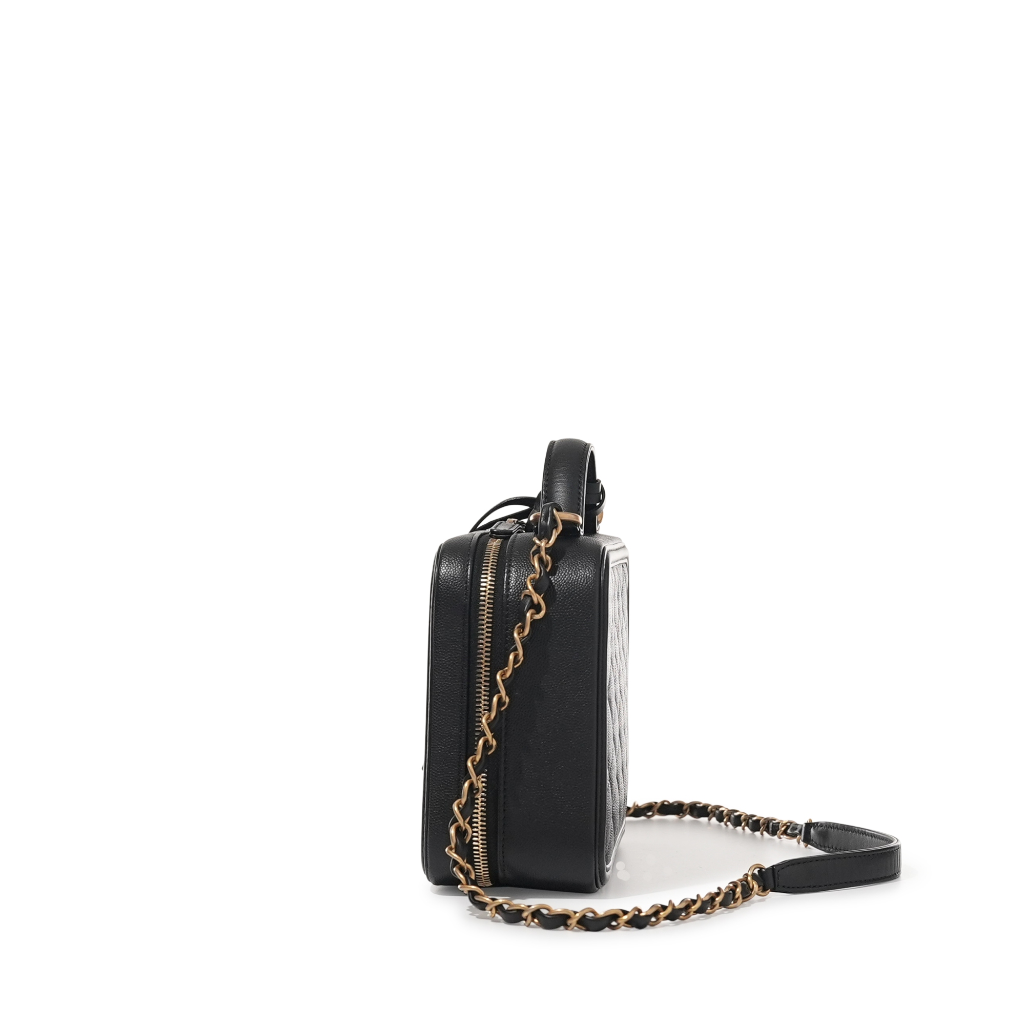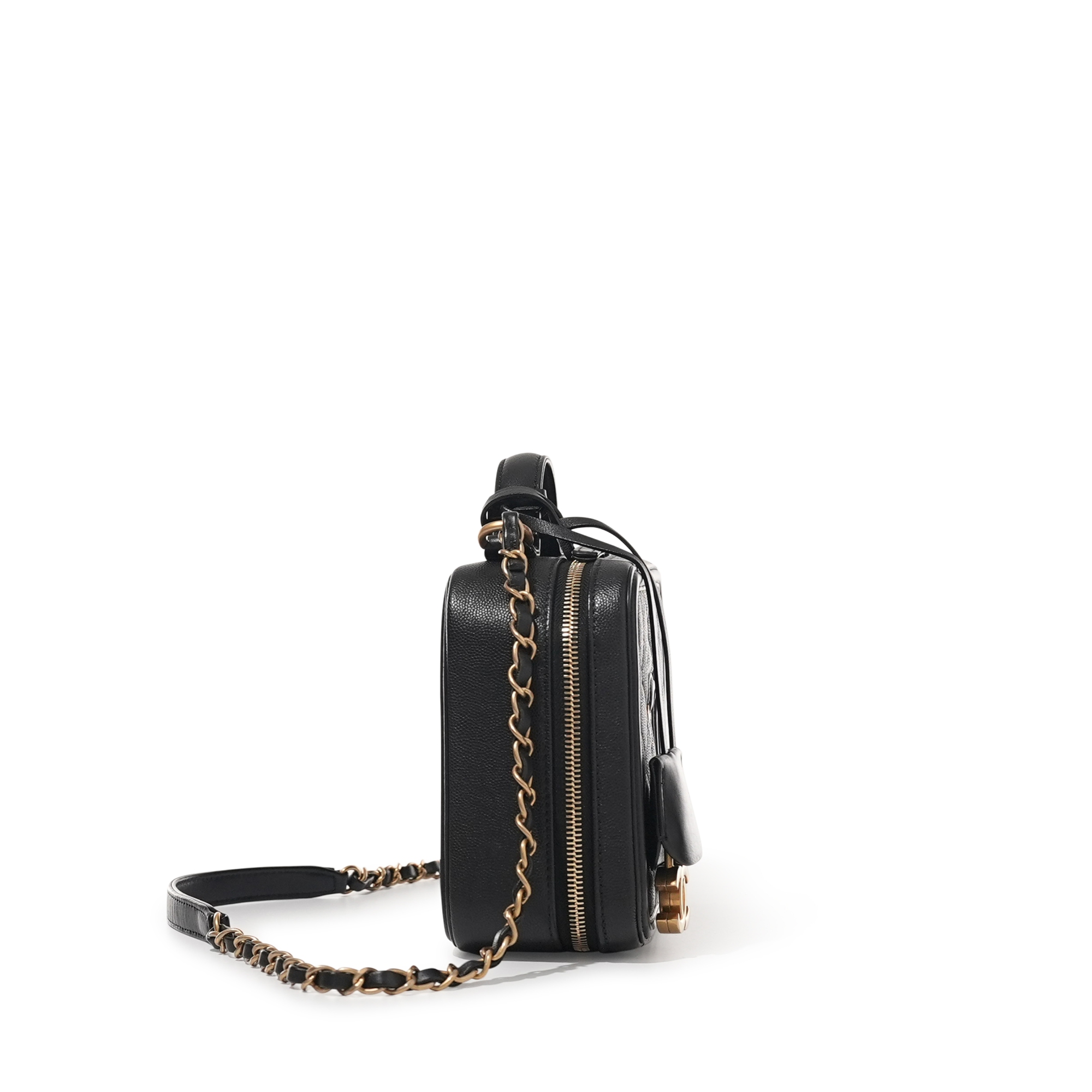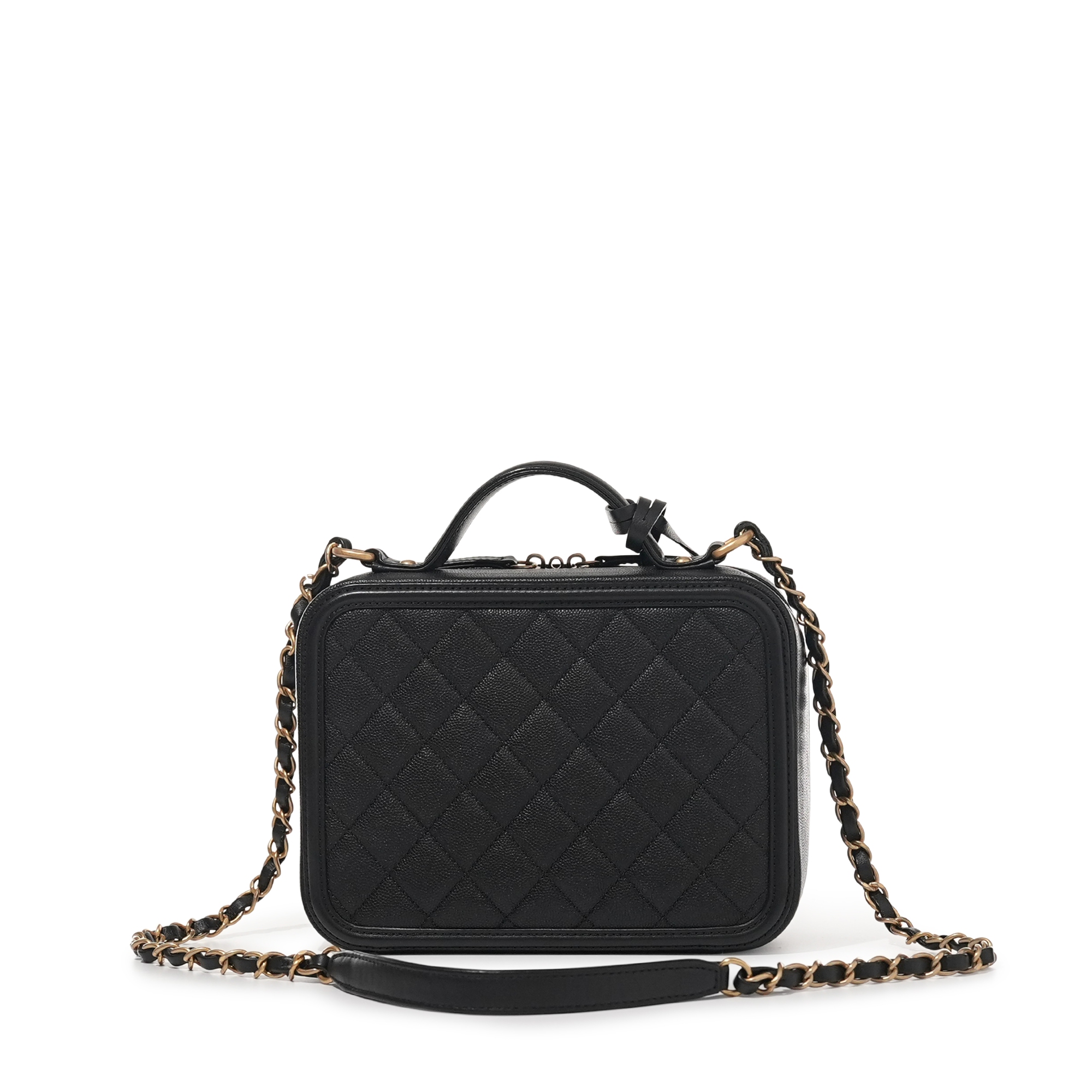 Chanel Black Caviar Medium CC Filigree Vanity Case Brushed Gold Hardware, 2018The interior is lined with tonal leatherIncludes authenticity card, lock, keys and dust bagThis item is final sale and not eligible for return