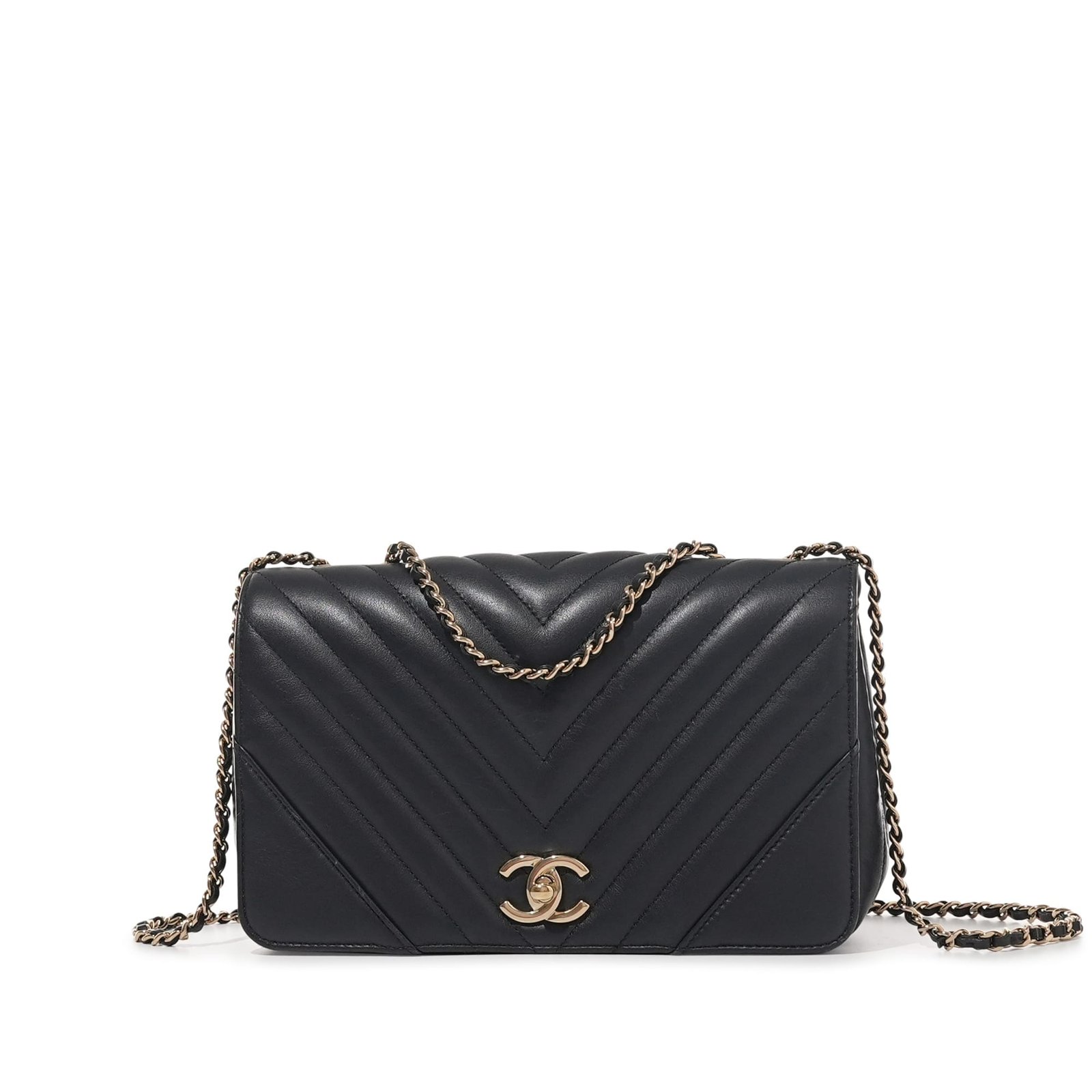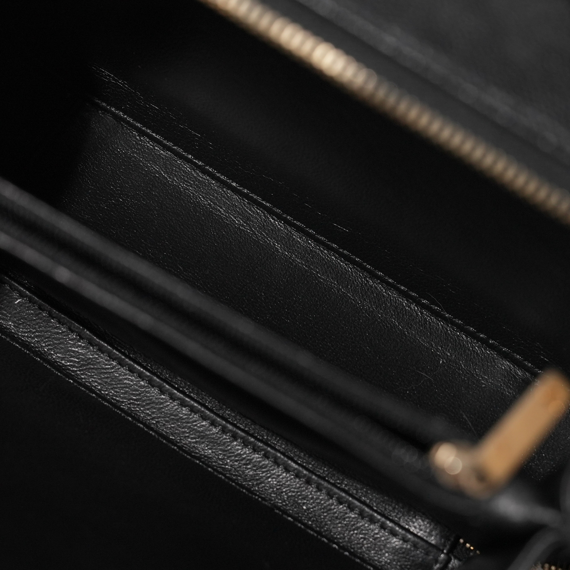 Black Caviar Medium CC Filigree Vanity Case Brushed Gold Hardware, 2018