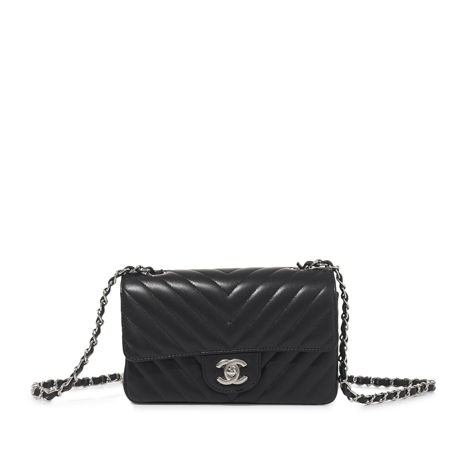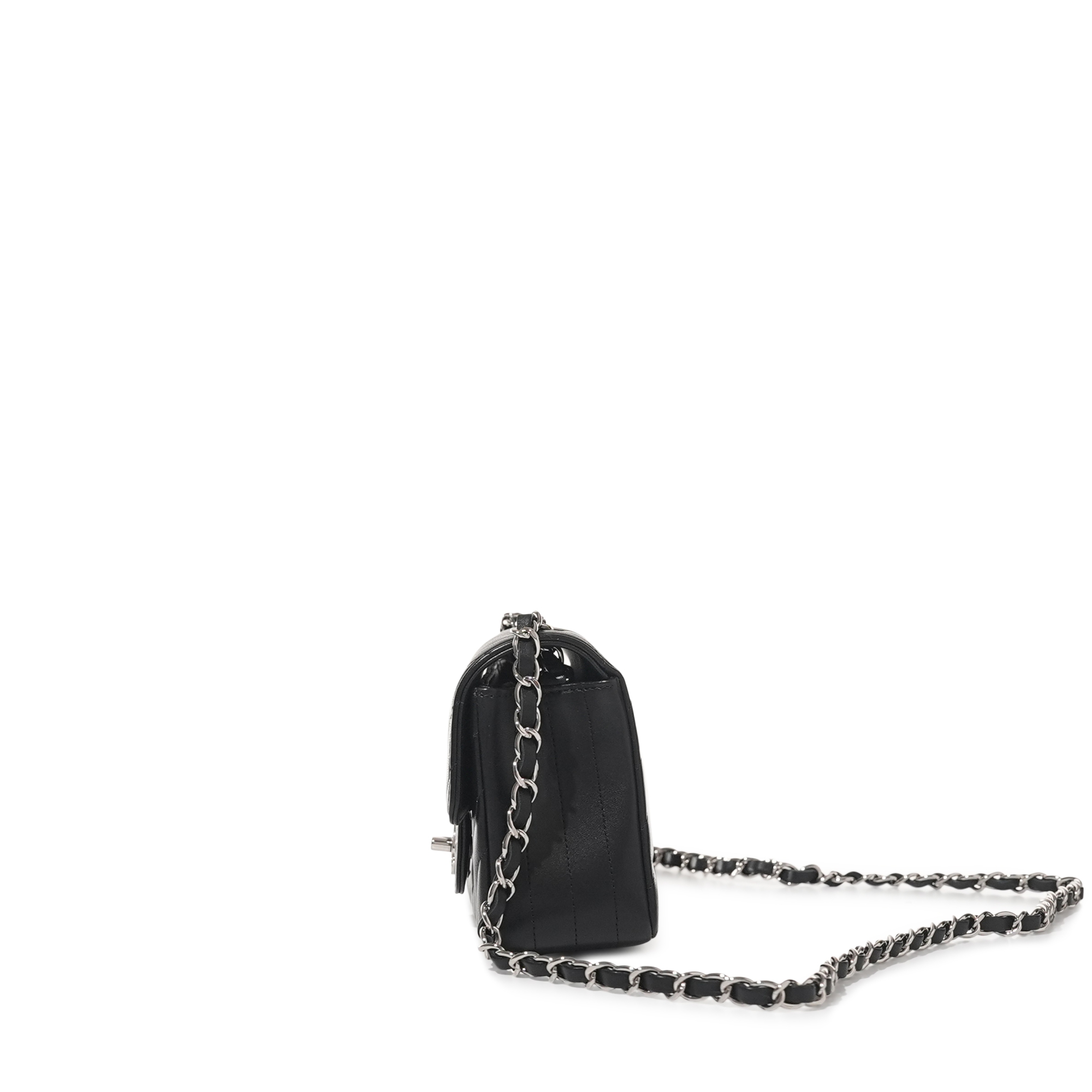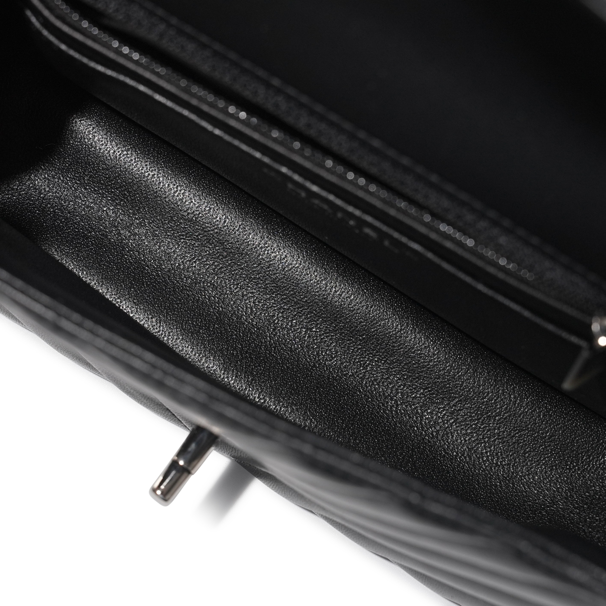 Black Chevron Lambskin Flap Bag Silver Hardware, 2020-21
