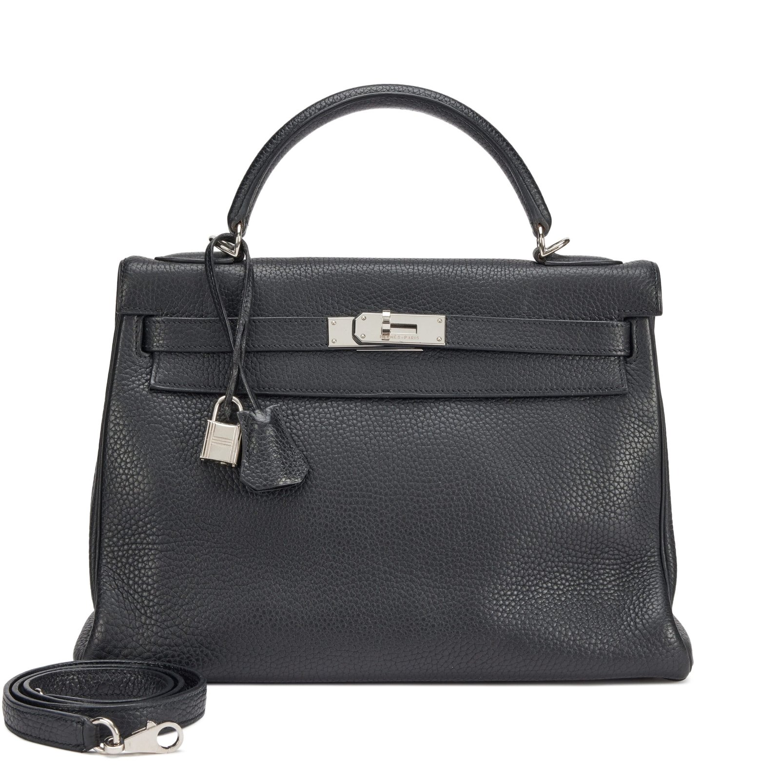 Hermès Black Clemence Retourne kelly 32 Palladium Hardware, 2004