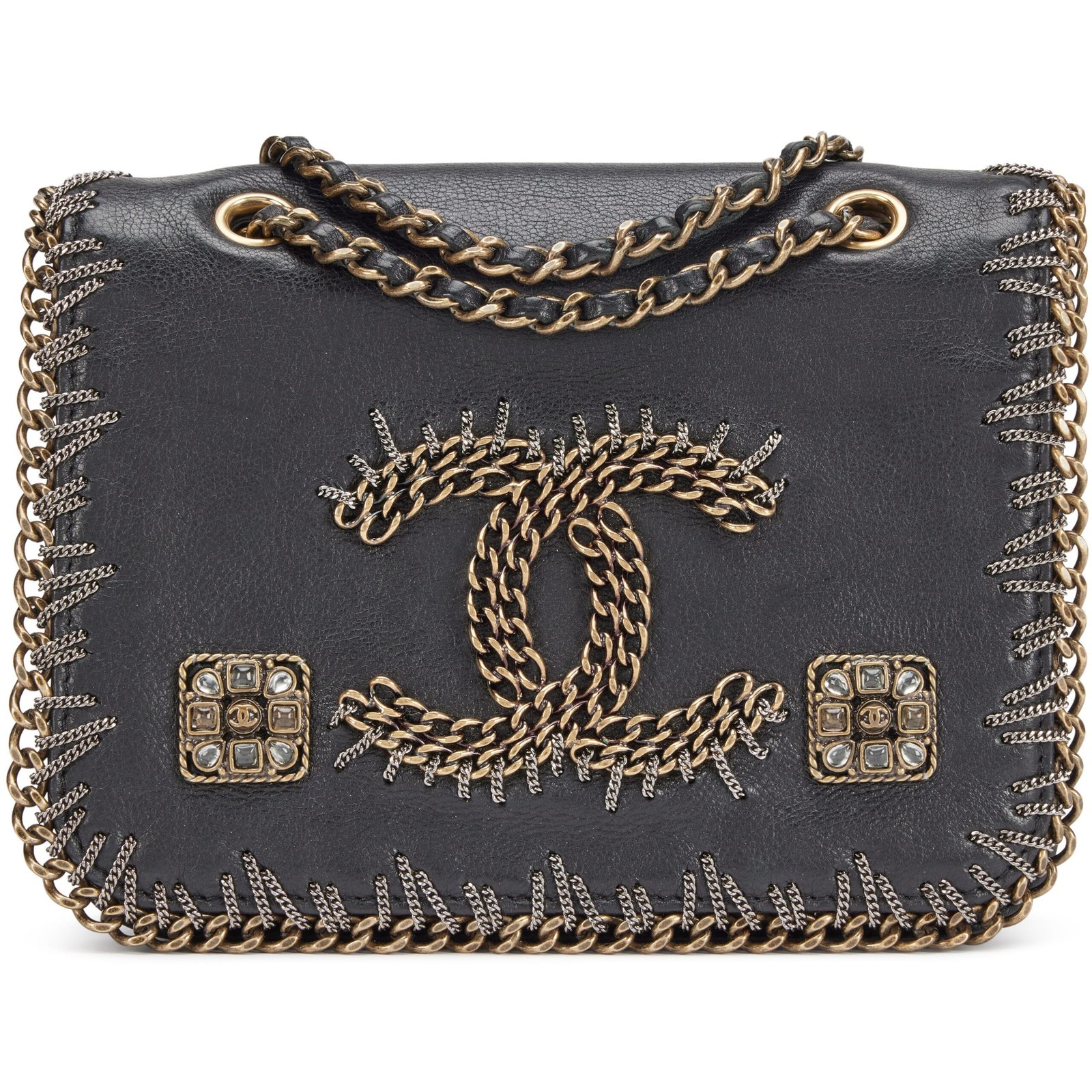 Black Embroidered Calfskin Paris-Byzance CC Small Flap Bag Gold Hardware, 2011