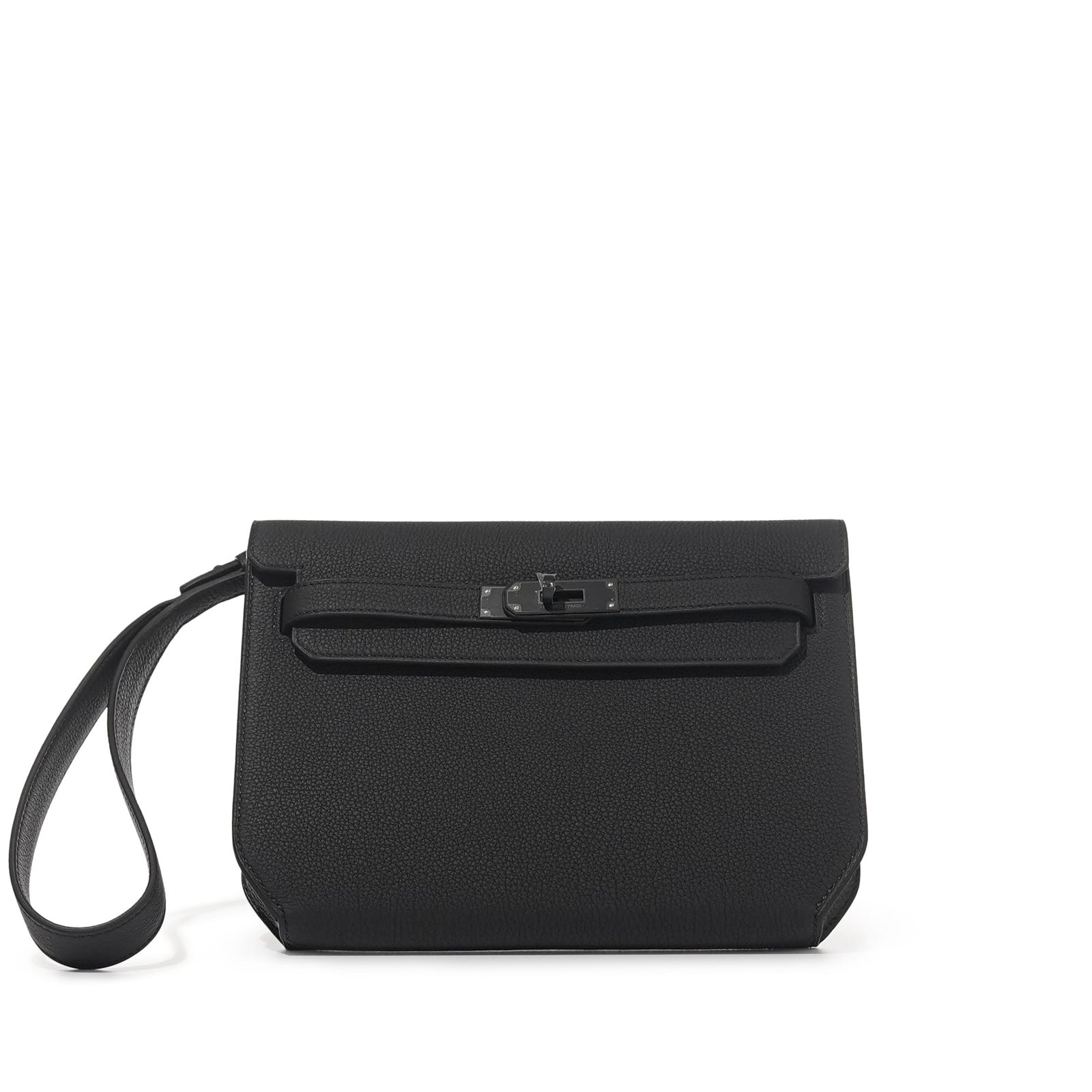 Pouch in Woolycot and Togo calfskin. Business cards pocket. Removable lanyard. Can be carried by hand or on the wrist. Made in France. This Hermes Kelly Depeches Pouch, measuring 25cm, is crafted from elegant Black Evergrain leather and complemented by gold hardware. Shop authentic preowned Hermès Kelly 25 bags from across the entire Uni Lux Shop. Search every preowned handbag site at once, quickly.
