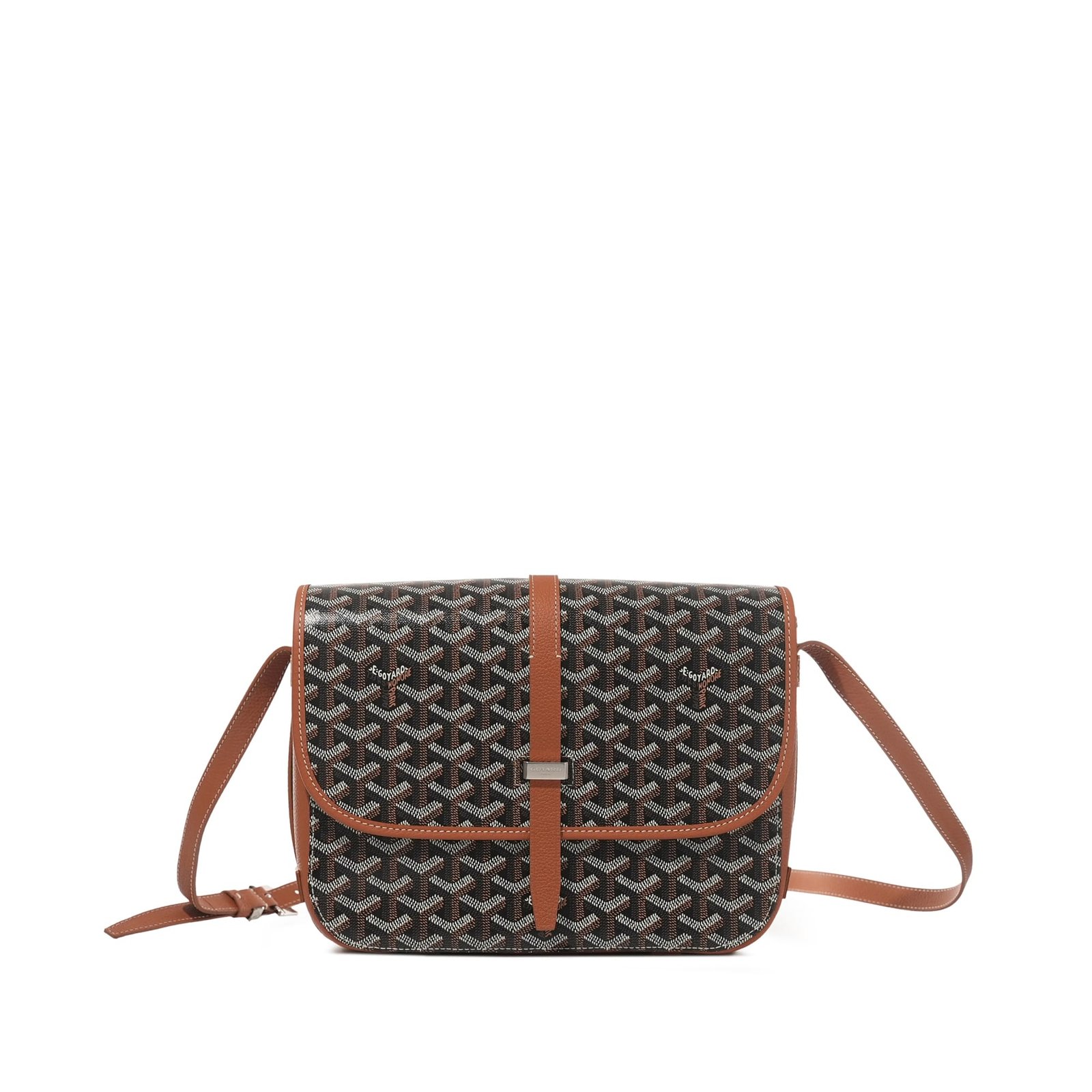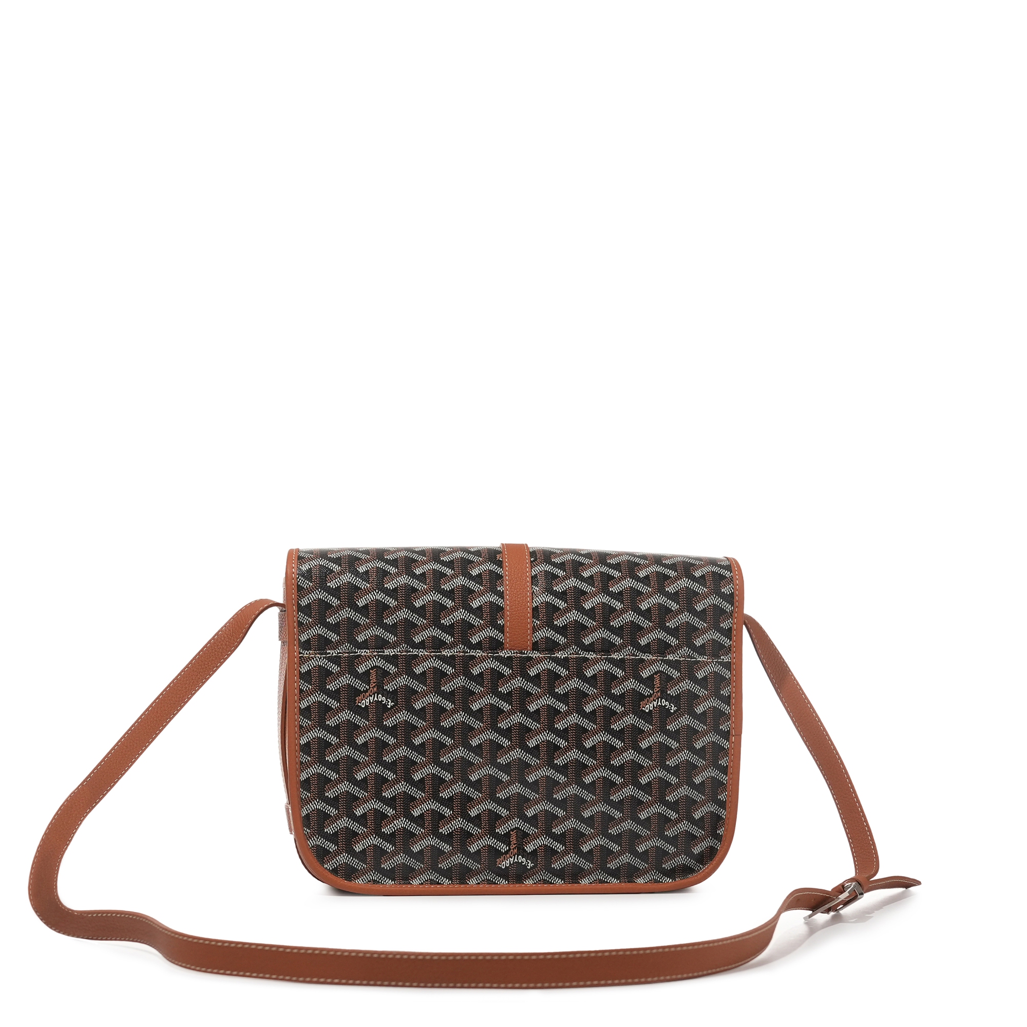Black Goyardine Canvas and Tan Chevroches Calfskin Belvedere MM Bag
