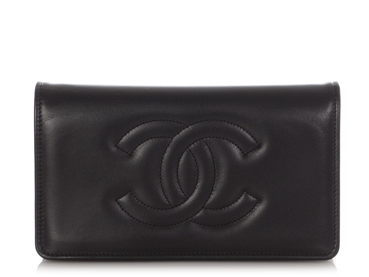 Black Lambskin Wallet On Chain WOC Gold Hardware, 2023