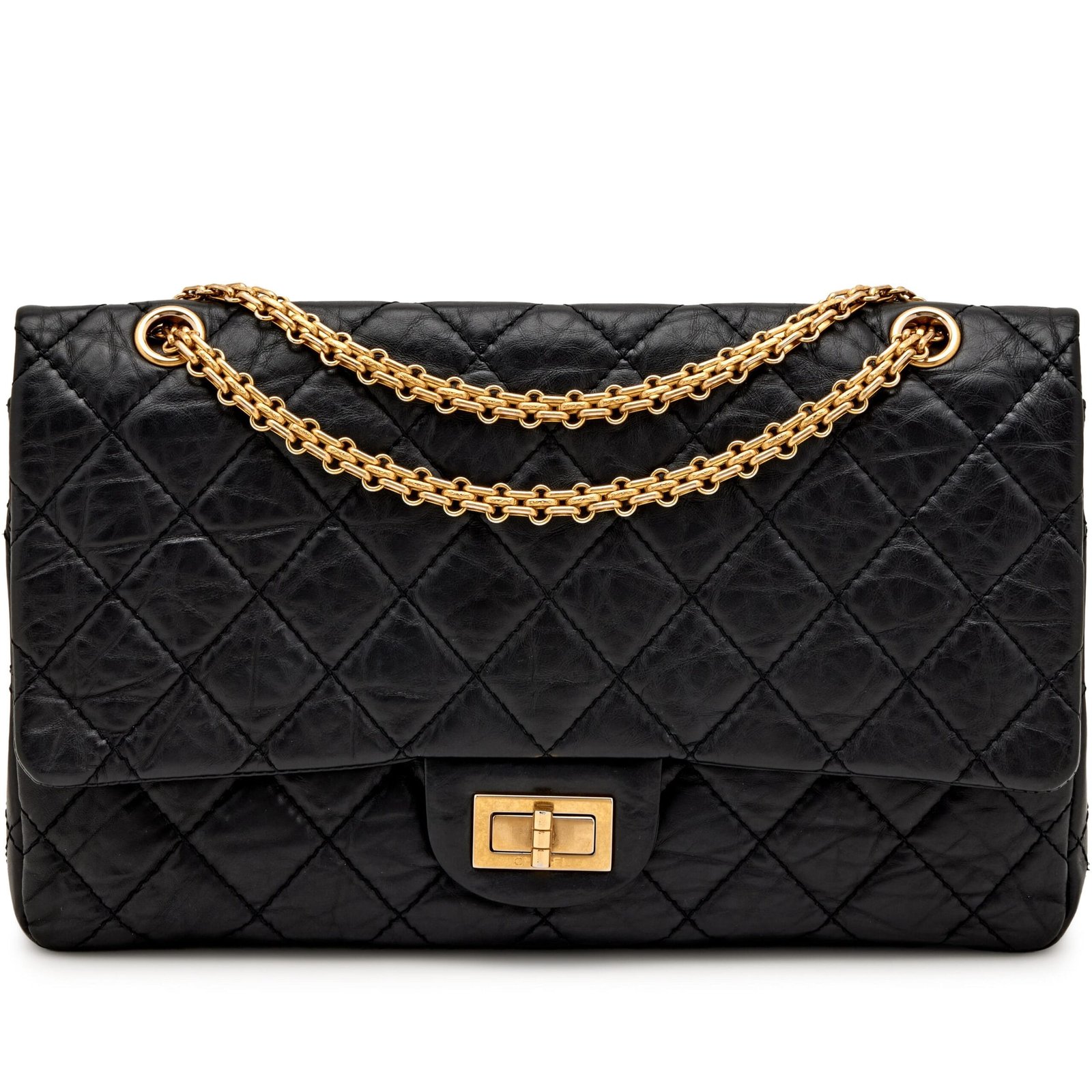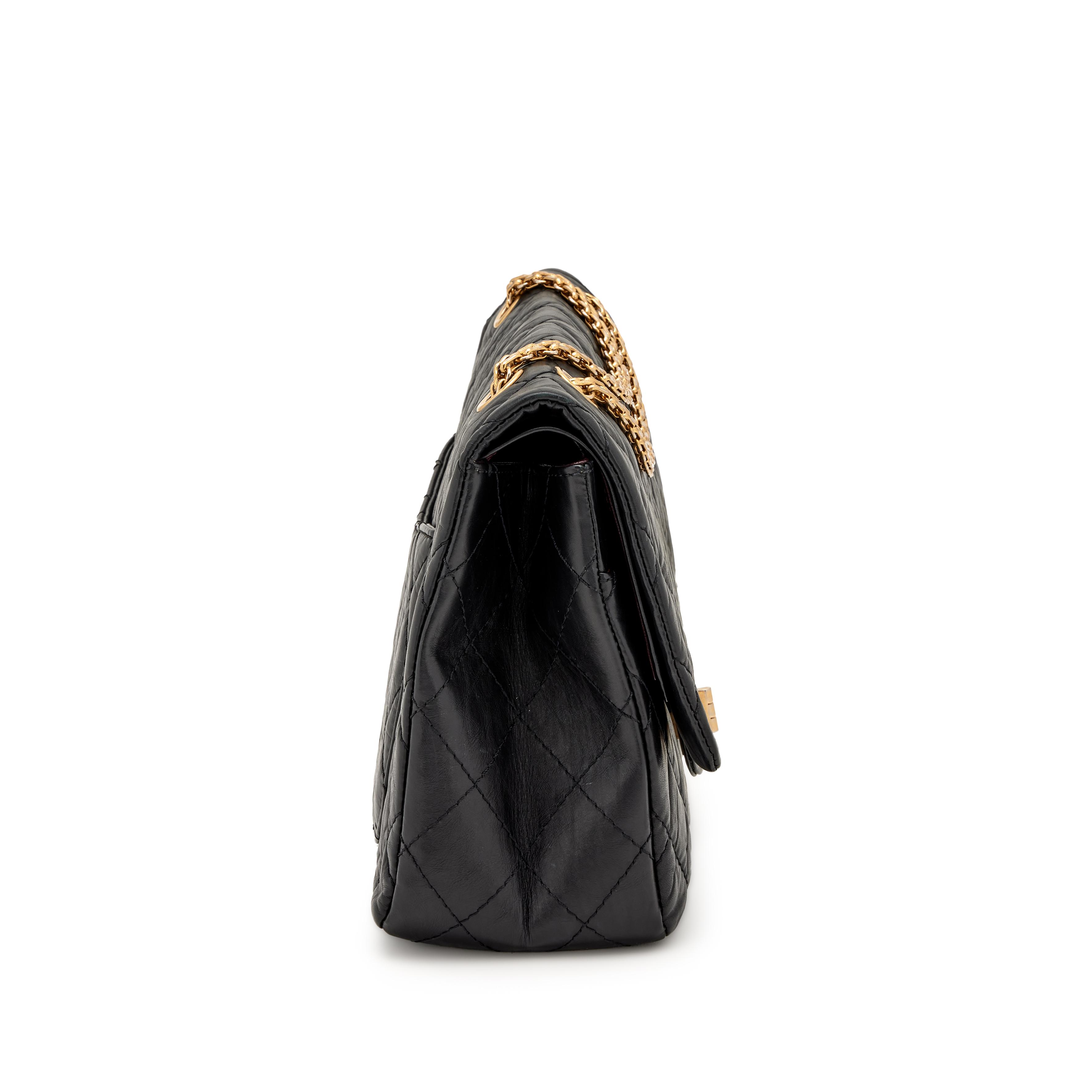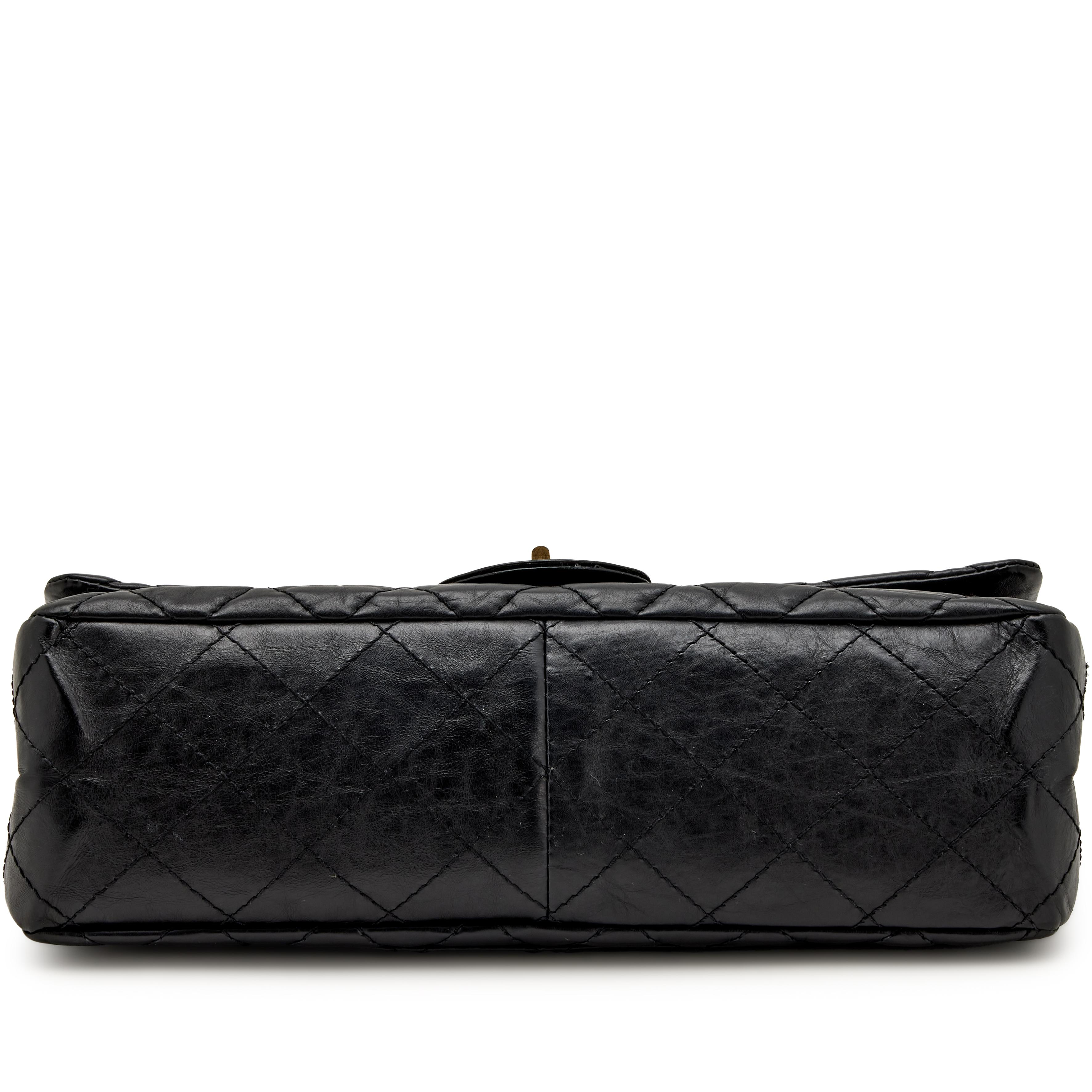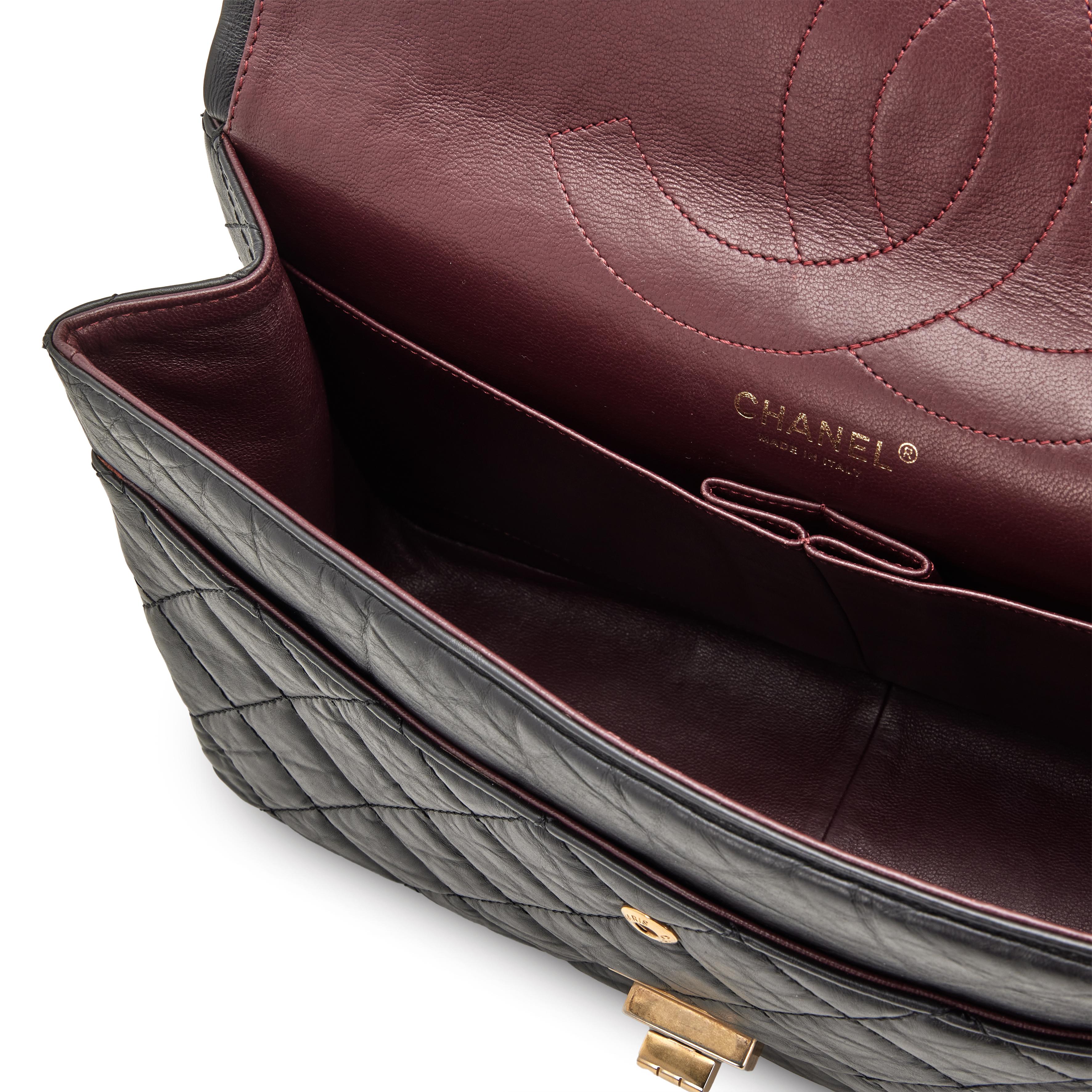 Chanel Black Quilted Aged Calfskin 2.55 Reissue 227 Double Flap Aged Gold Hardware, 2010-2011The interior is lined in a burgundy leatherIncludes authenticity card, care booklet, and dust bagAged Gold finish to hardware is inherent to the designThis item is final sale and not eligible for return