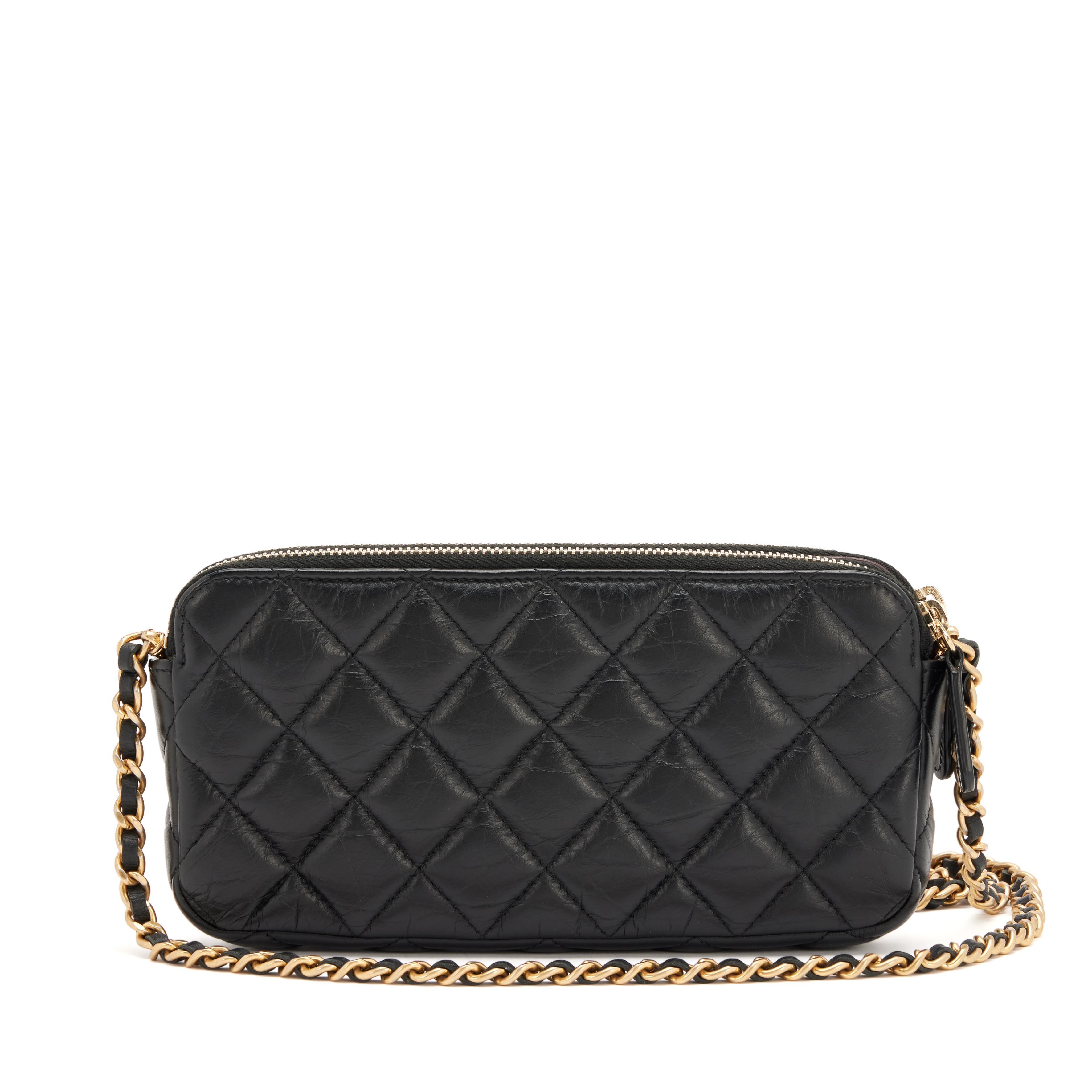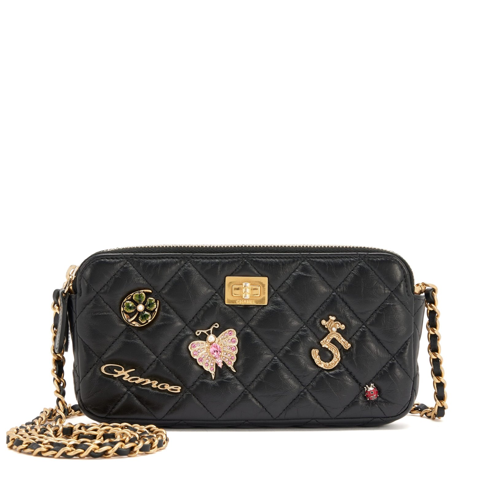 Chanel Black Quilted Aged Calfskin Lucky Charms 2.55 Reissue Double Zip Clutch With Chain Gold Hardware, 2017The interior is lined in a burgundy textile materialIncludes information booklet, ribbon, velvet pouch, and boxThis item is final sale and not eligible for return