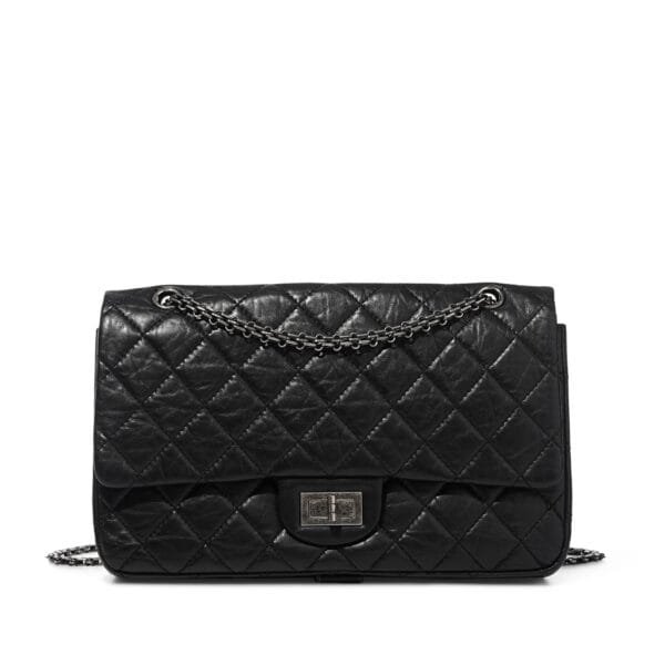 Black Quilted Calfskin Maxi 2.55 Flap Bag Ruthenium Hardware, 2012