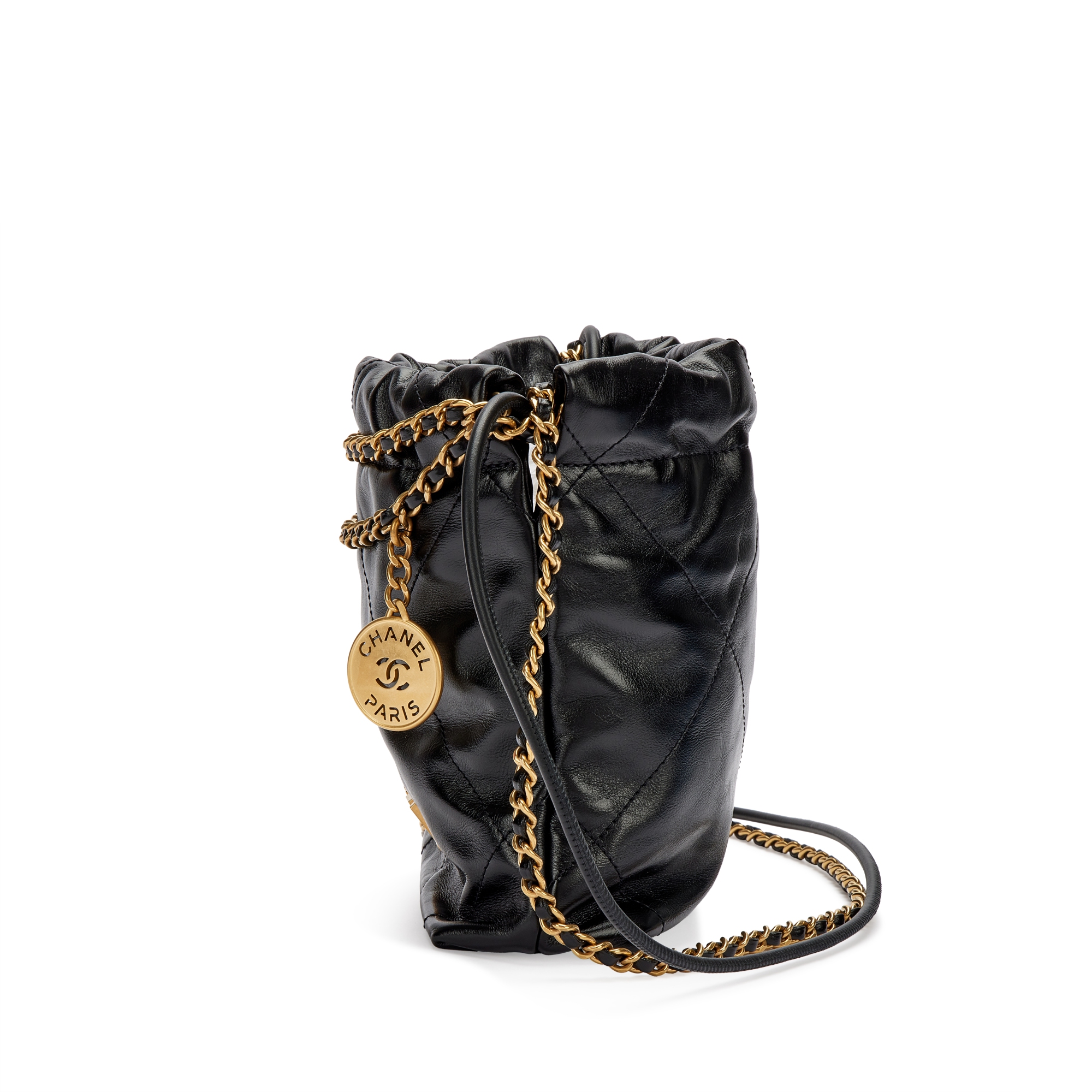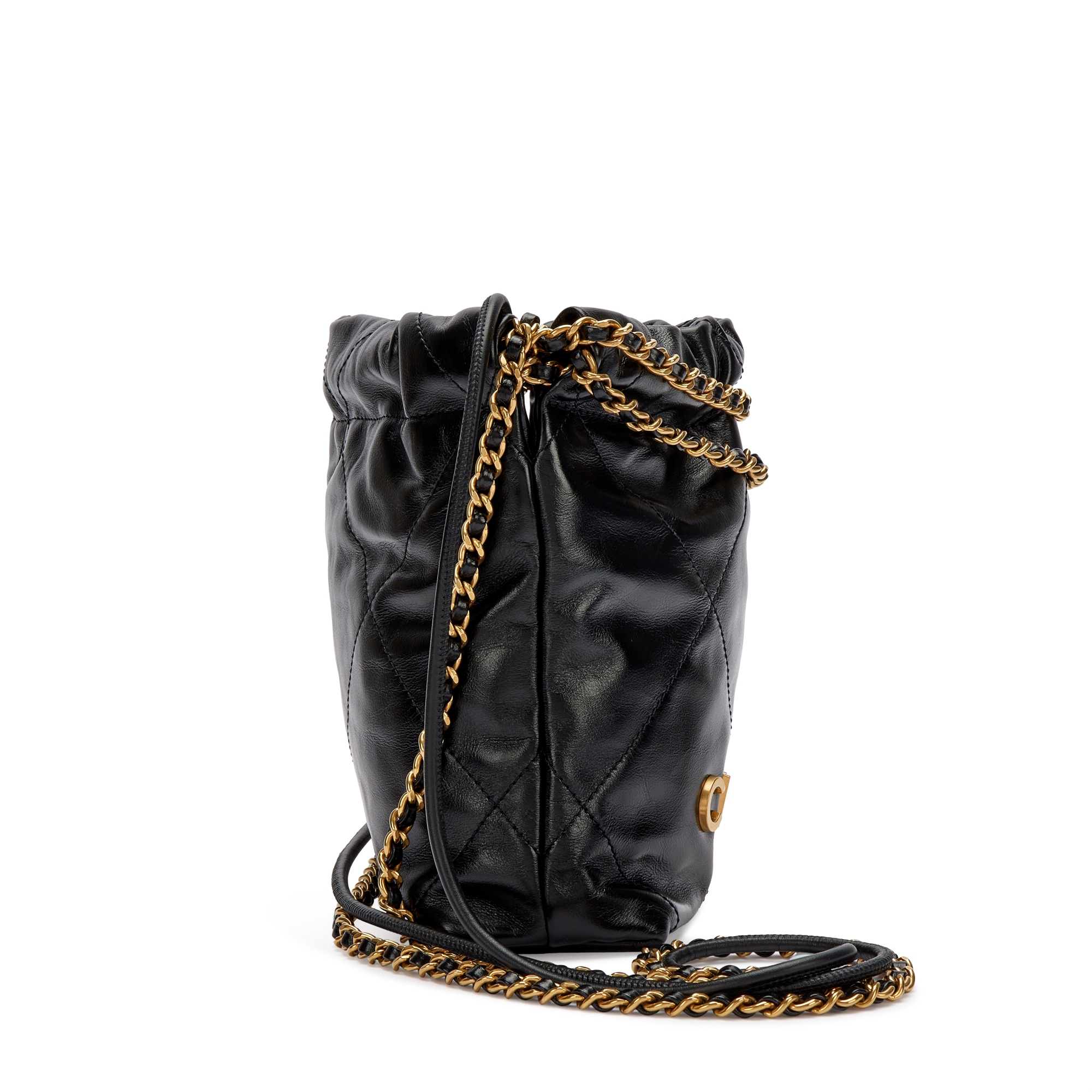 Black Quilted Calfskin Mini 22 Bag Brushed Gold Hardware
