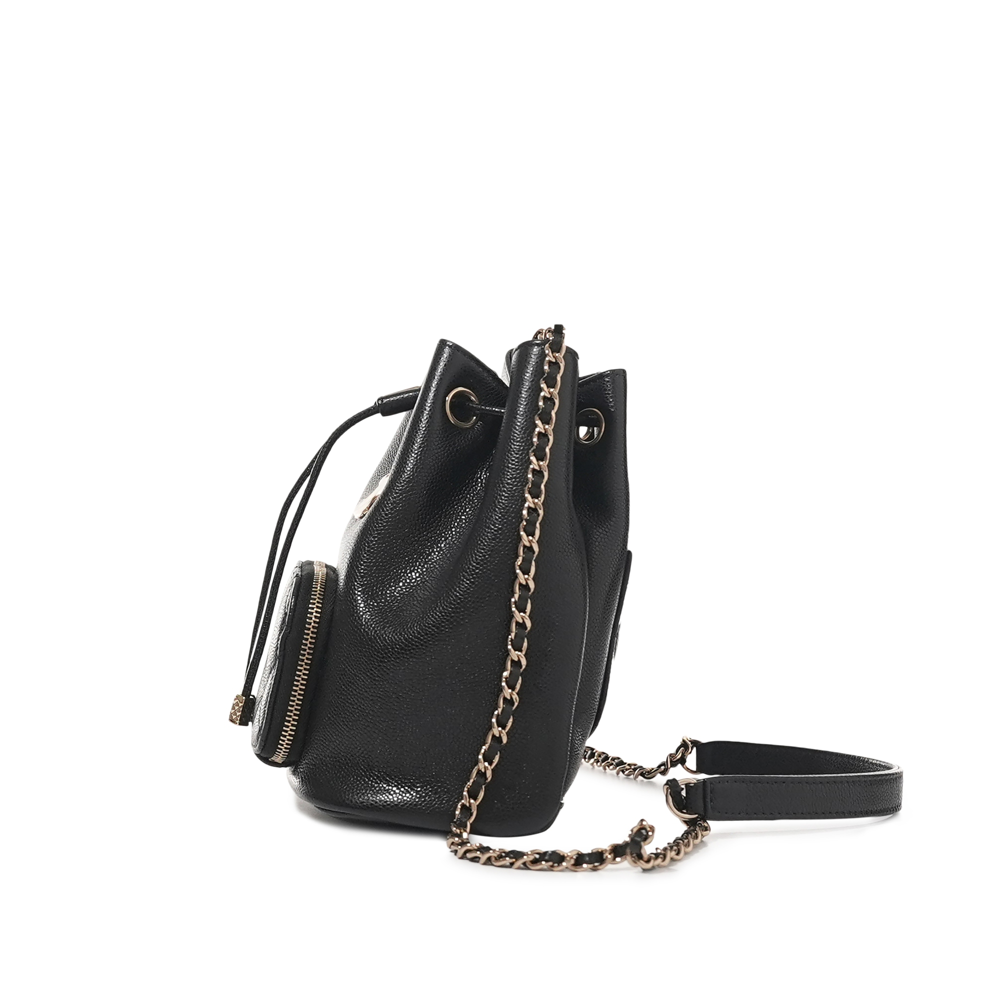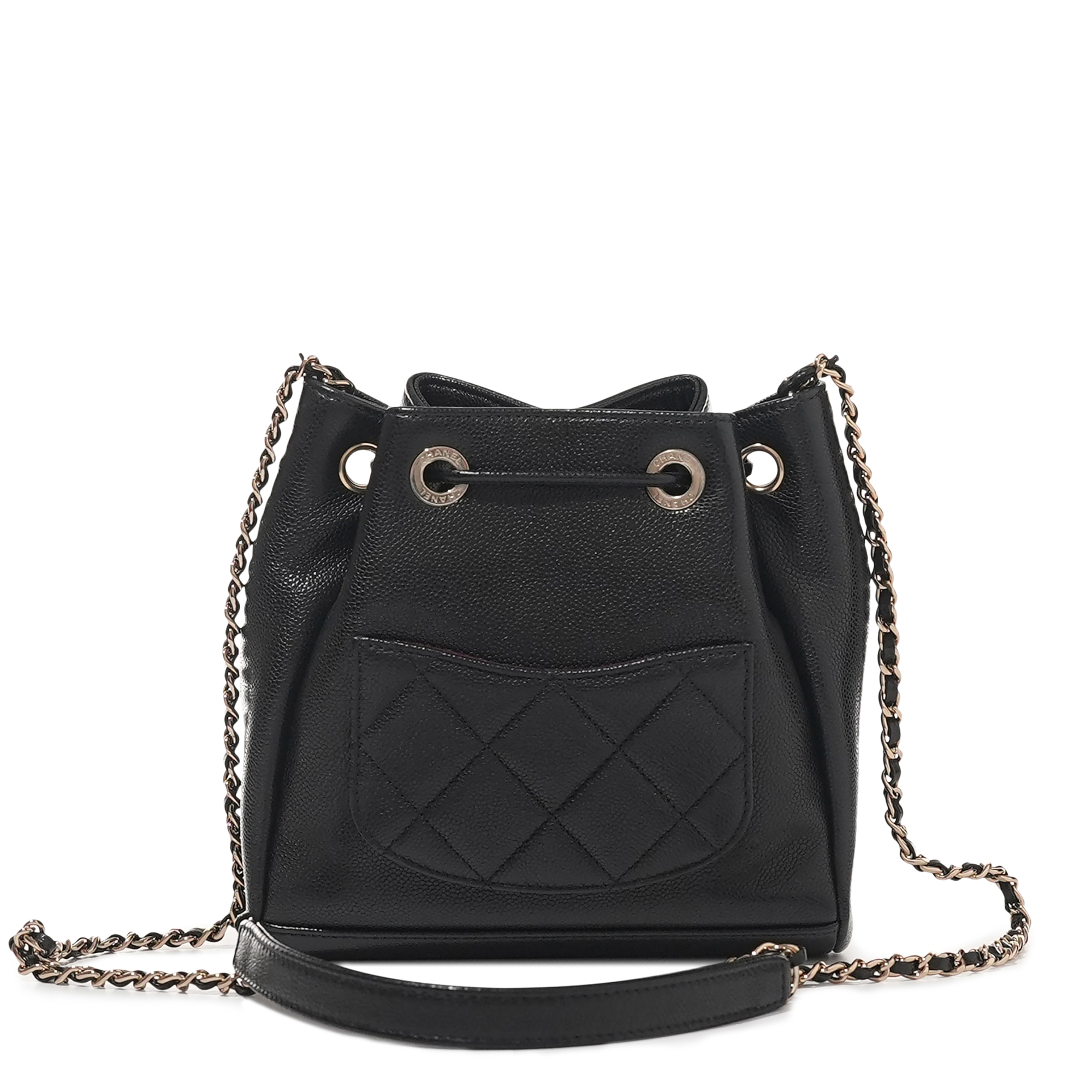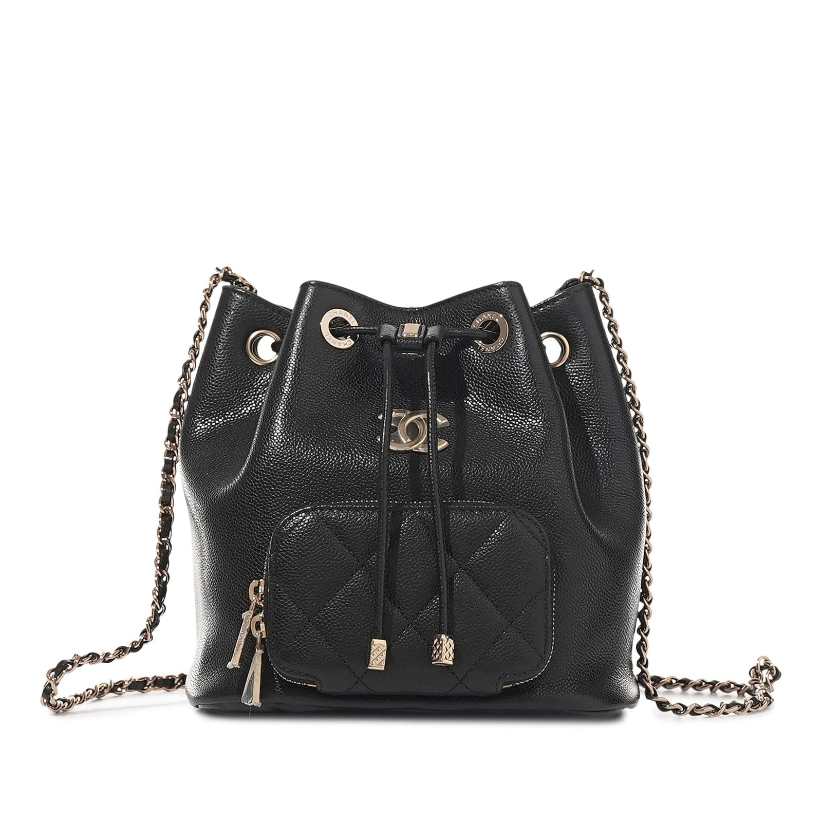Black Quilted Caviar Business Affinity Bucket Bag Gold Hardware, 2021