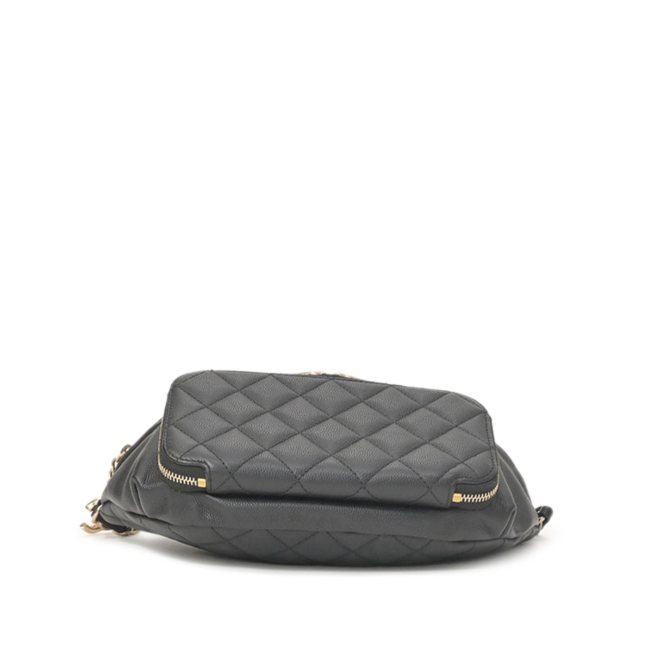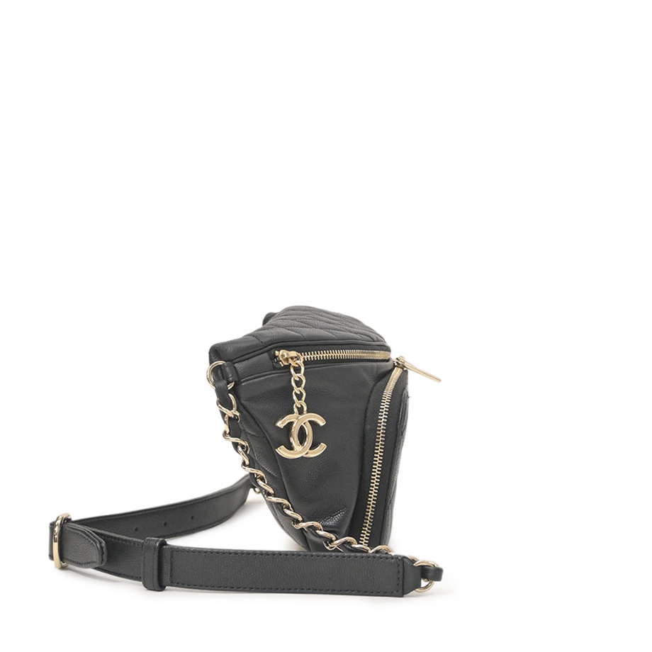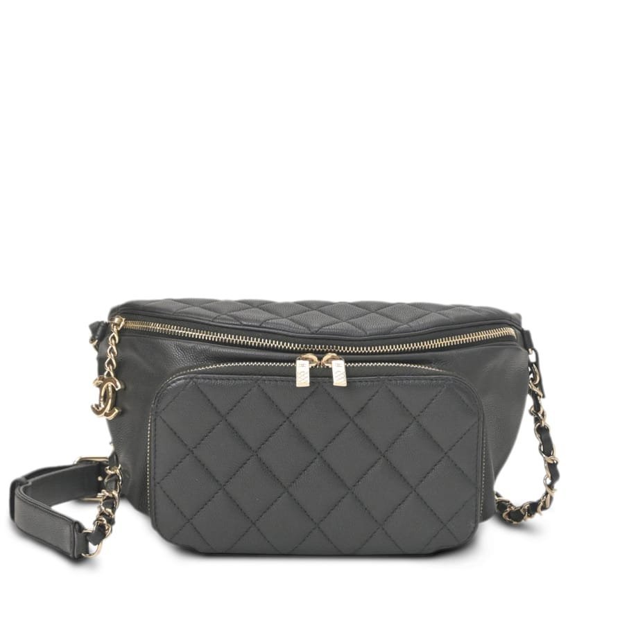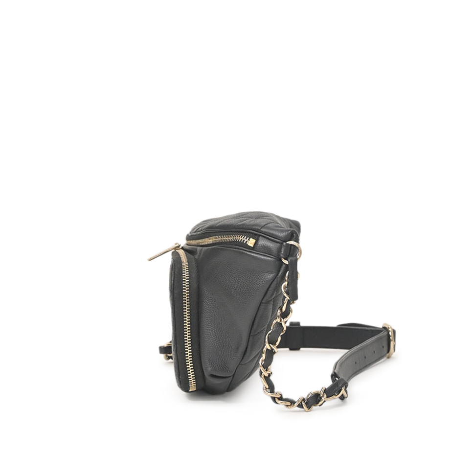 Black Quilted Caviar Business Affinity Waist Bag Pale Gold Hardware, 2019