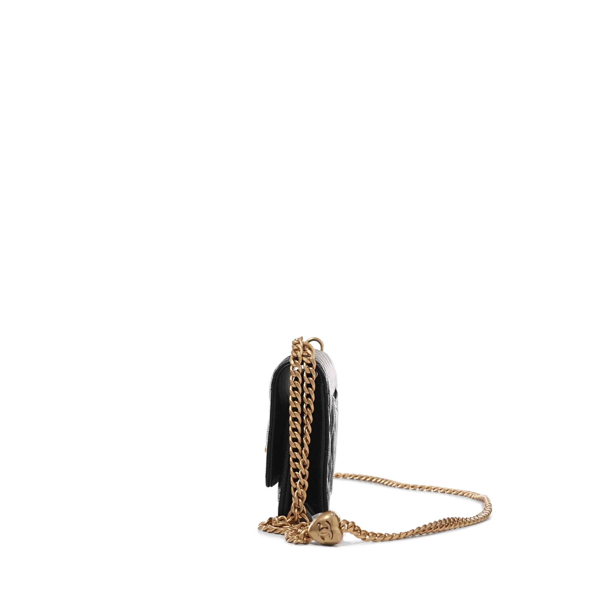 Chanel Black Quilted Caviar Heart Crush Wallet on Chain Aged Gold Hardware, 2024The interior is lined with tonal textile materialincludes dust bag and boxThis item is final sale and not eligible for return