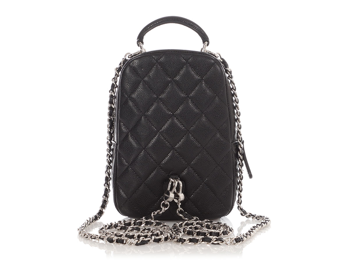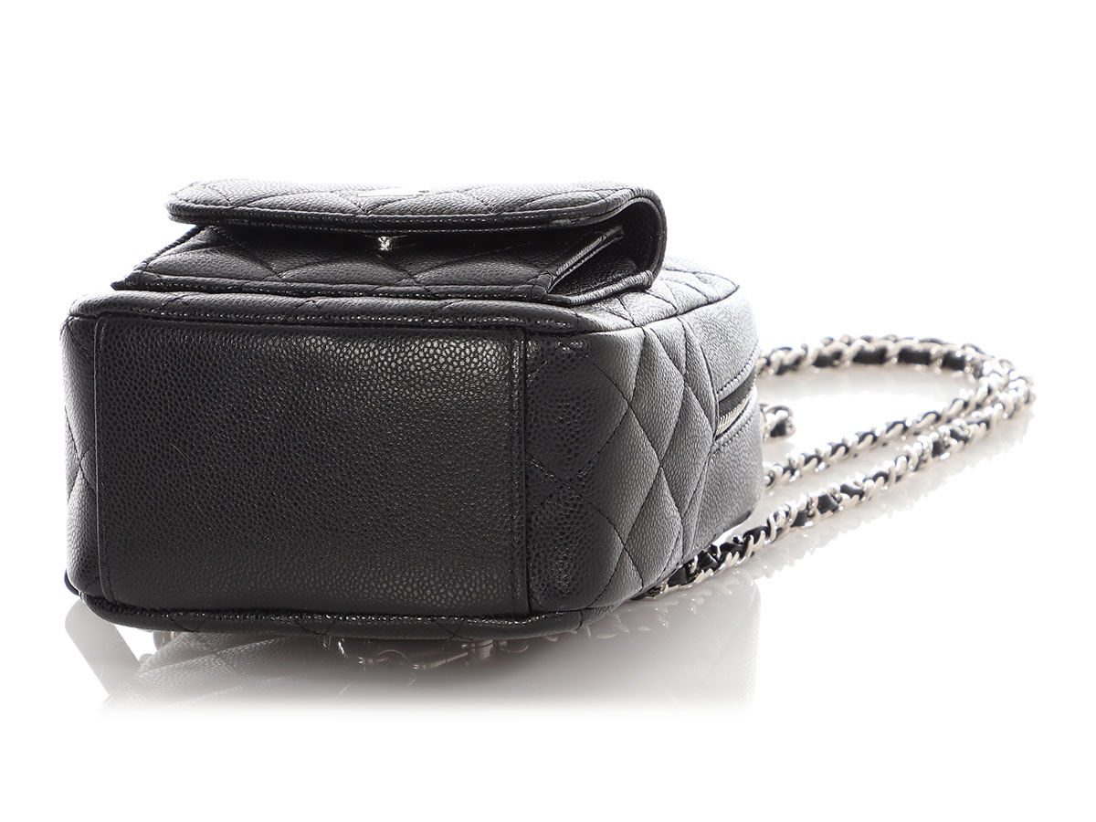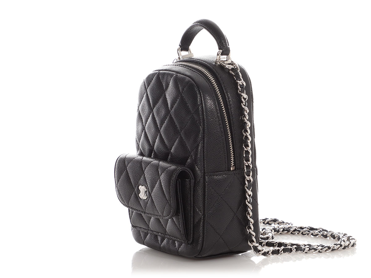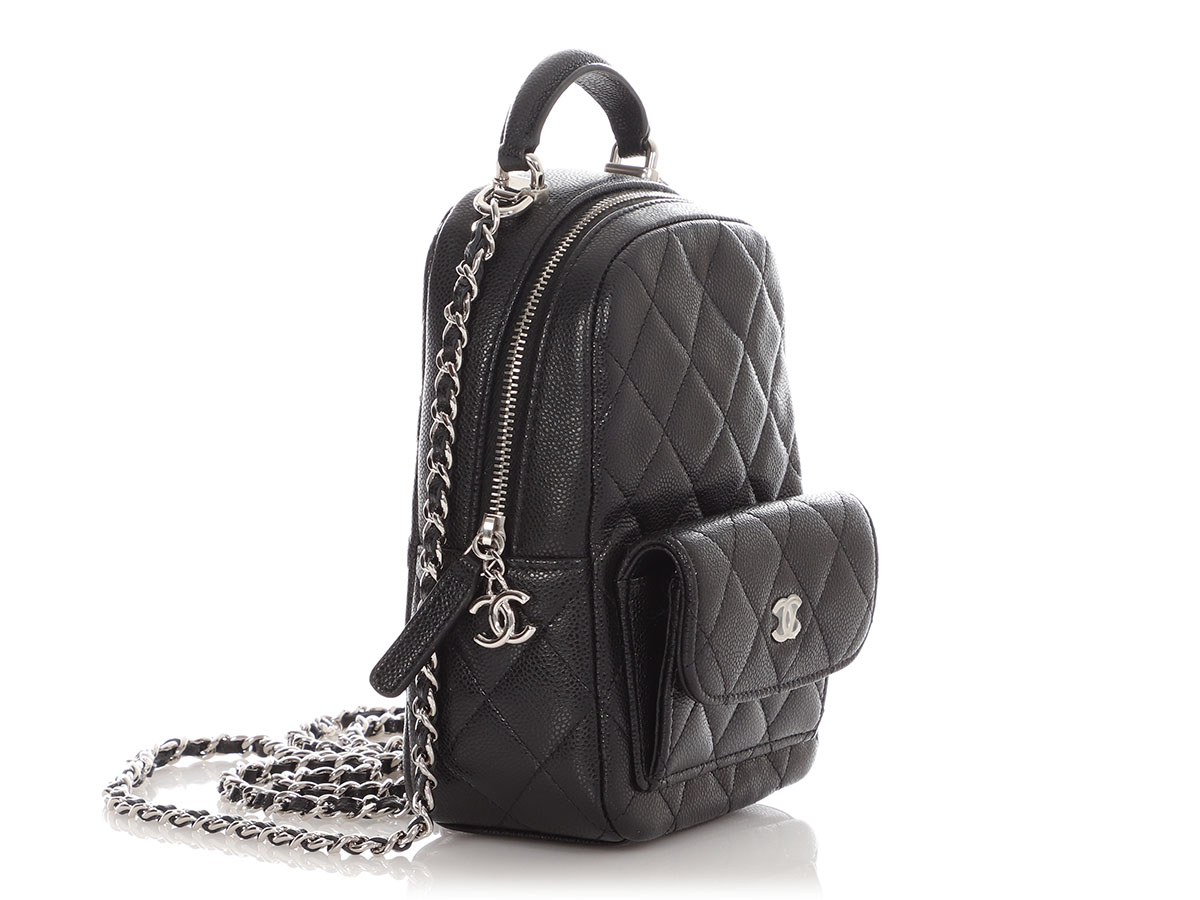 Black Quilted Caviar Mini Classic Backpack Silver Hardware