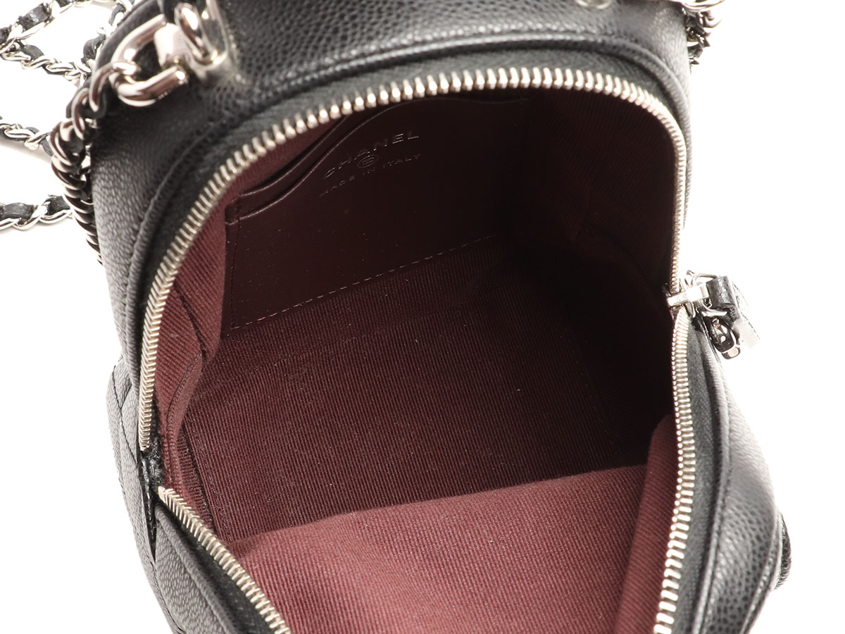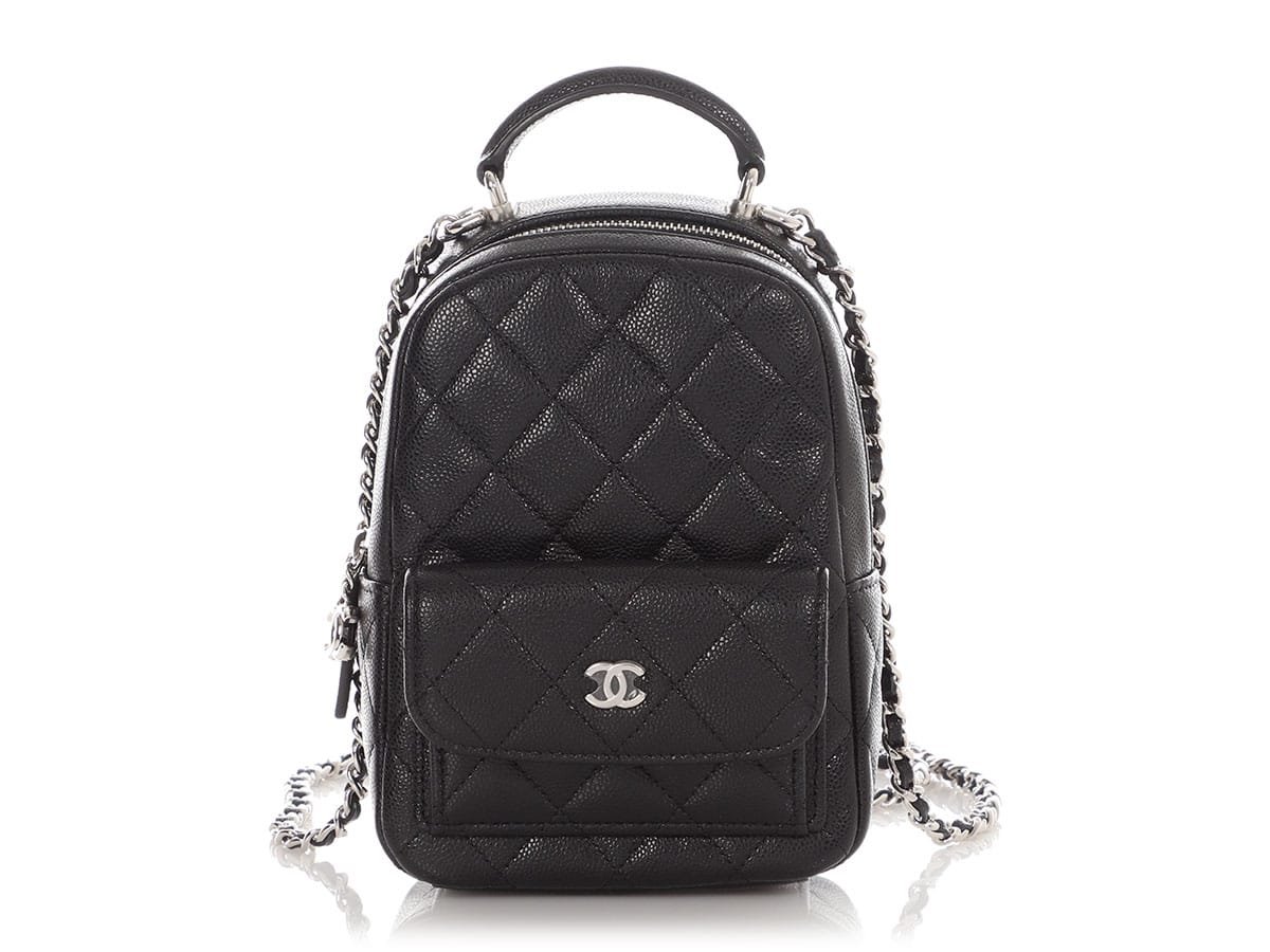 Chanel Black Quilted Caviar Mini Classic Backpack Silver HardwareThe interior is lined in a burgundy textile materialIncludes dust bag and boxThis item is final sale and not eligible for return