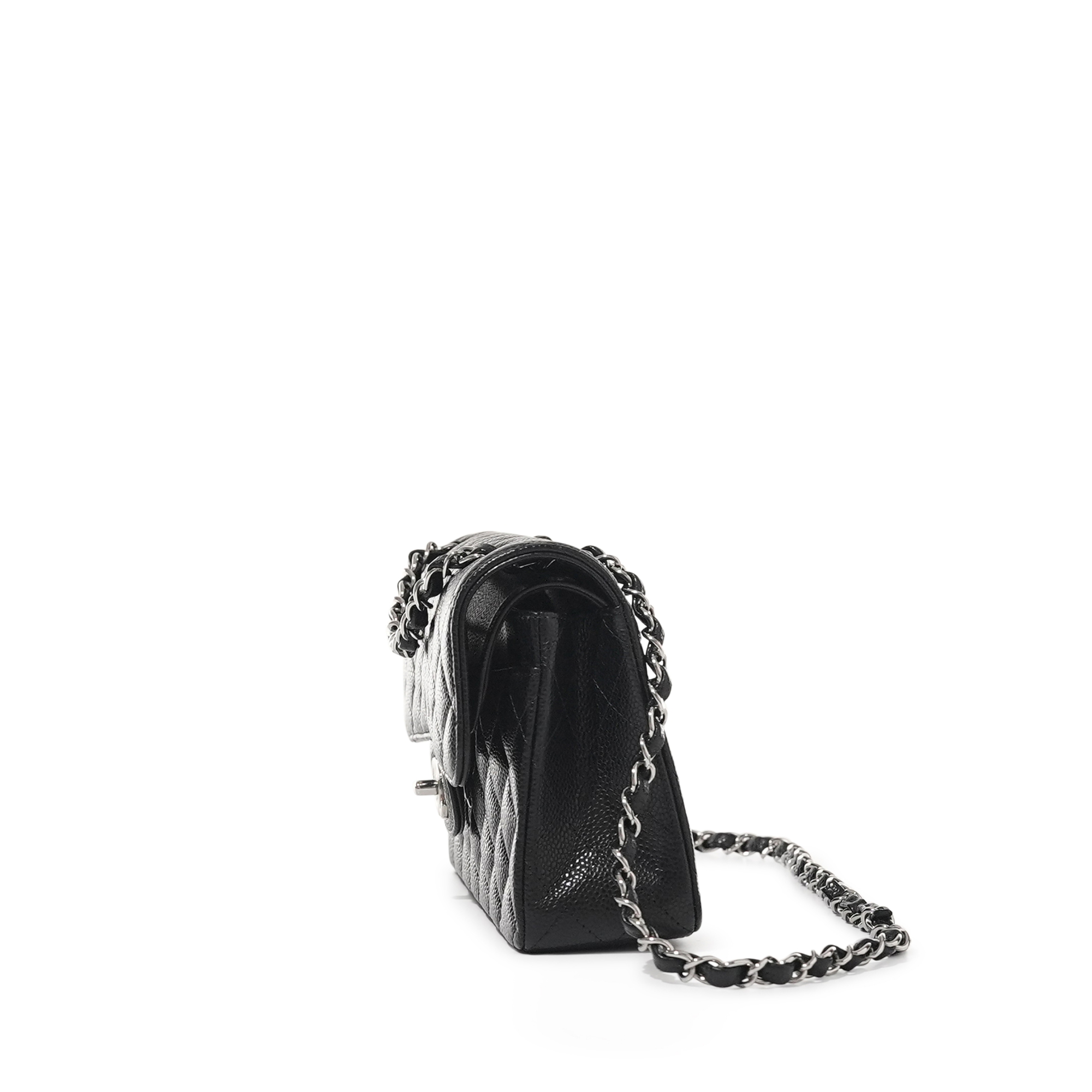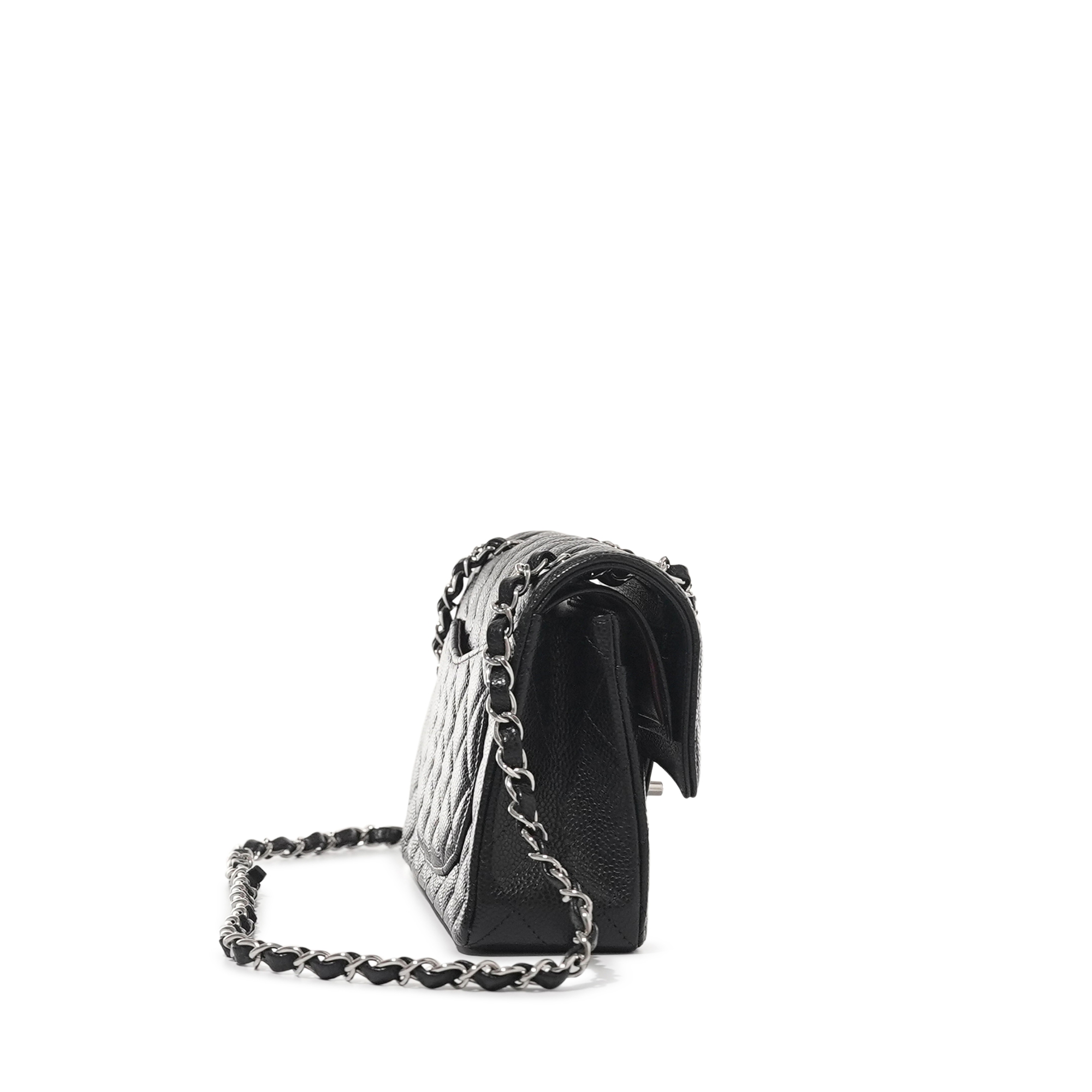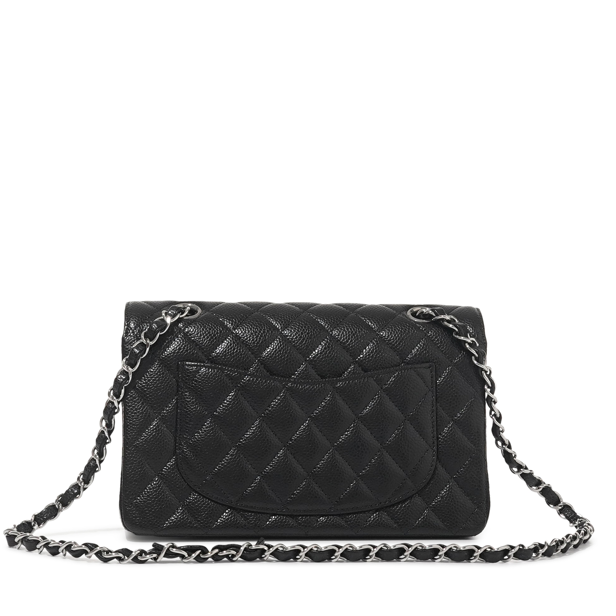 Black Quilted Caviar Small Timeless Classic Double Flap Bag Silver Hardware