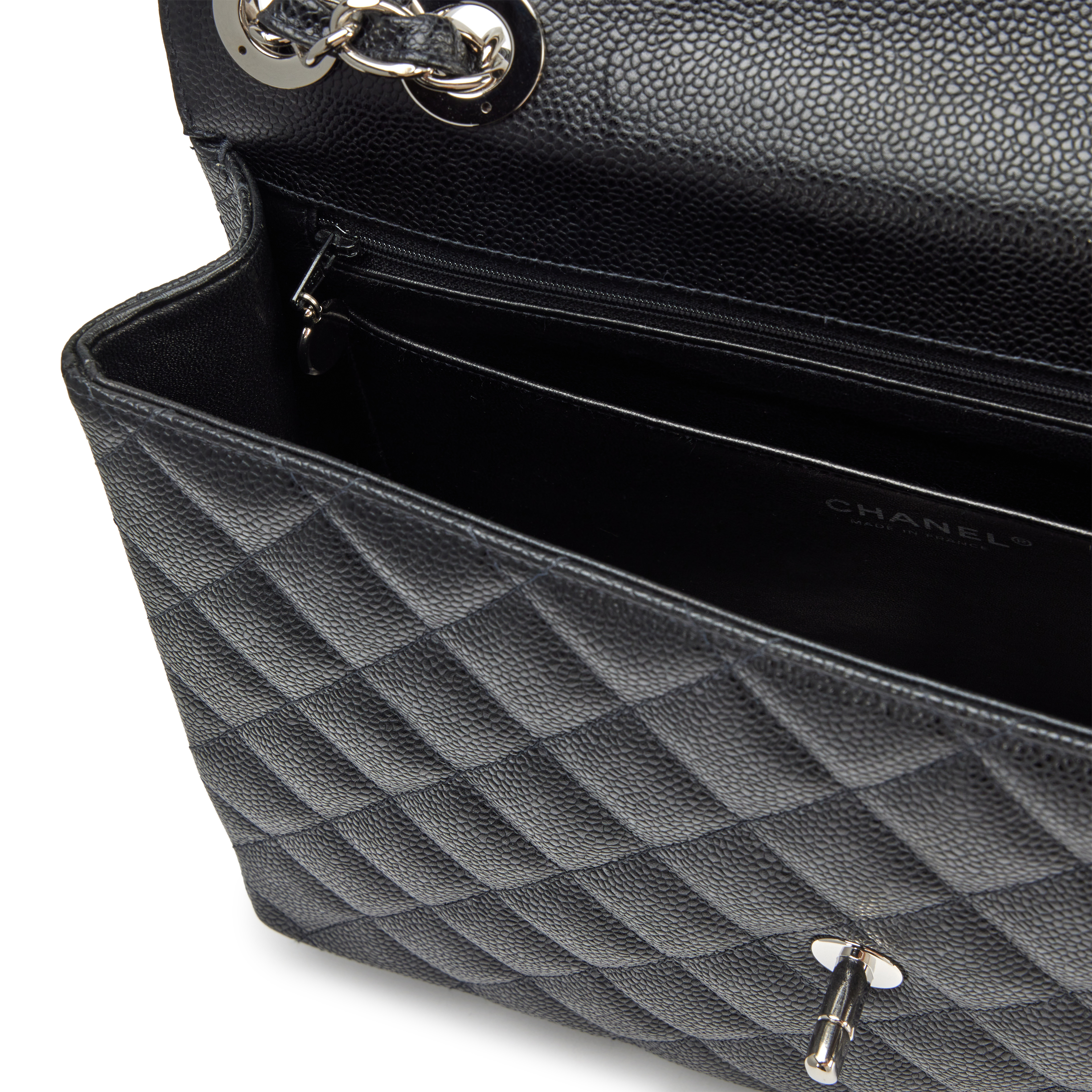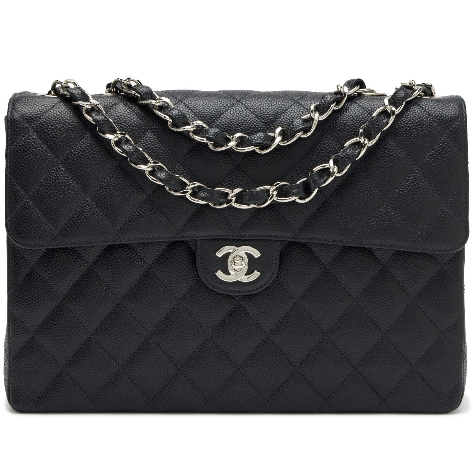 Chanel Black Quilted Caviar Square Classic Jumbo Flap Bag Silver Hardware, 2004-2005The interior is lined in a tonal leatherIncludes dust bagThis item is final sale and not eligible for return