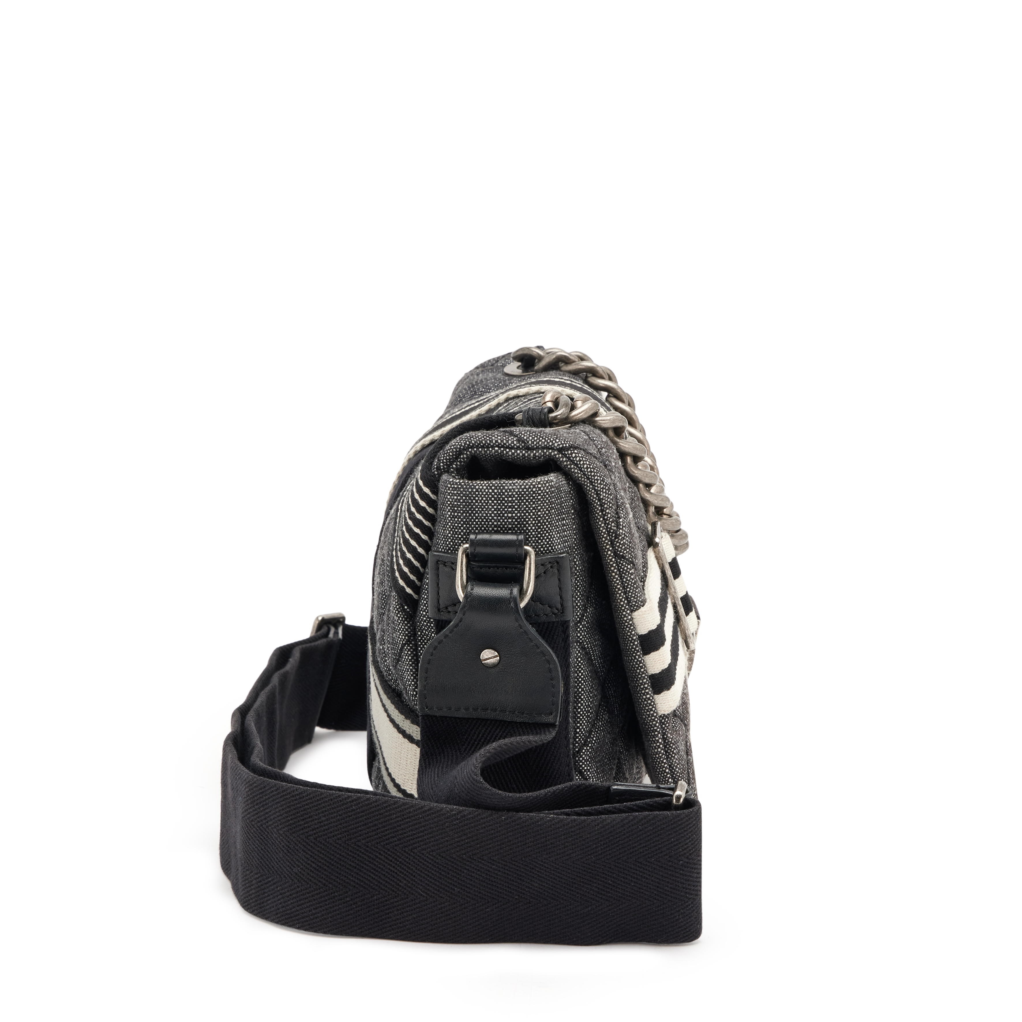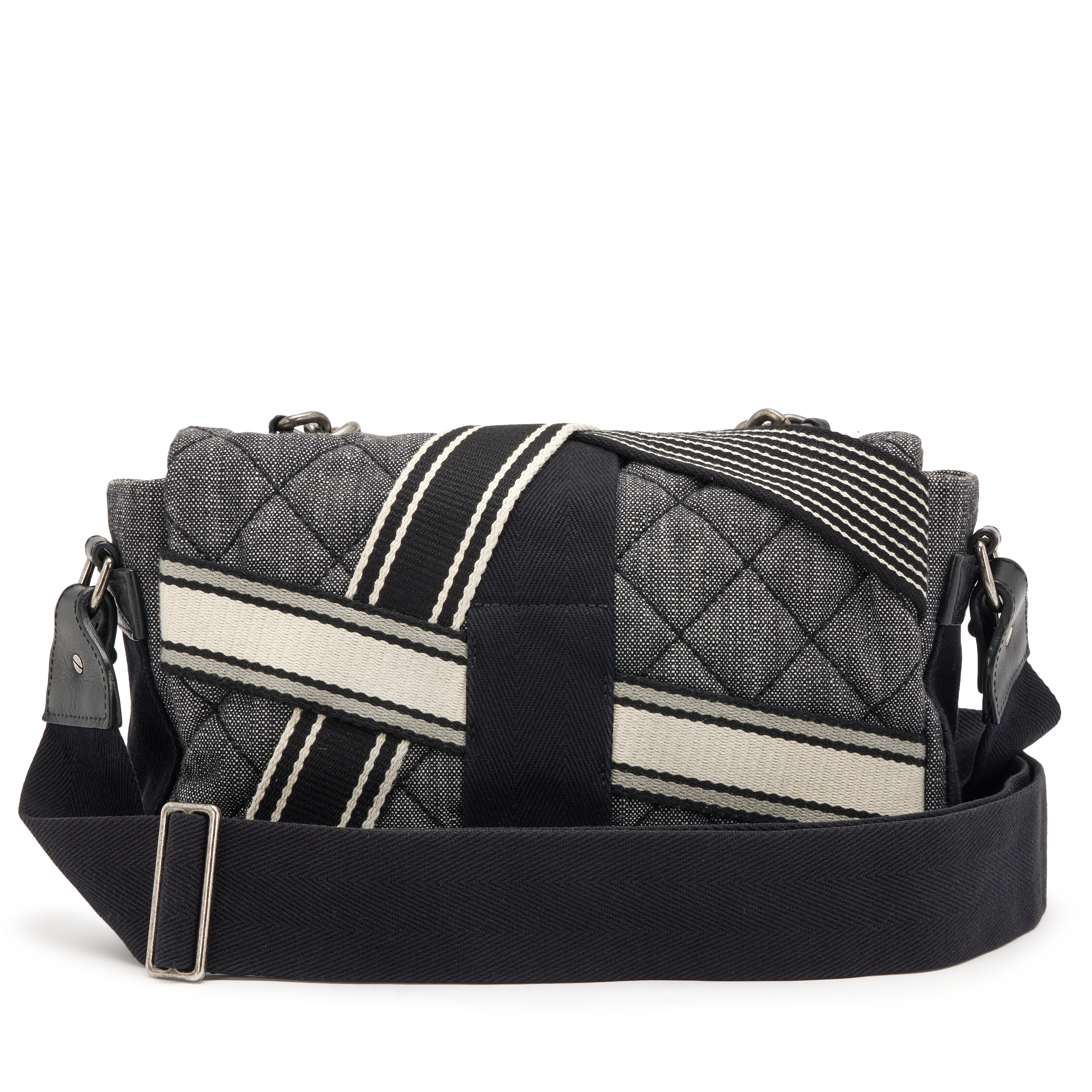 Black Quilted Denim Airlines Buckle Messenger Bag Ruthenium Hardware, 2016