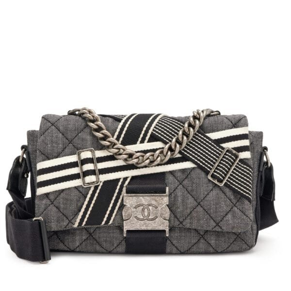 Chanel Black Quilted Denim Airlines Buckle Messenger Bag Ruthenium Hardware, 2016The interior is lined in a black textile materialIncludes dust bagThis item is final sale and not eligible for return
