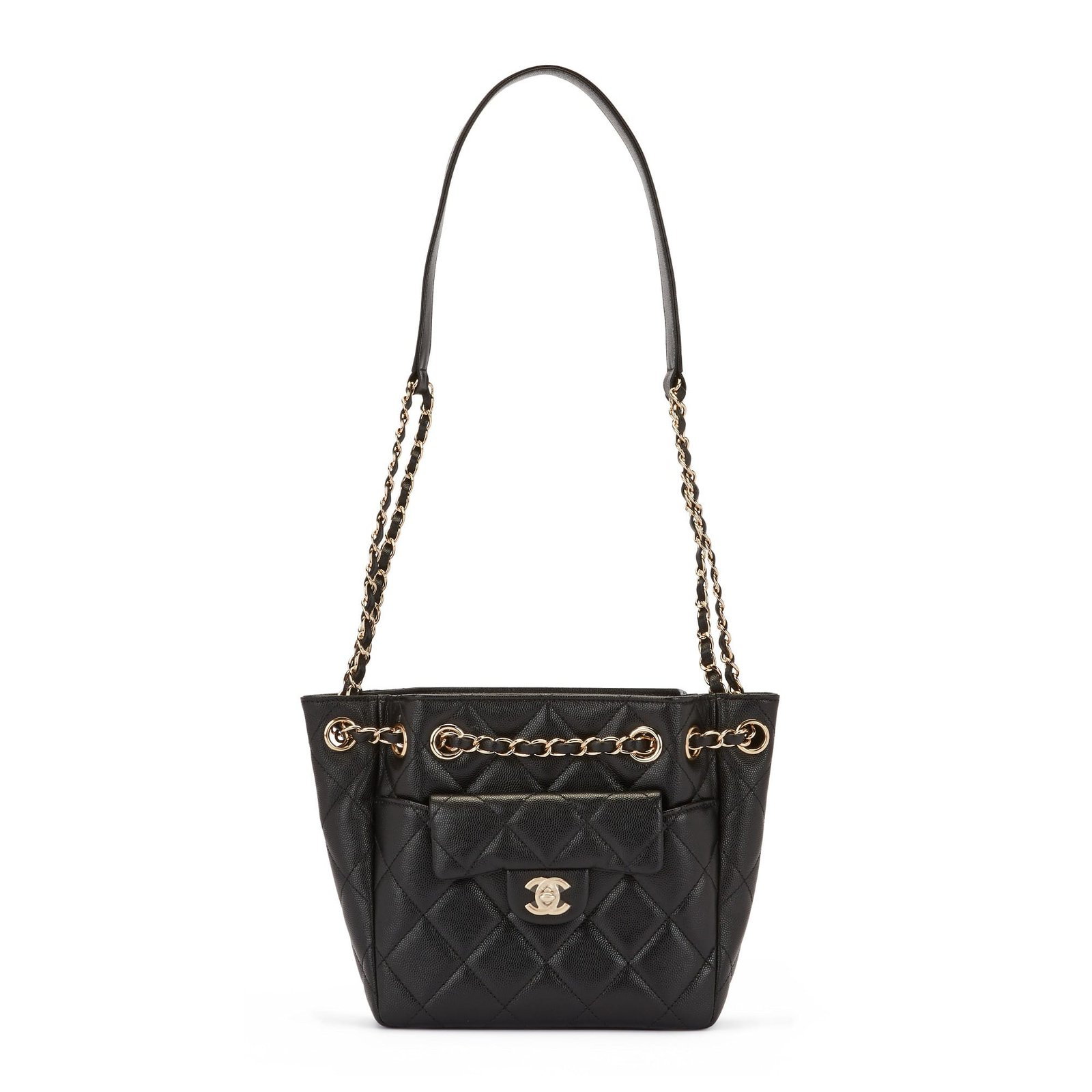 Chanel Black Quilted Grained Calfskin Bucket Bag Gold Hardware, 2021The interior is lined in tonal textile materialThis piece was featured during the 2021 Fall/Winter Act I collectionIncludes dustbag, large care card, and boxThis piece is final sale and not eligible for return