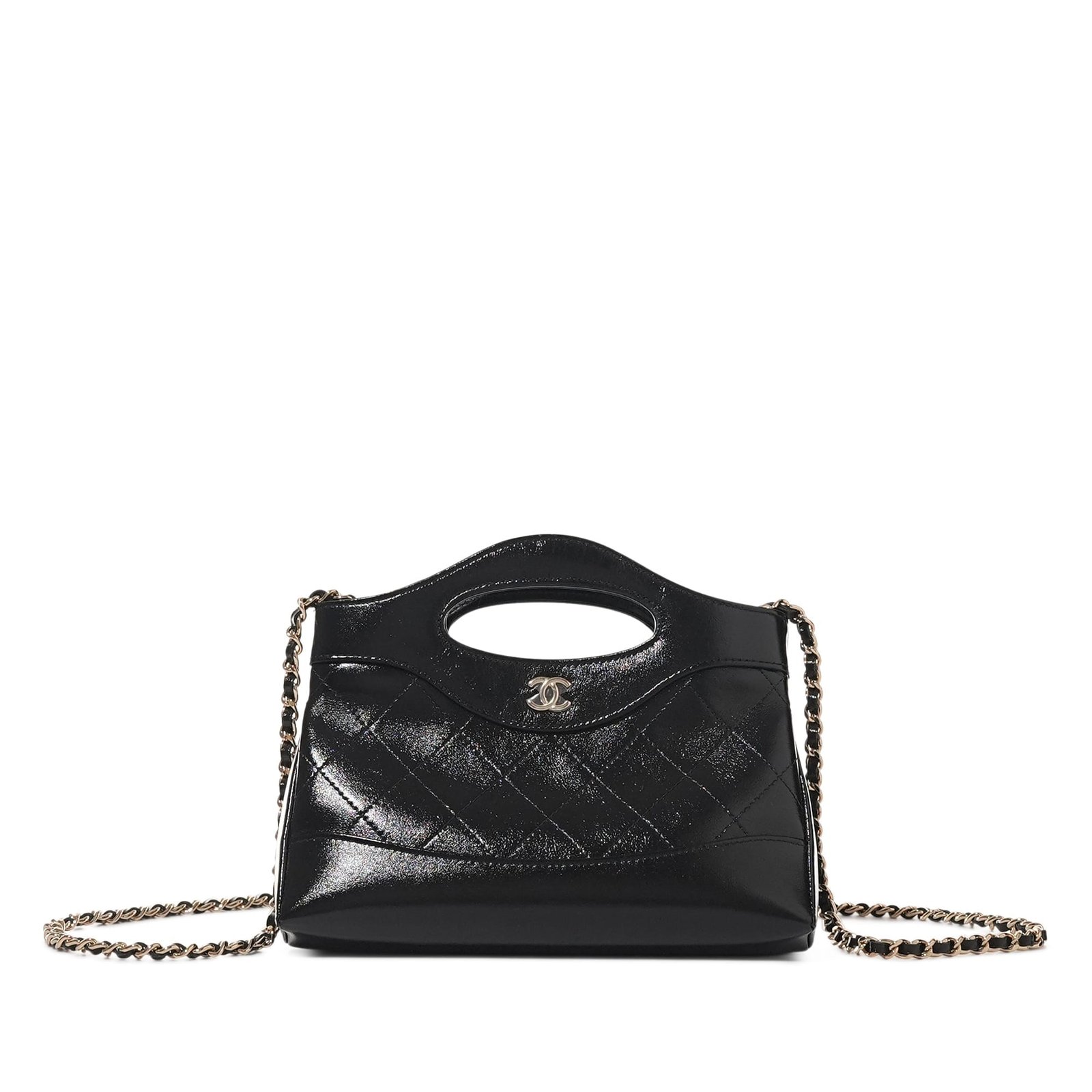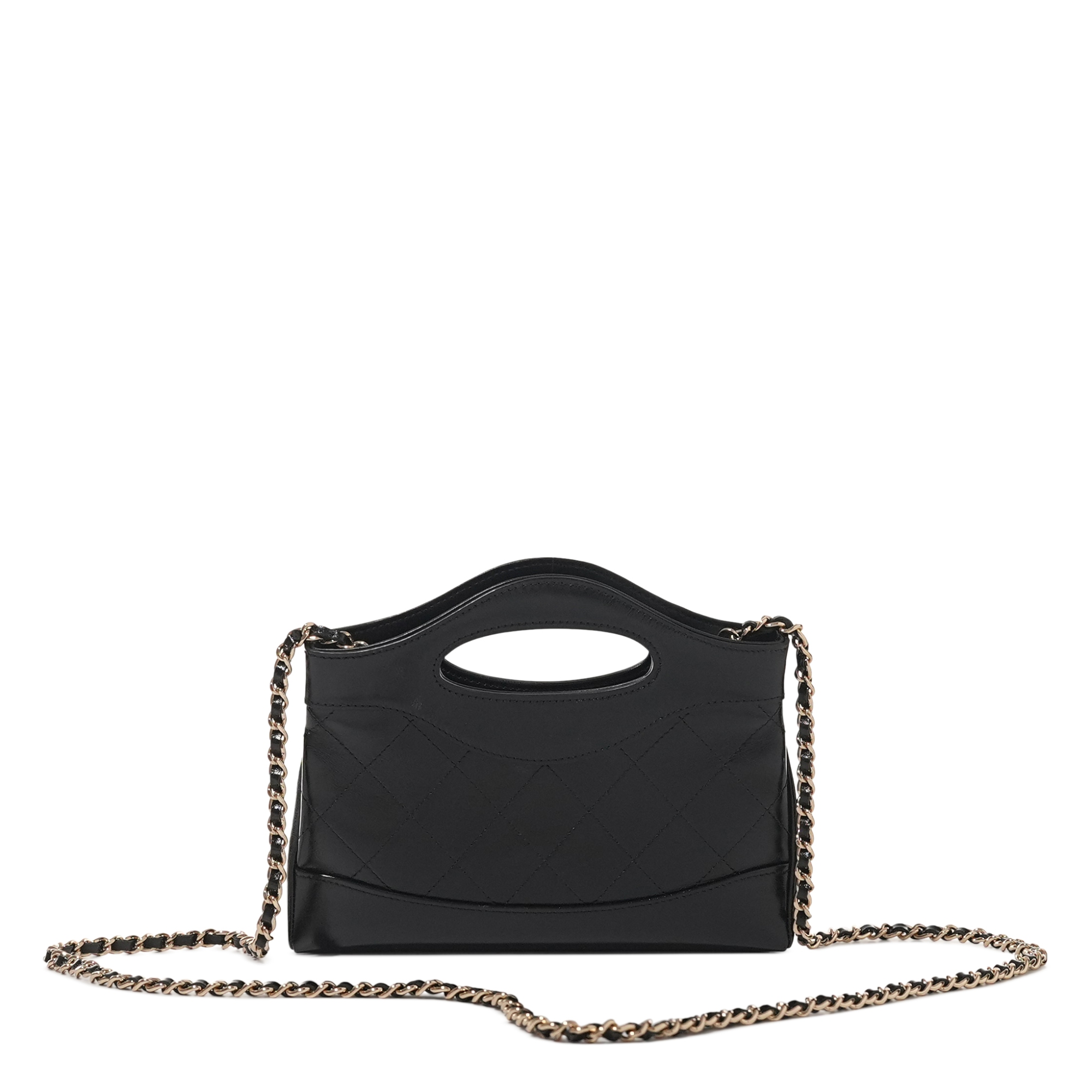 Chanel Black Quilted Lambskin 31 Clutch with Chain Pale Gold Hardware The interior is lined with tonal textile materialIncludes dust bag and boxThis item is final sale and not eligible for return