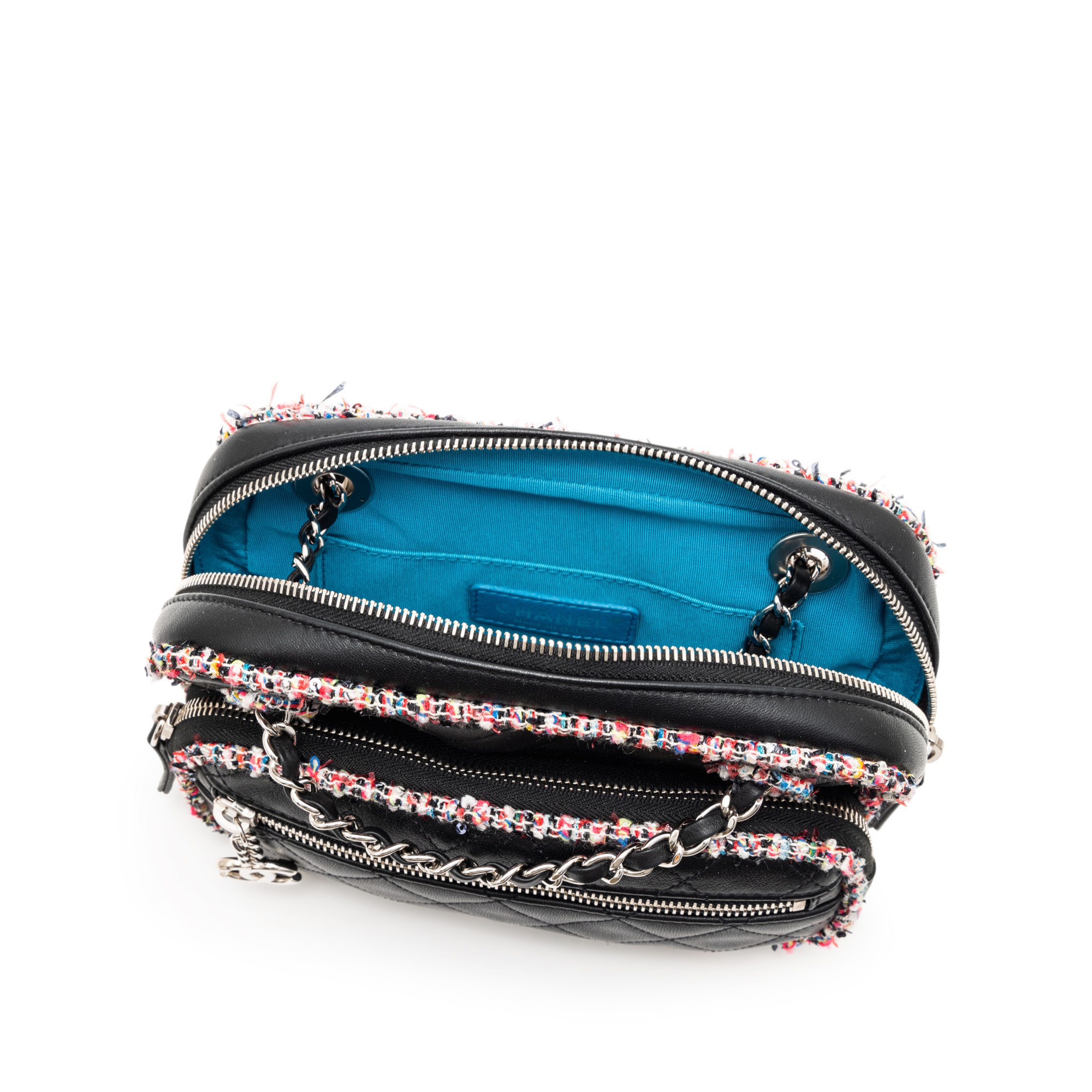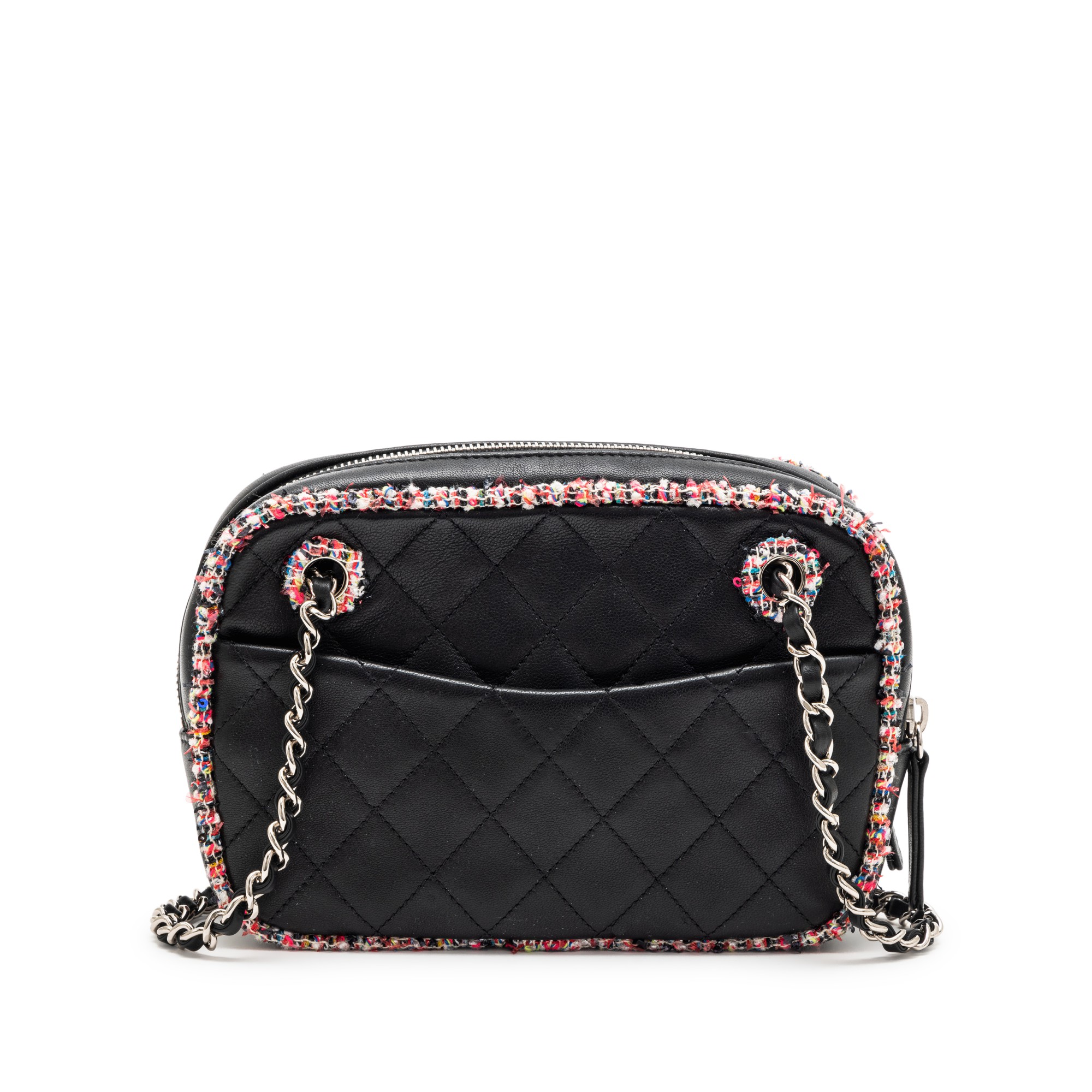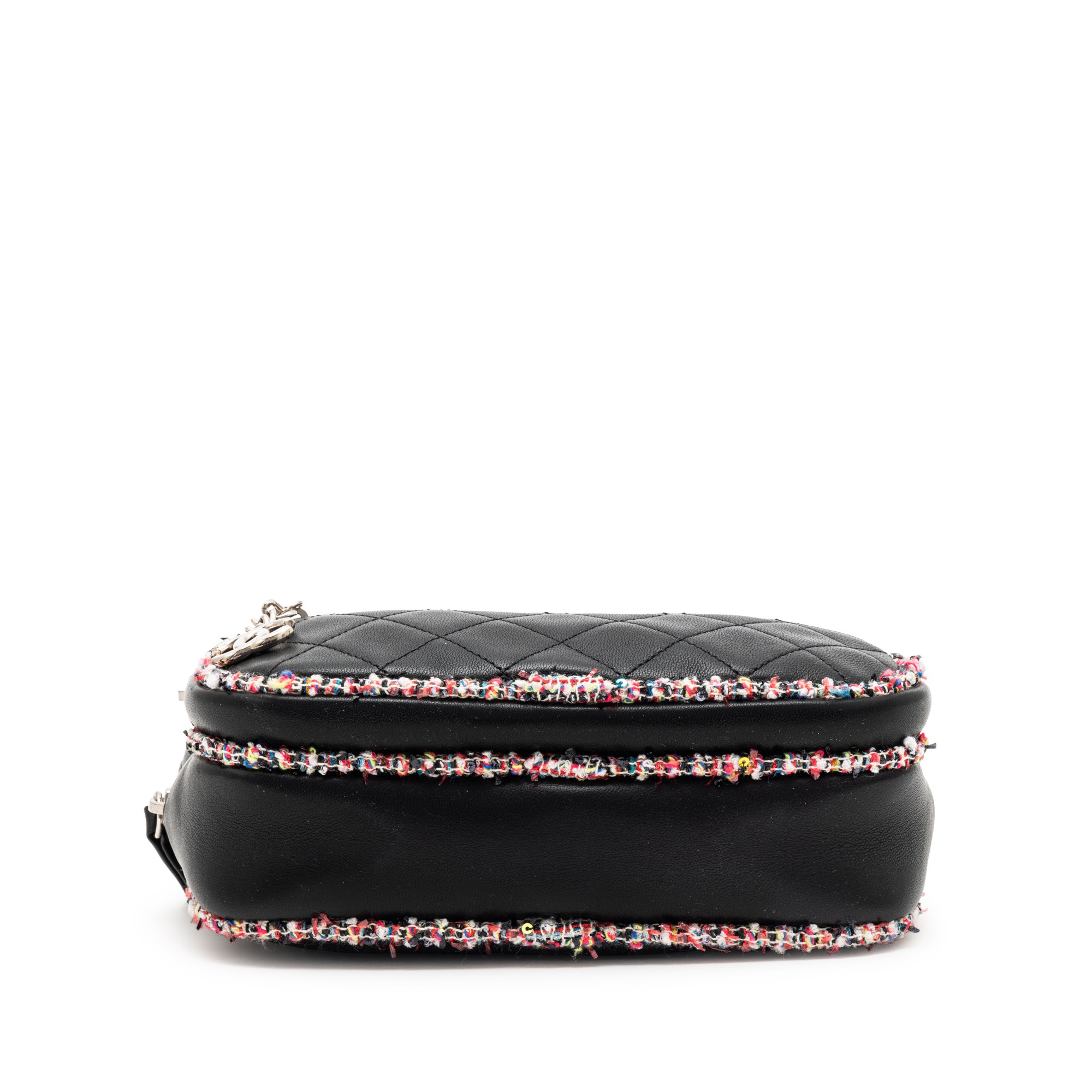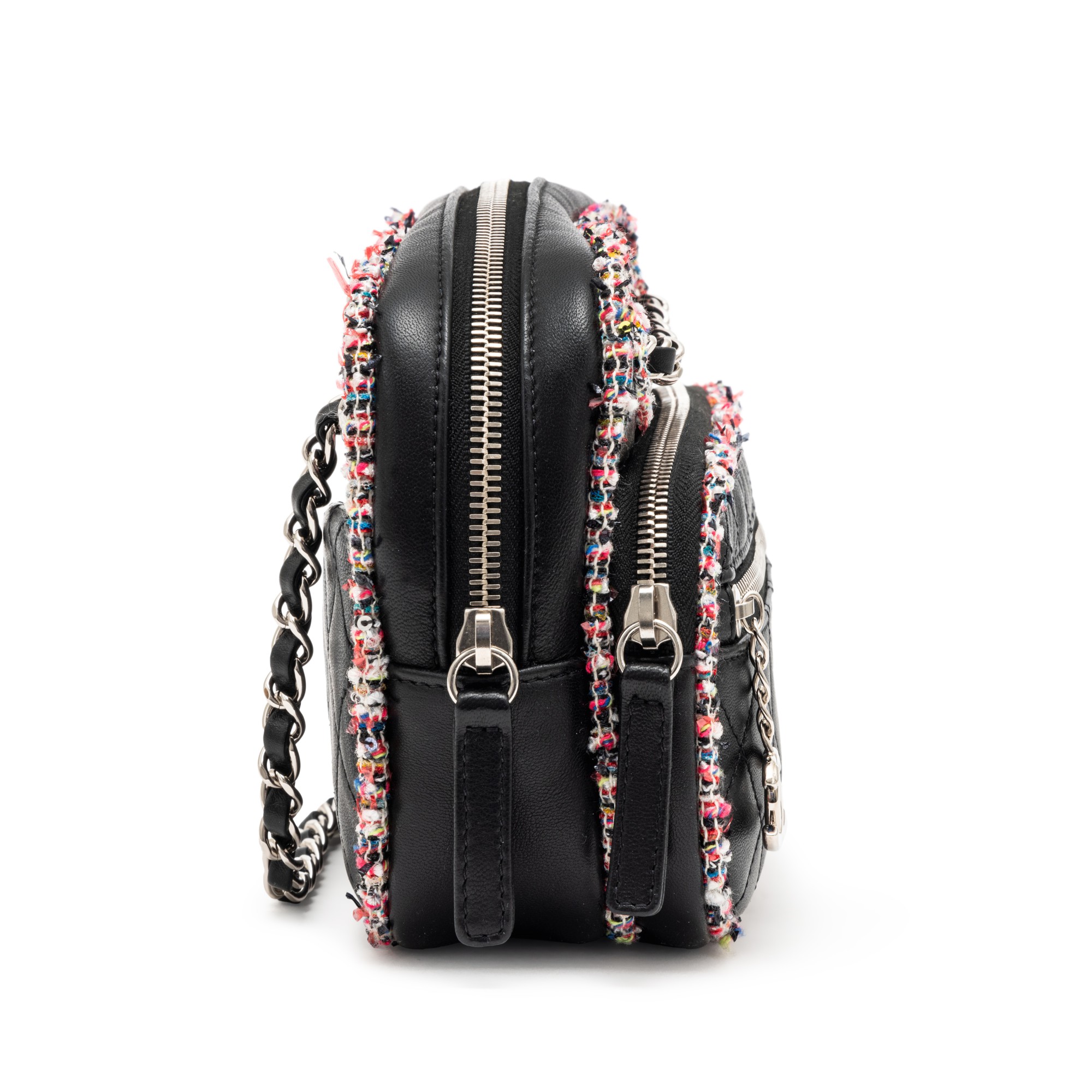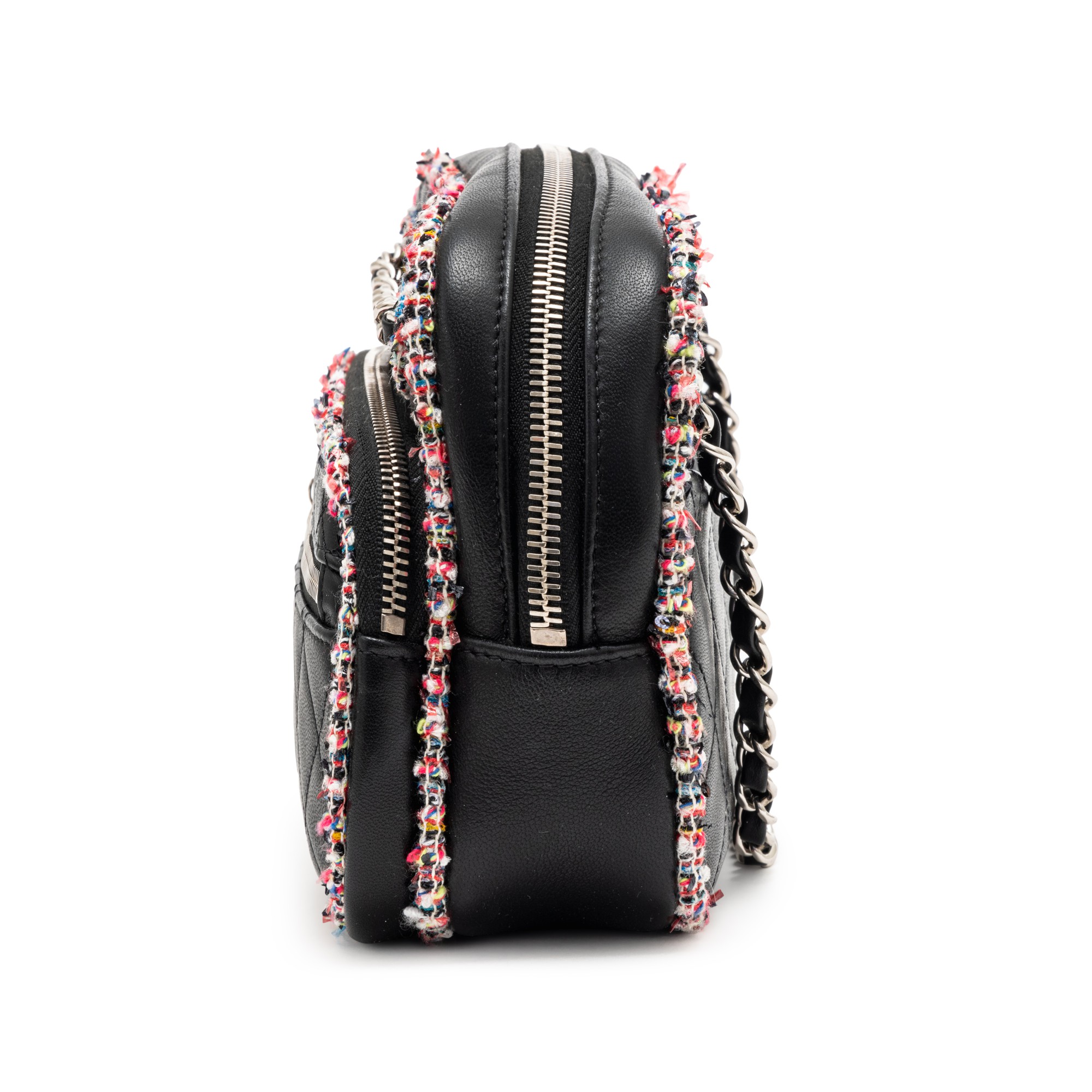 Black Quilted Lambskin and Multicolor Tweed Elegant Trim Camera Bag Silver Hardware, 2019