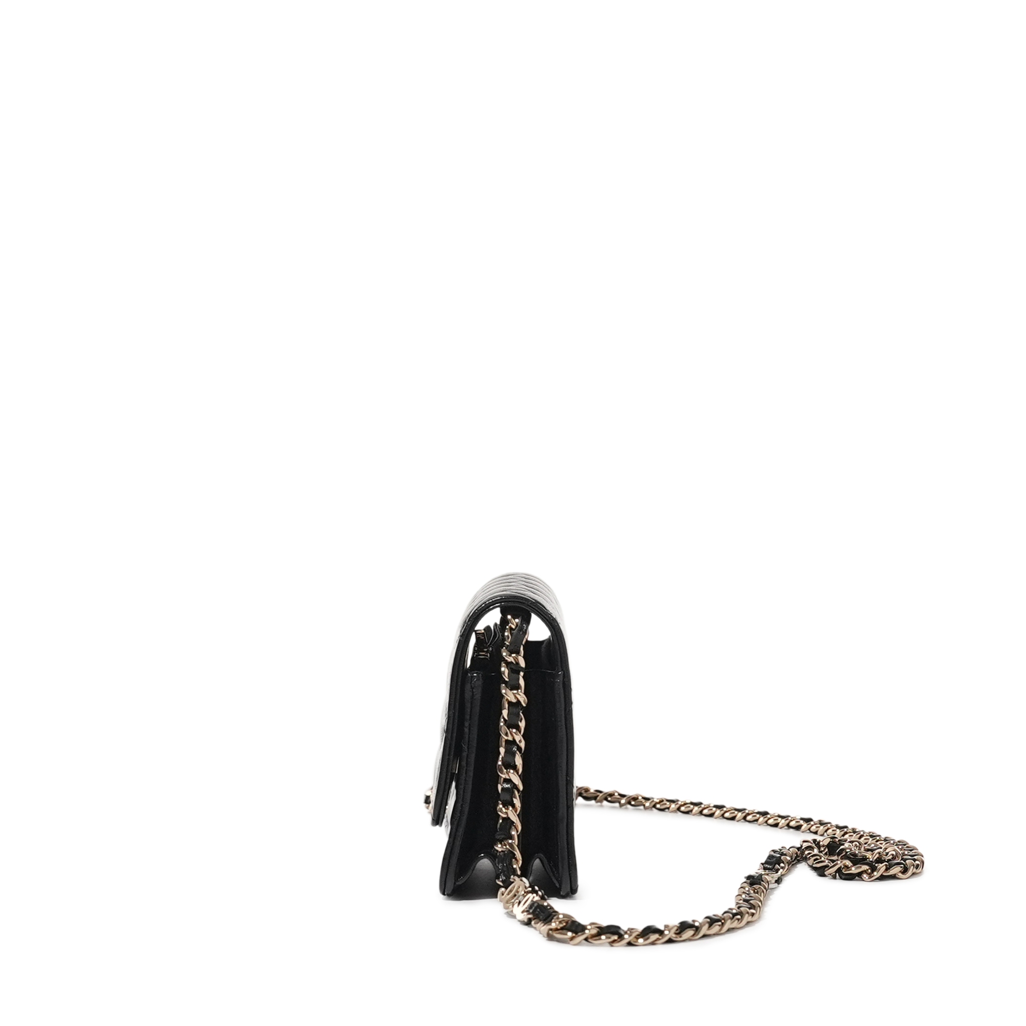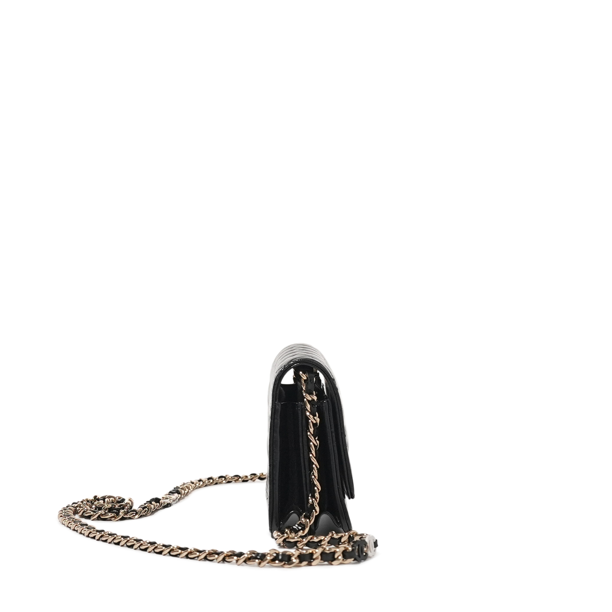 Black Quilted Lambskin Clutch with Chain Pale Gold Hardware, 2024