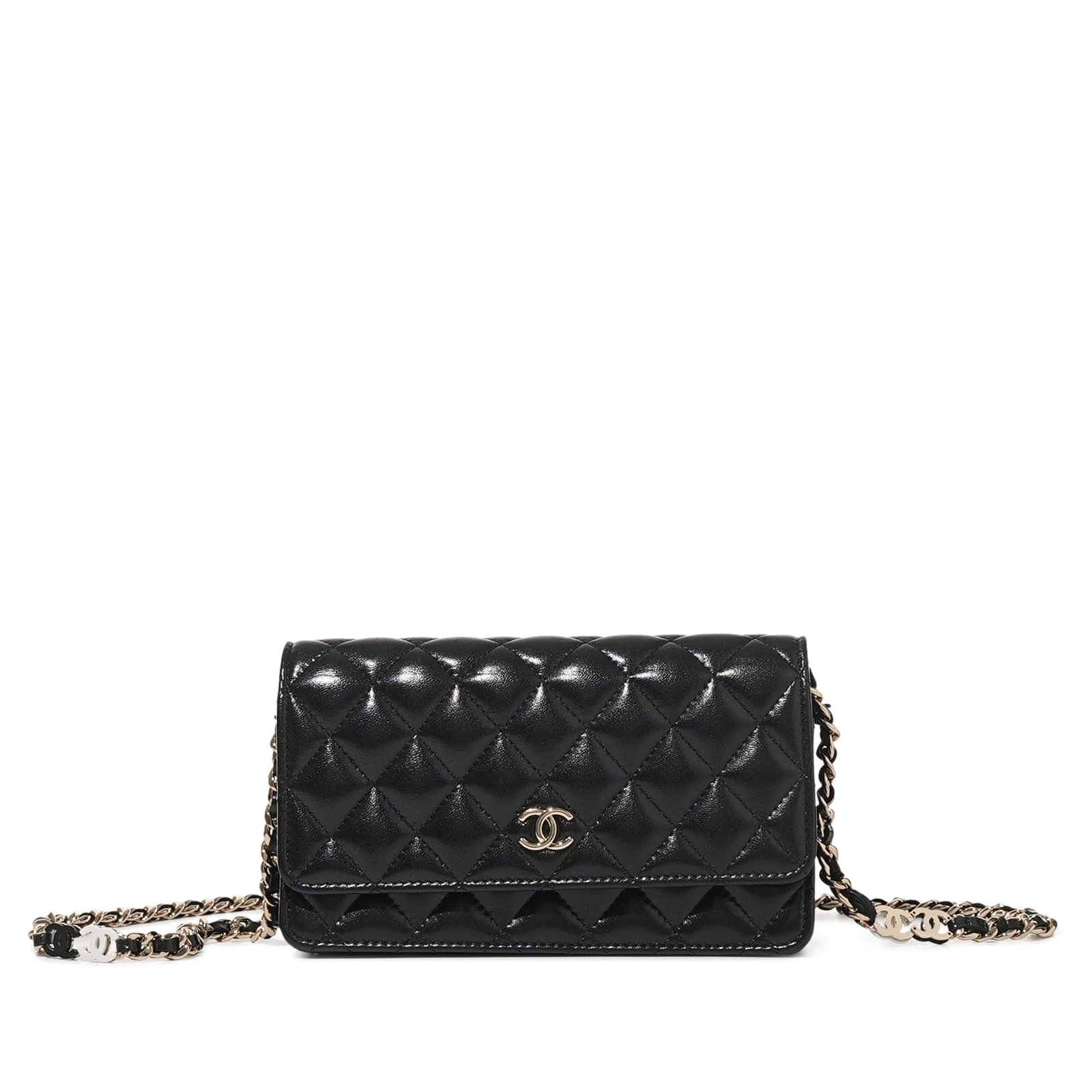 Chanel Black Quilted Lambskin Clutch with Chain Pale Gold Hardware, 2024The interior is lined in tonal textile materialIncludes dust bag and boxThis item is final sale and not eligible for return
