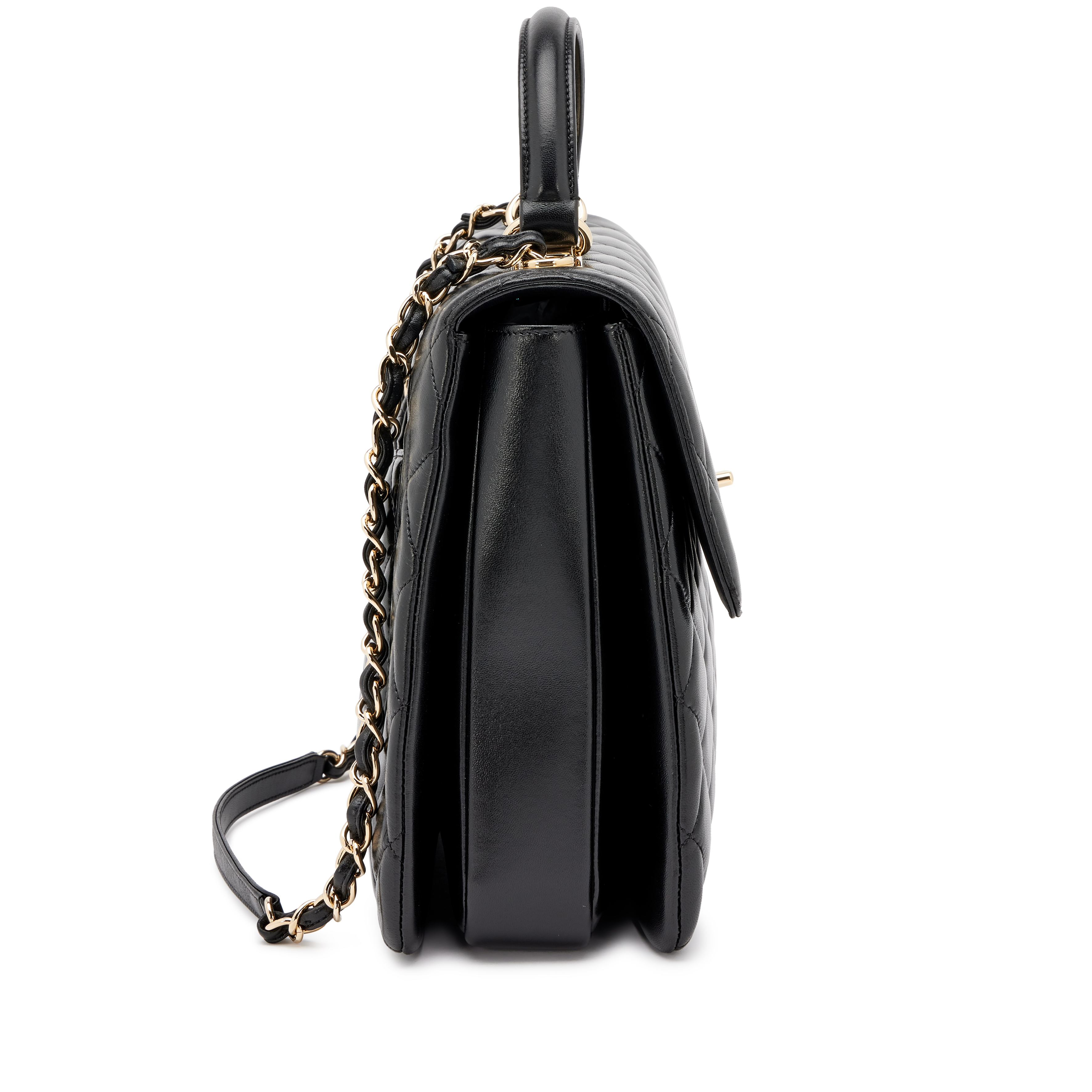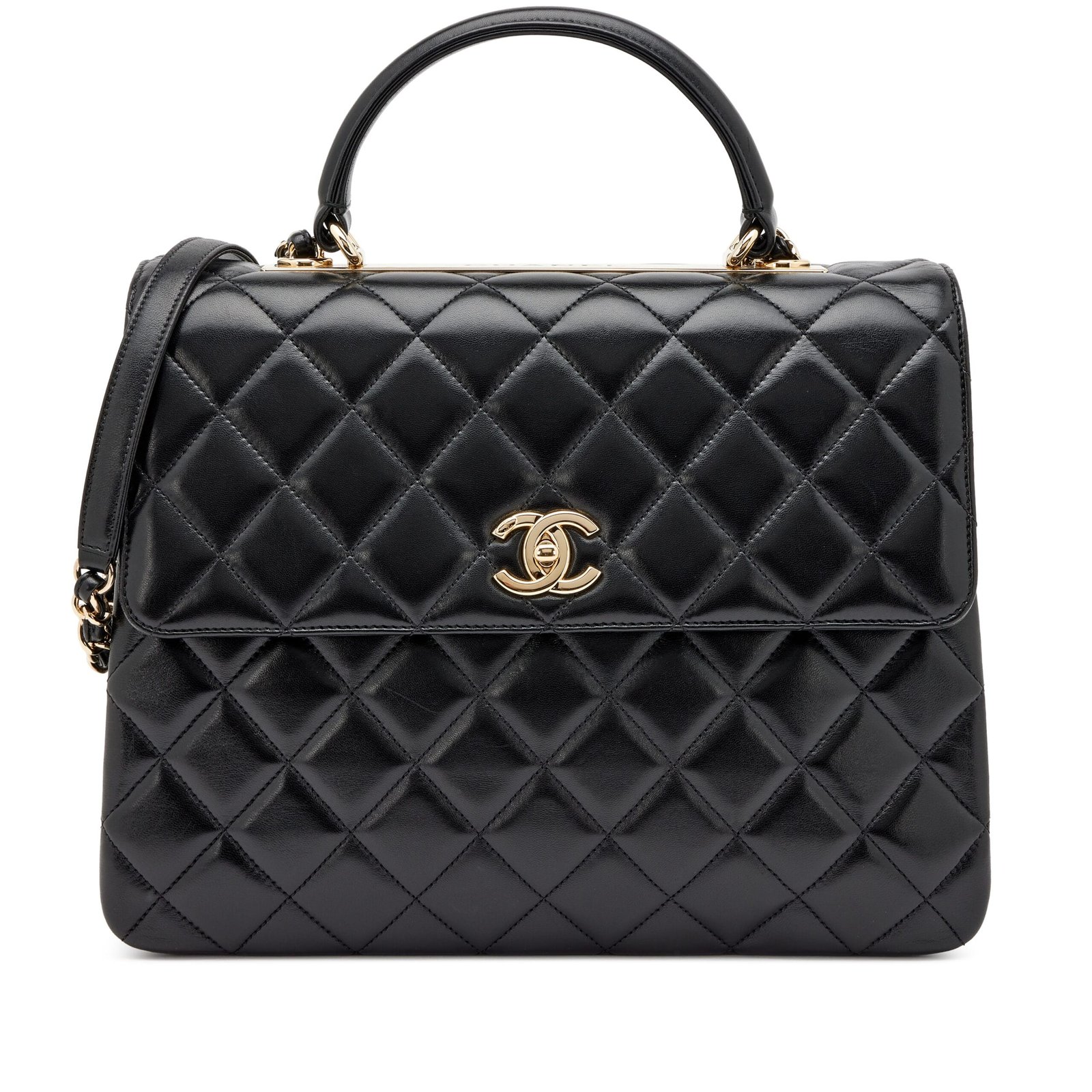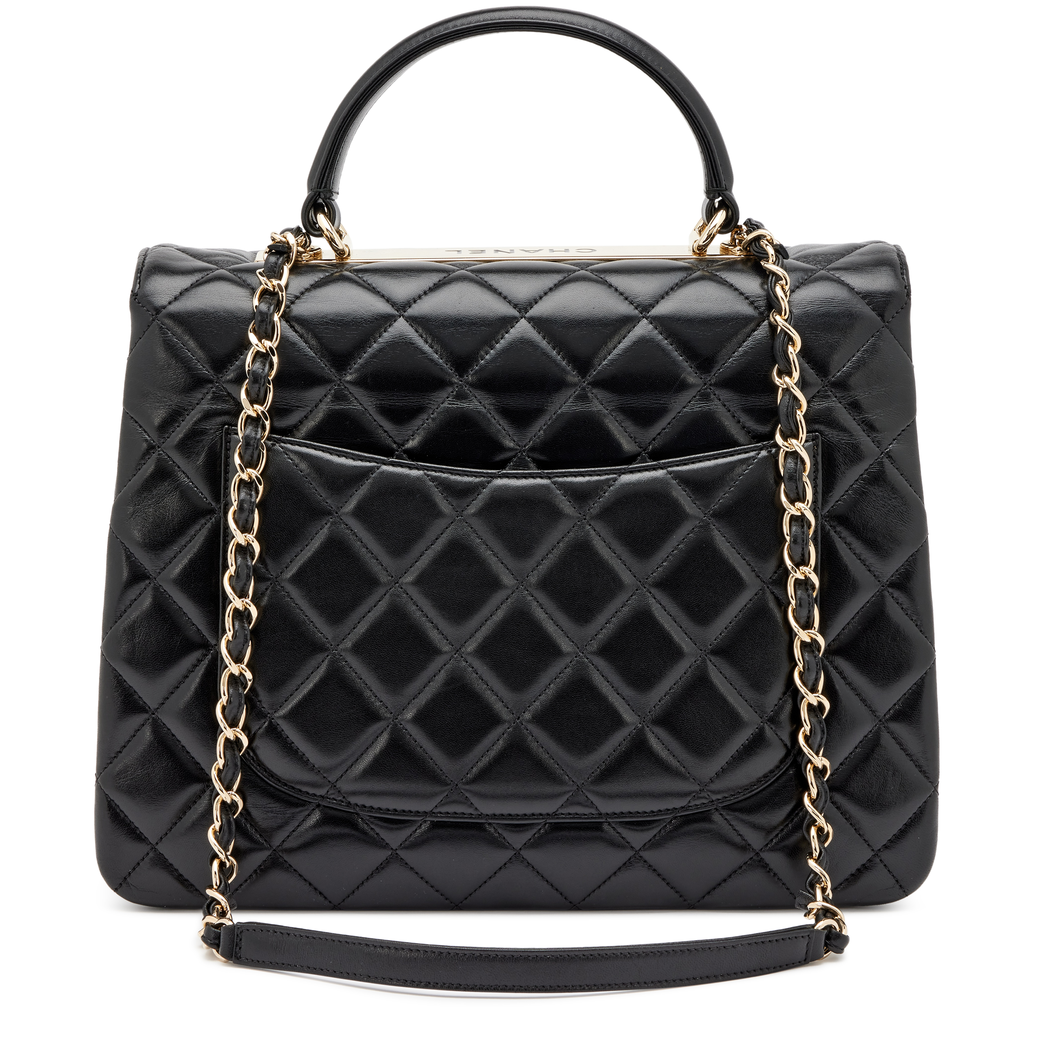 Black Quilted Lambskin Large Trendy CC Dual Handle Flap Gold Hardware, 2016-2017