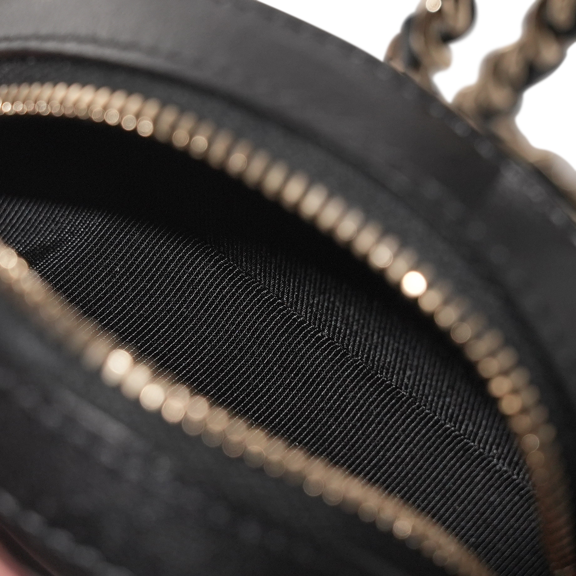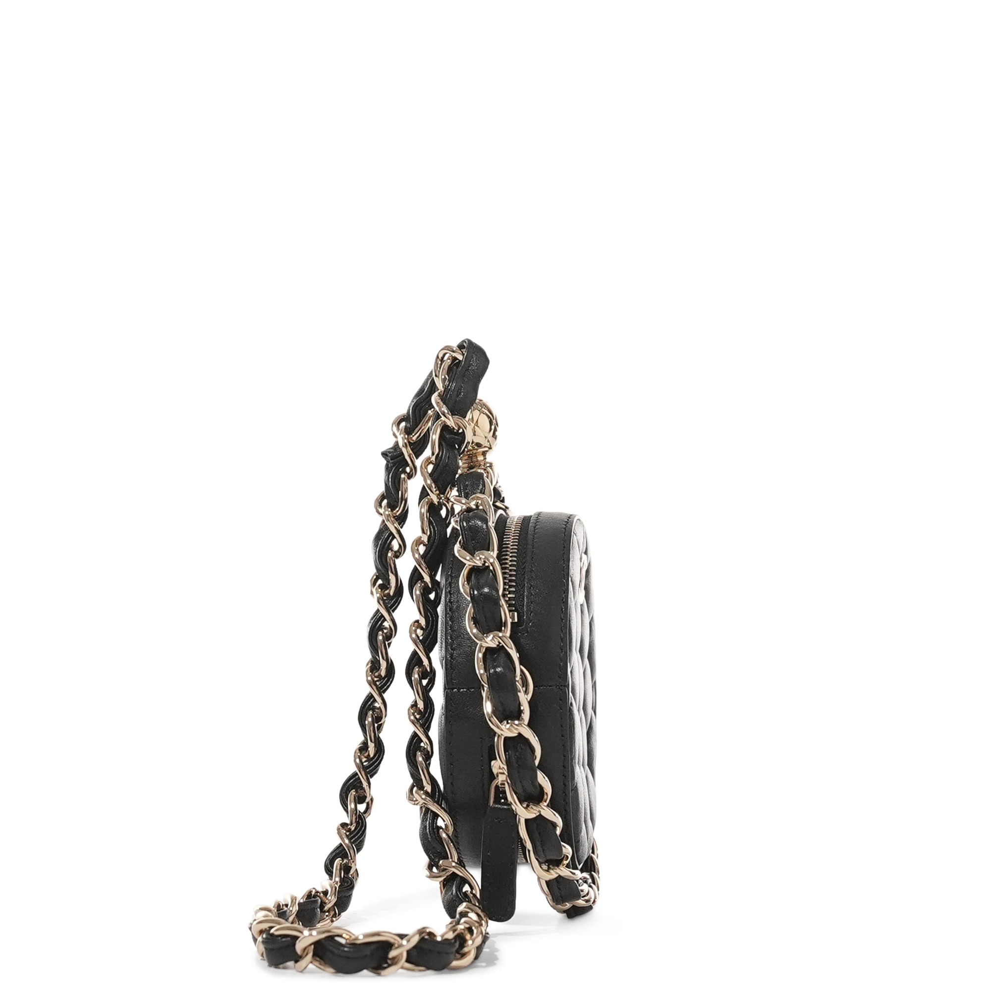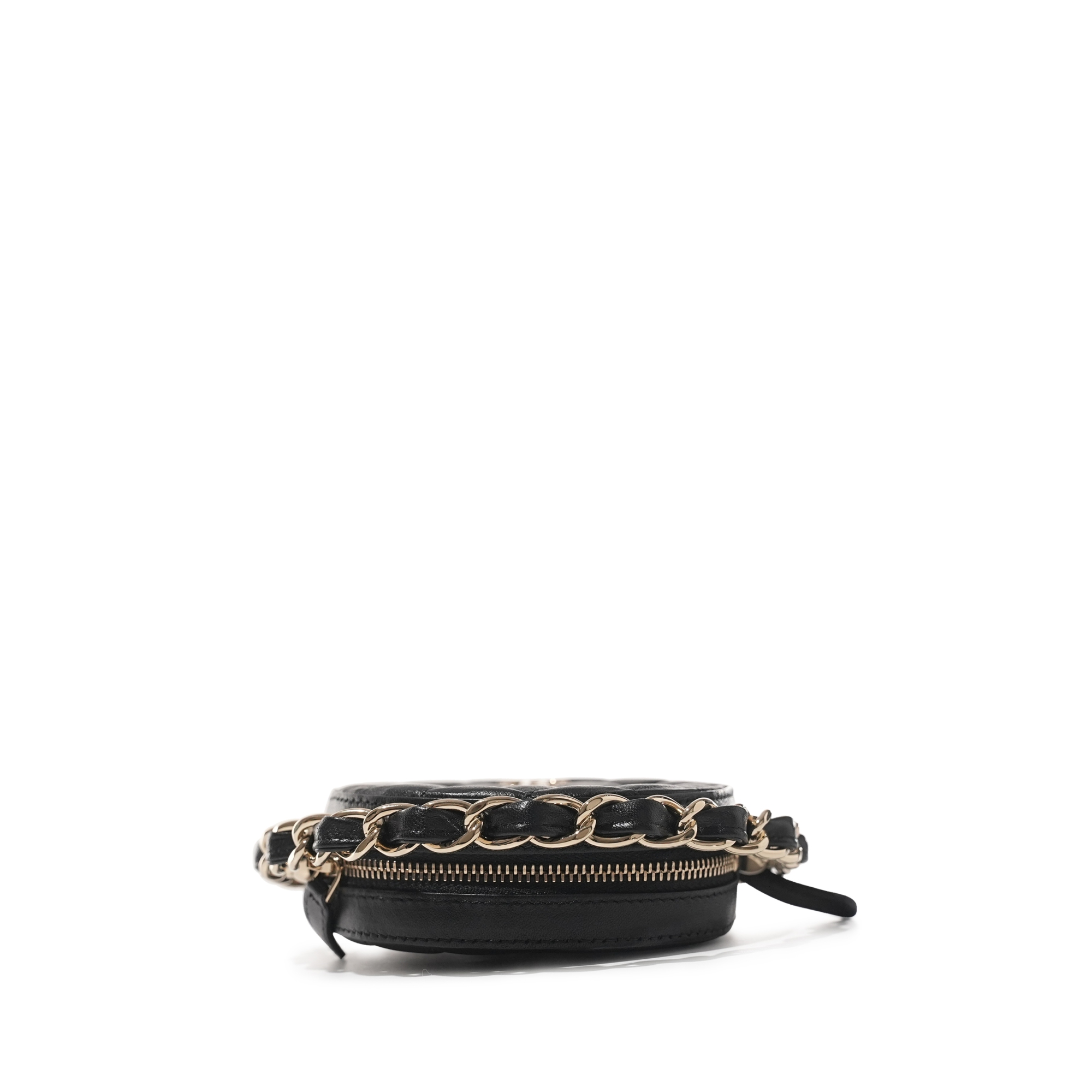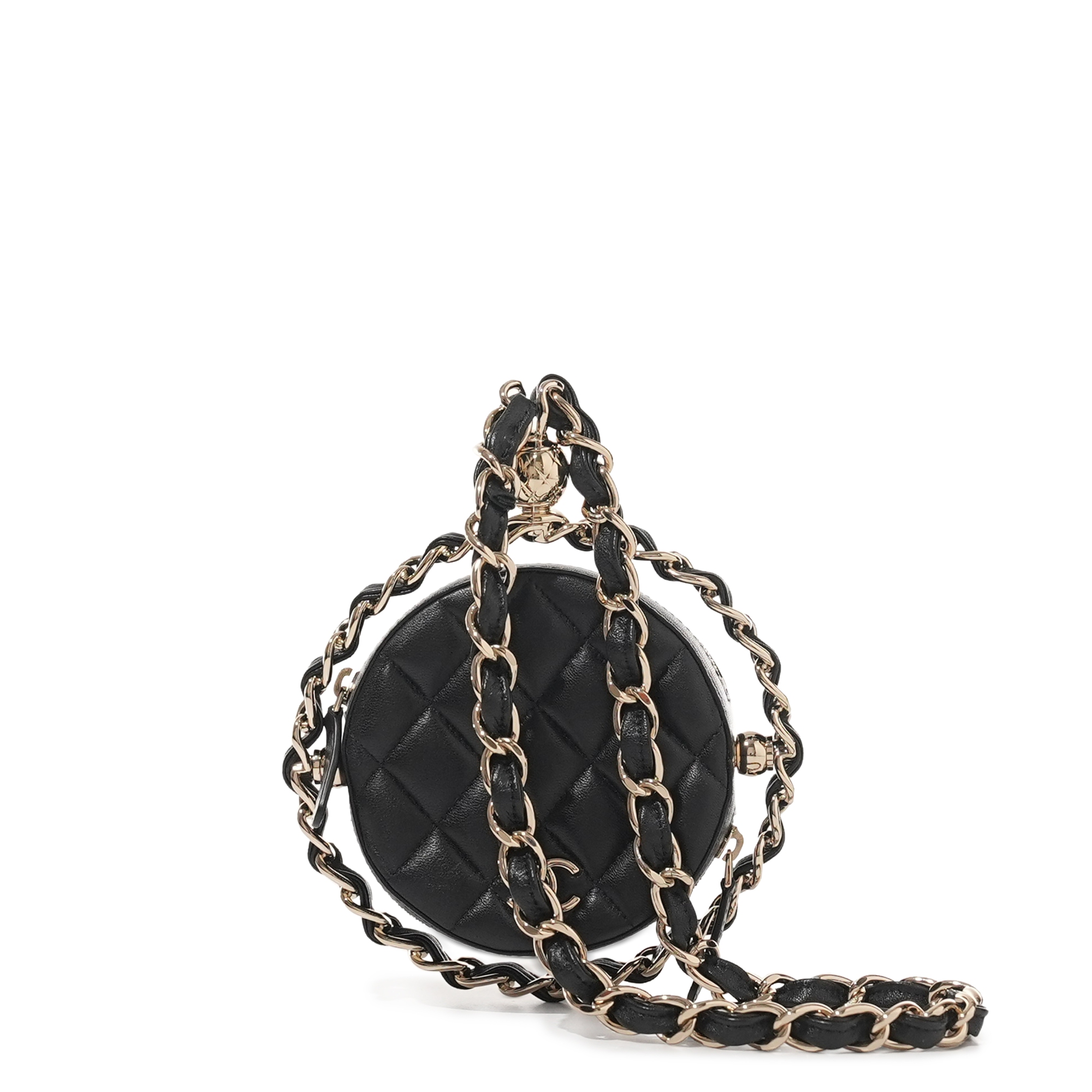 Chanel Black Quilted Lambskin Round Clutch Pale Gold Hardware, 2021. The interior is lined with tonal textile materialIncludes authenticity card, dust bag and box. This item is final sale and not eligible for return