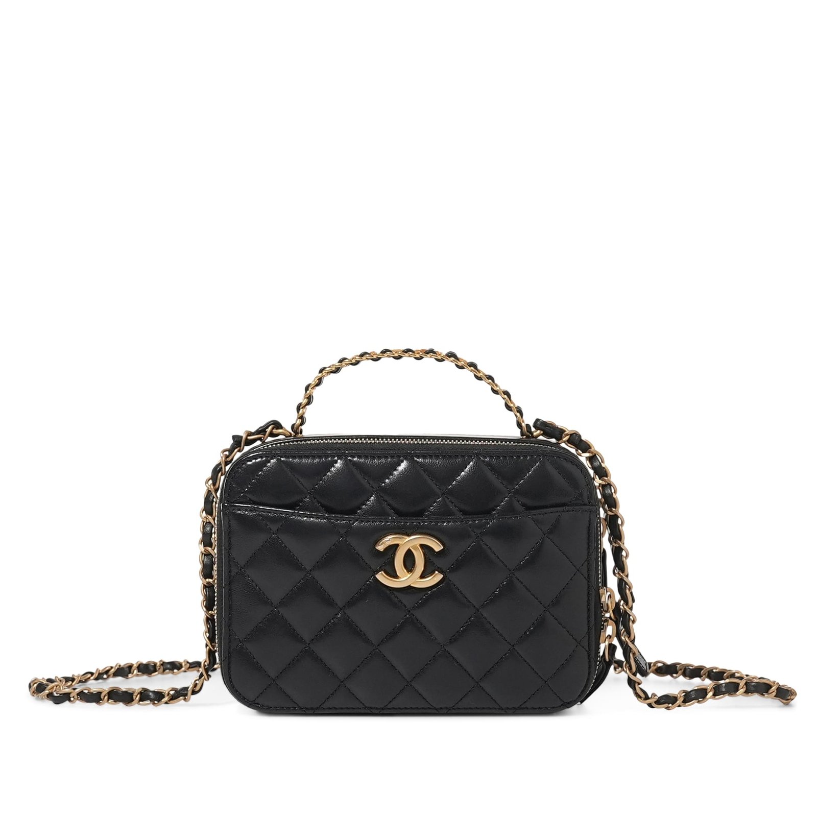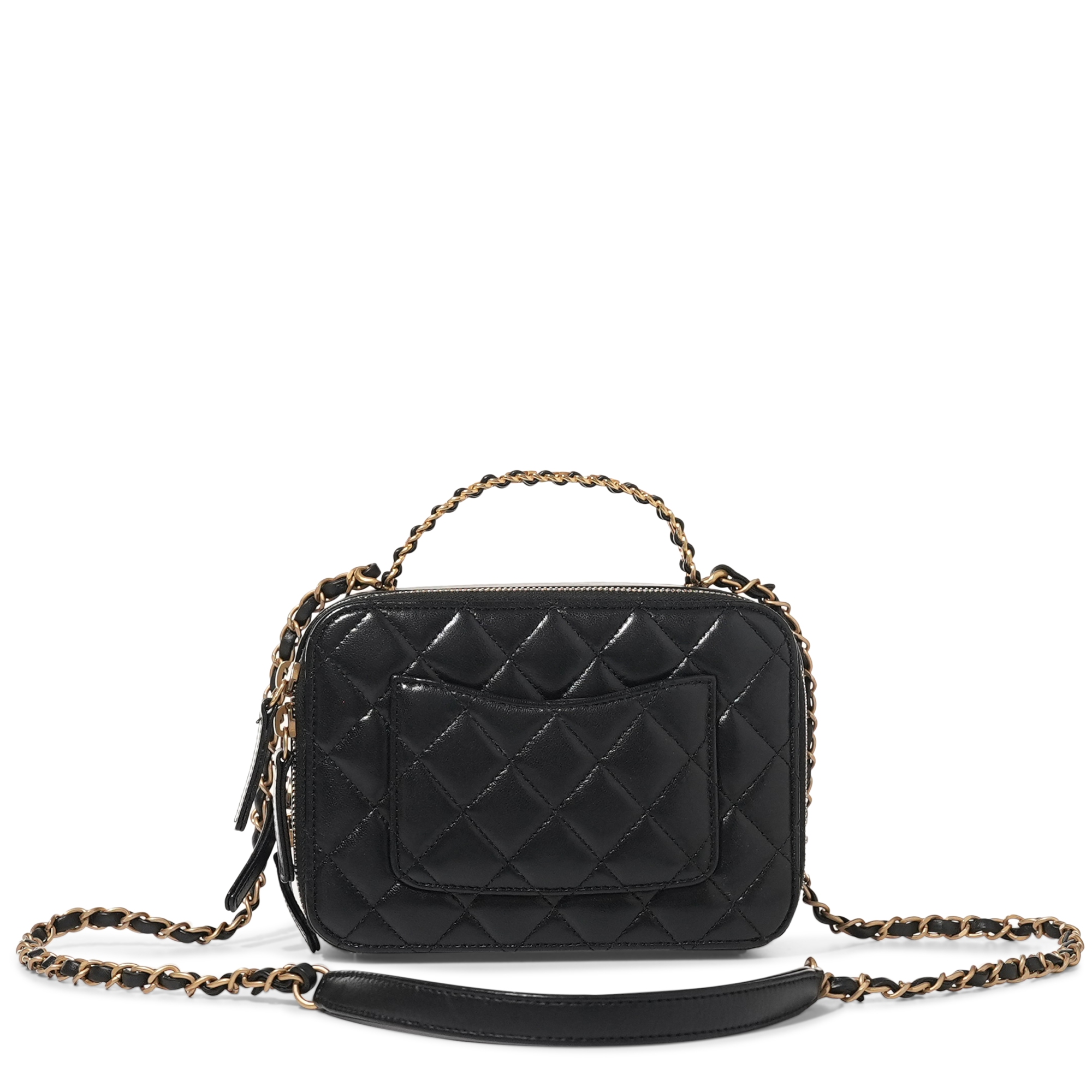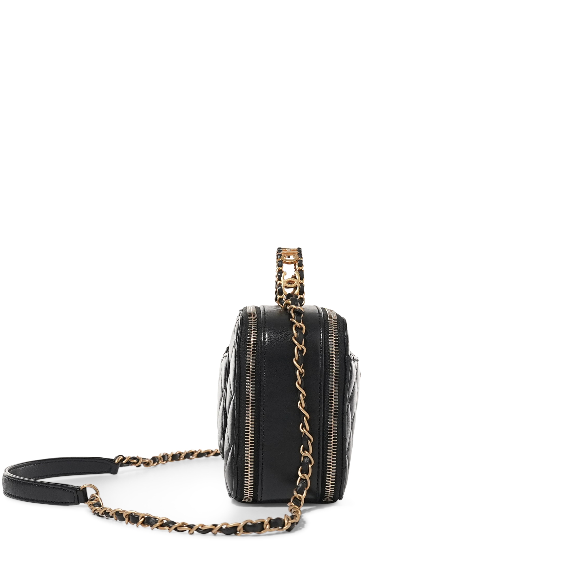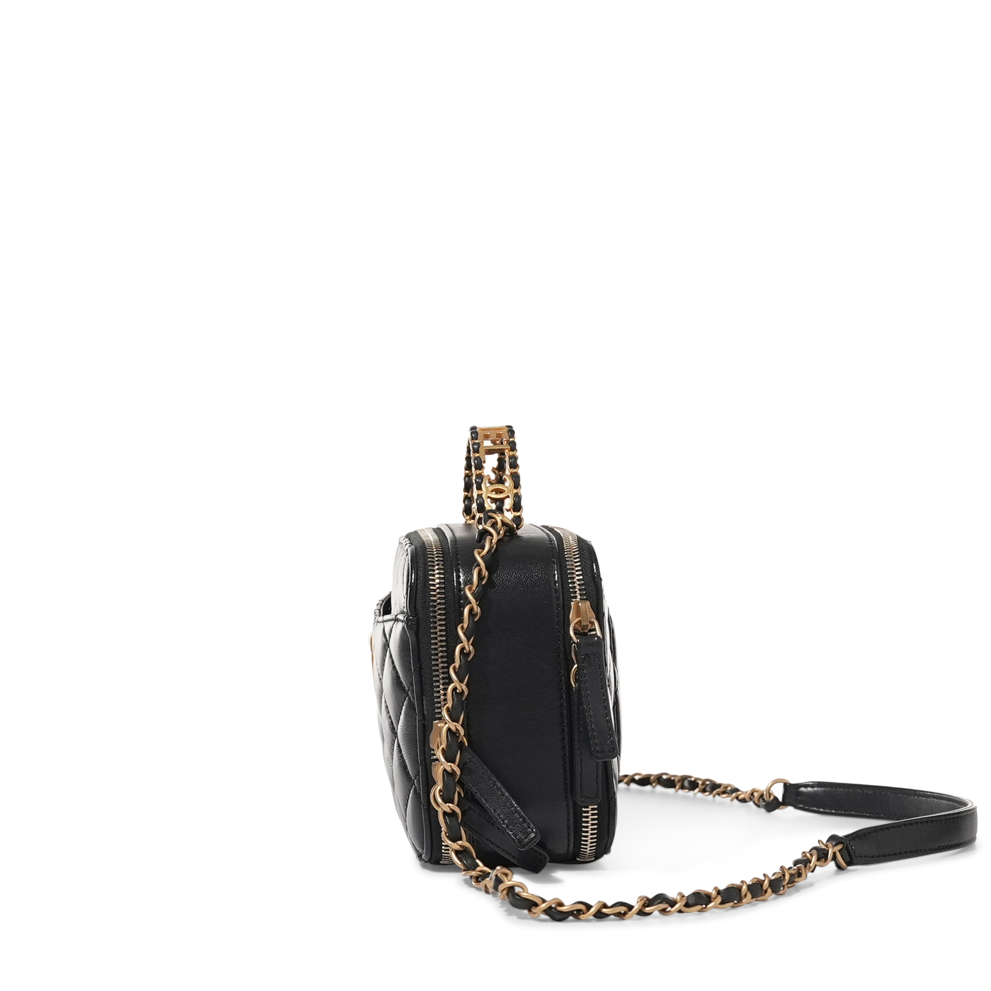 Chanel Black Quilted Lambskin Top Handle Camera Case Brushed Gold Hardware, 2022