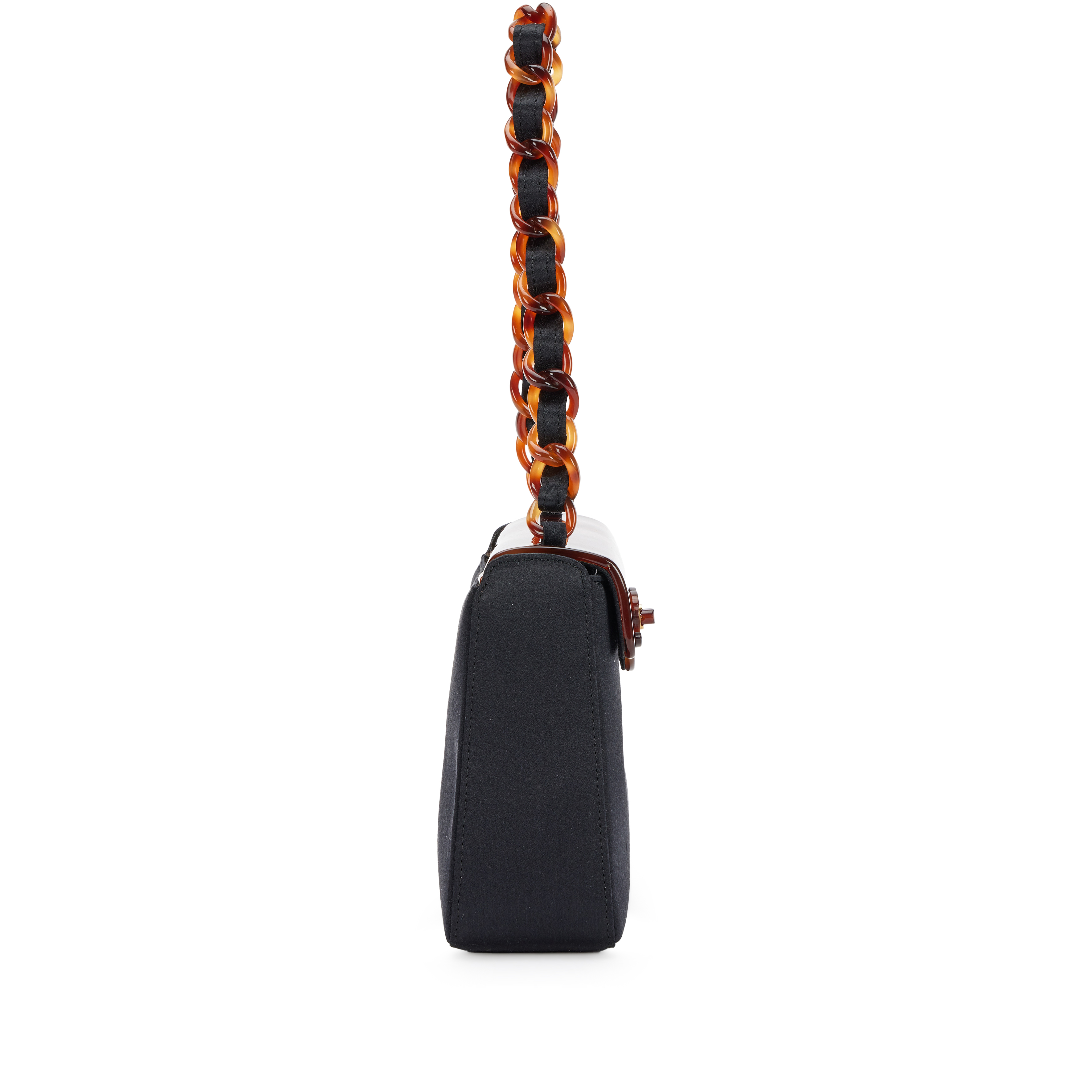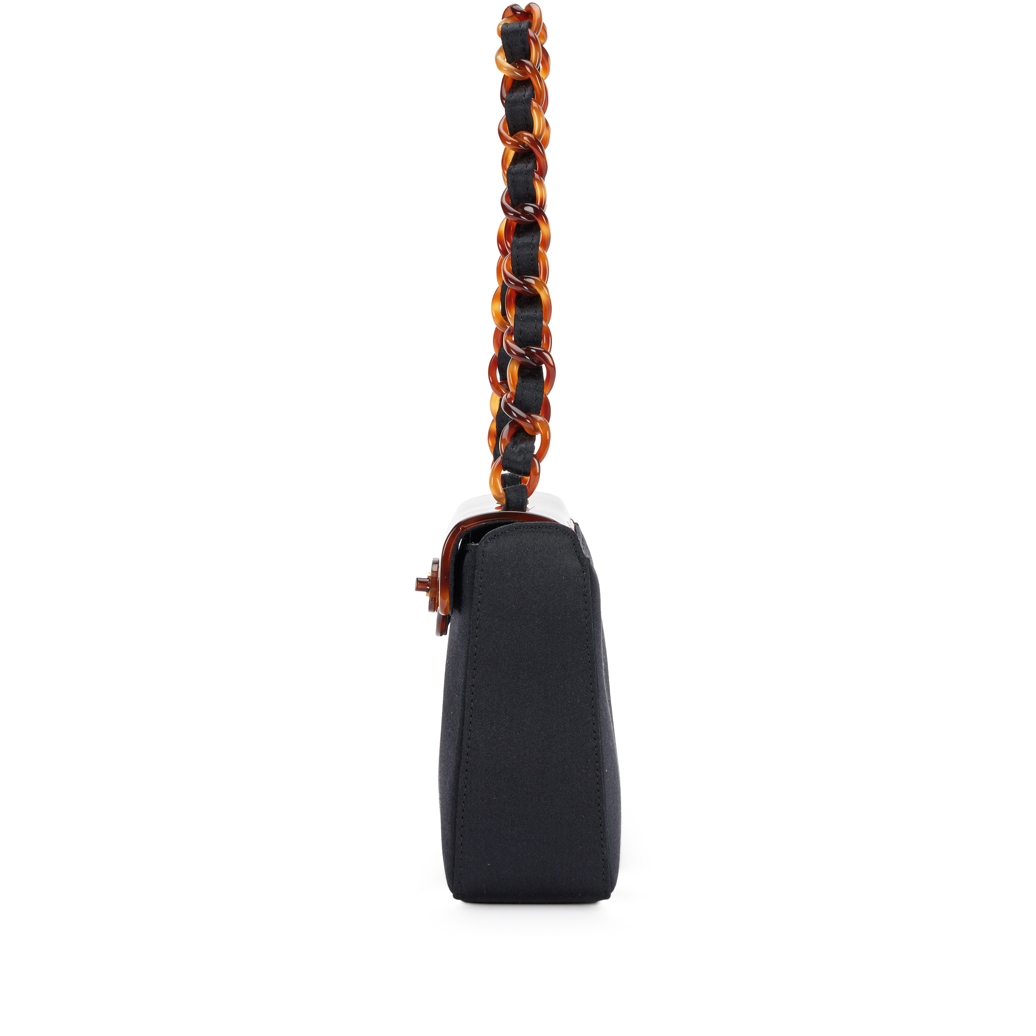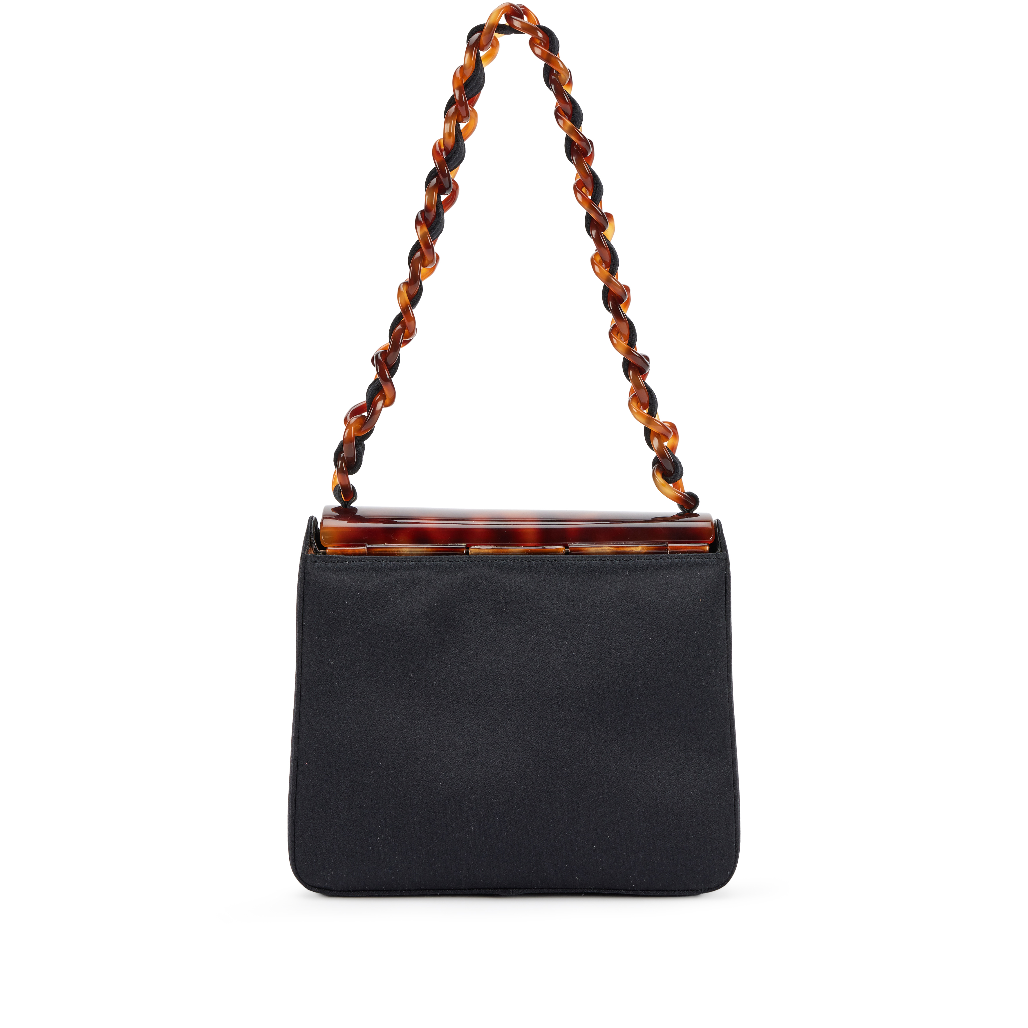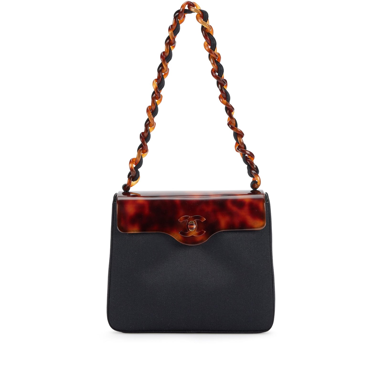 Black Satin CC Mini Flap Evening Bag Tortoiseshell Bakelite Hardware, 1999