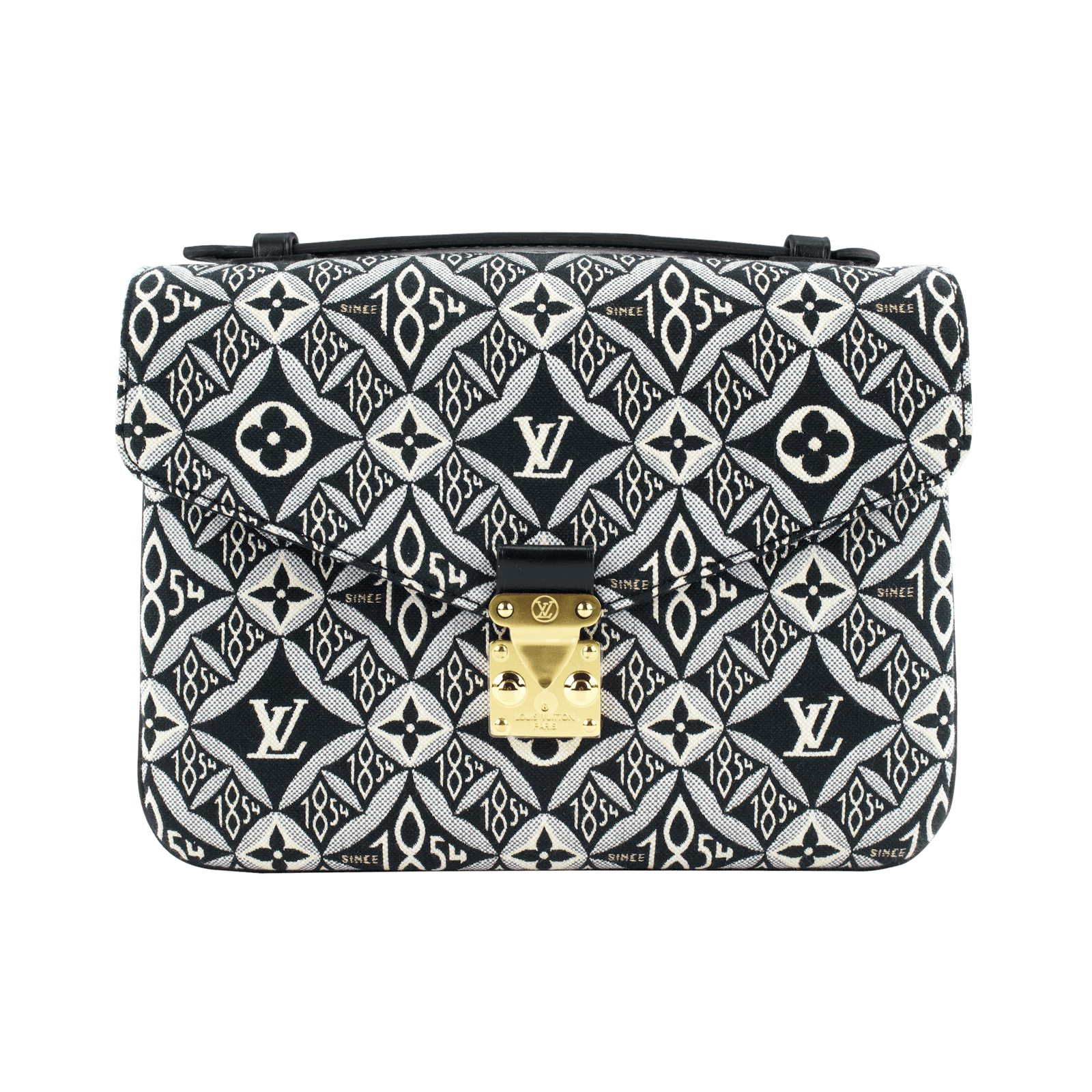 Louis Vuitton Black Since 1854 Jacquard Pochette Metis Crossbody Flap in Black and White Textile with Gold Tone Hardware, 2020Features S-lock closure, chic top handle and a long detachable strap for shoulder or cross-body wearInterior in microfiber liningIncludes LV Box, dustbag, barcode tag, care tag and bookletThis item is final sale and not eligible for return