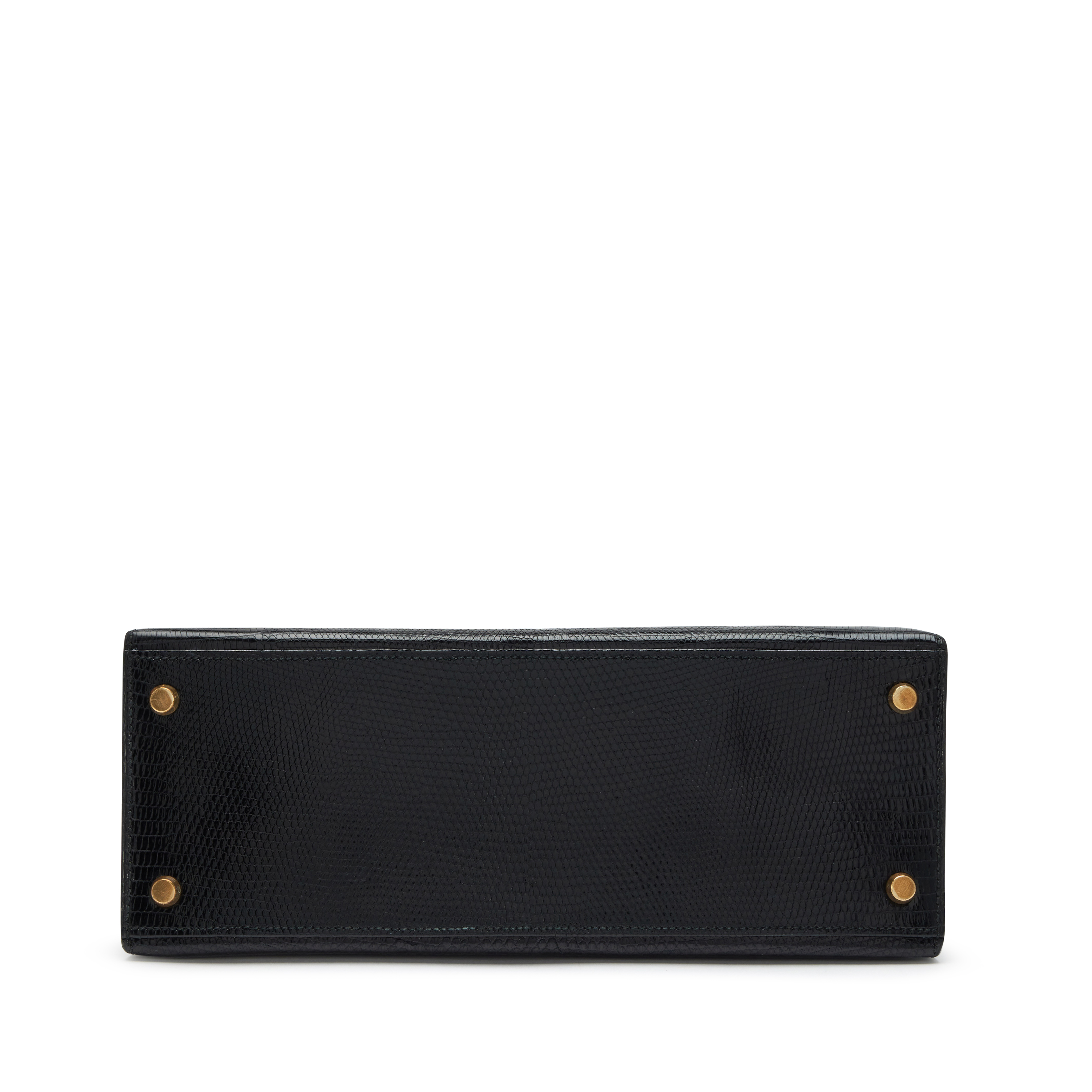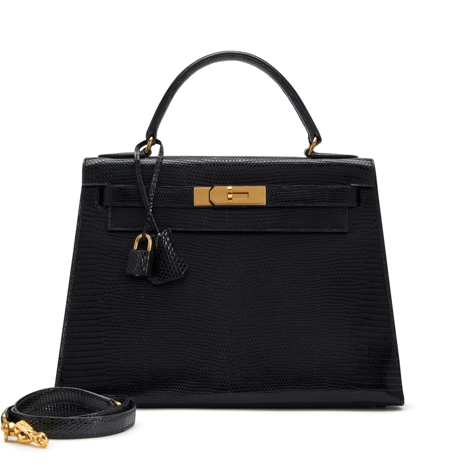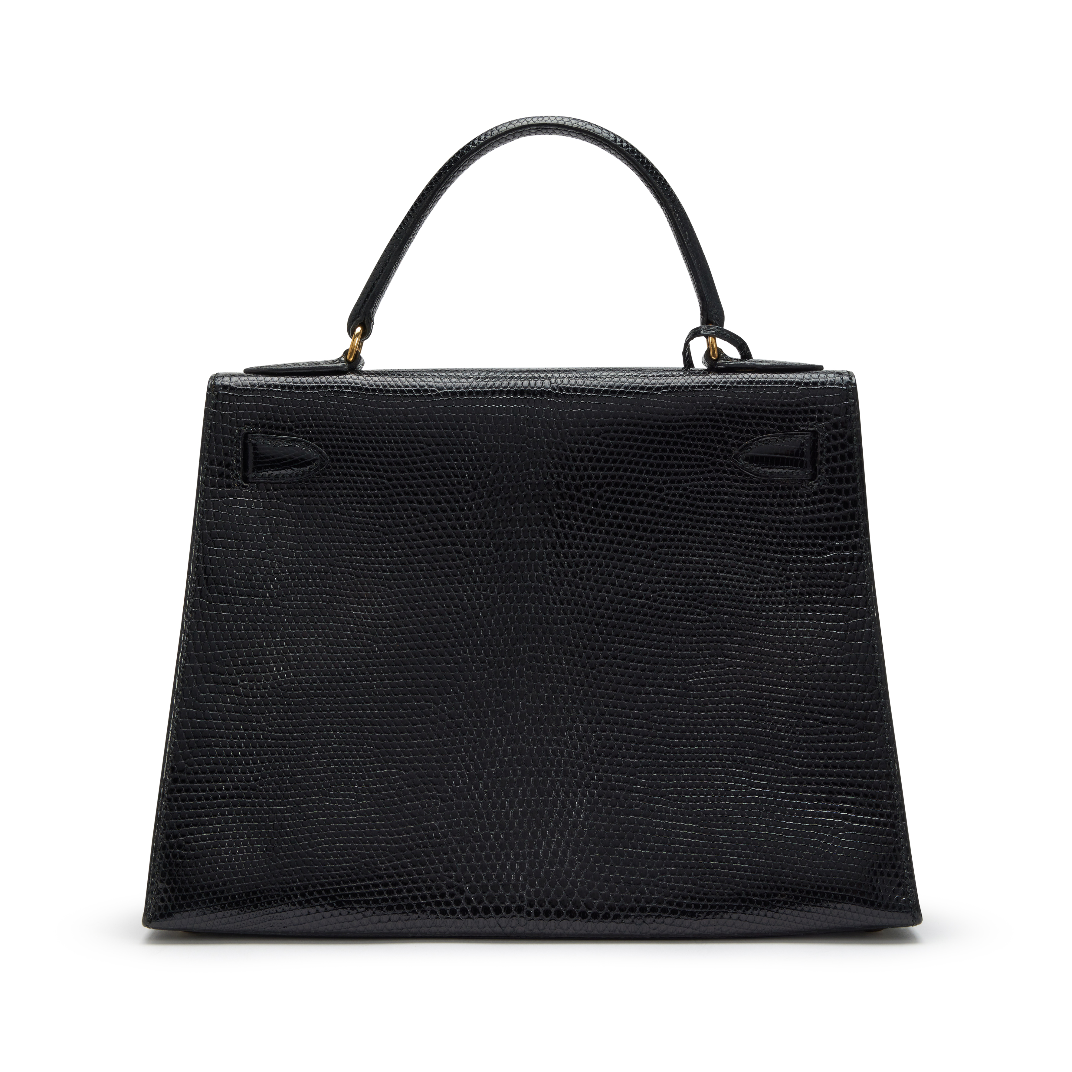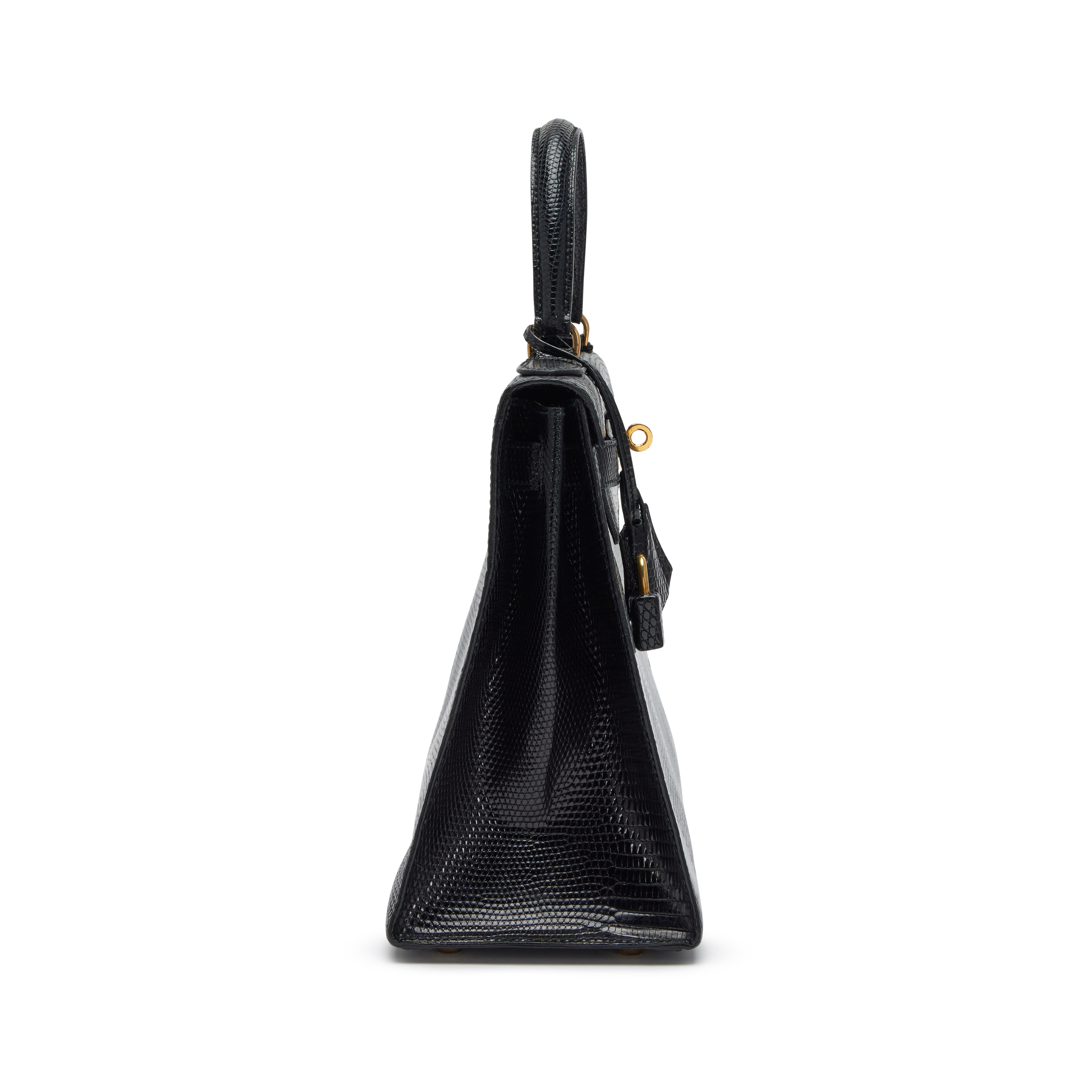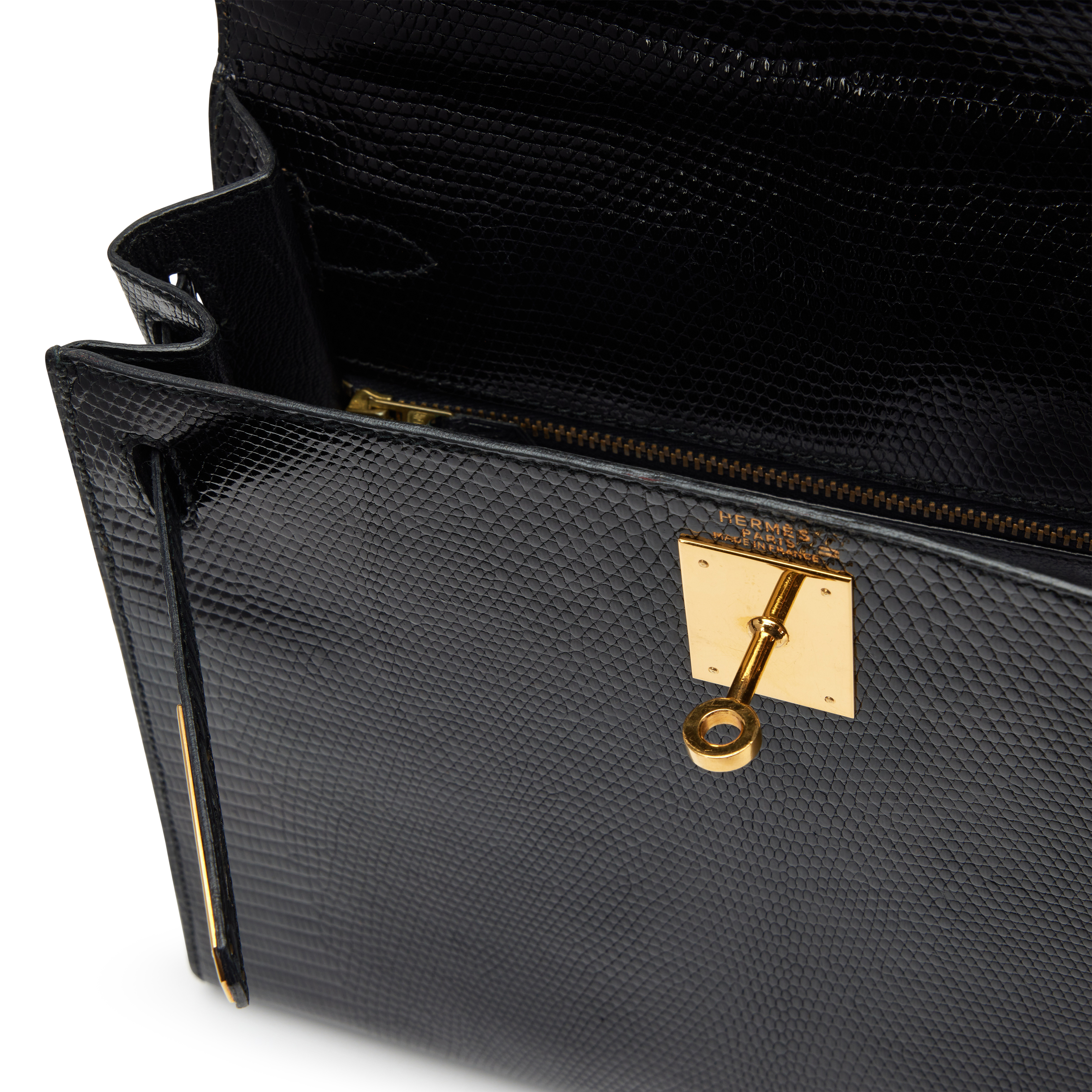Hermès Black Varanus Salvator Lizard Sellier Kelly 28 Gold Hardware, 1987