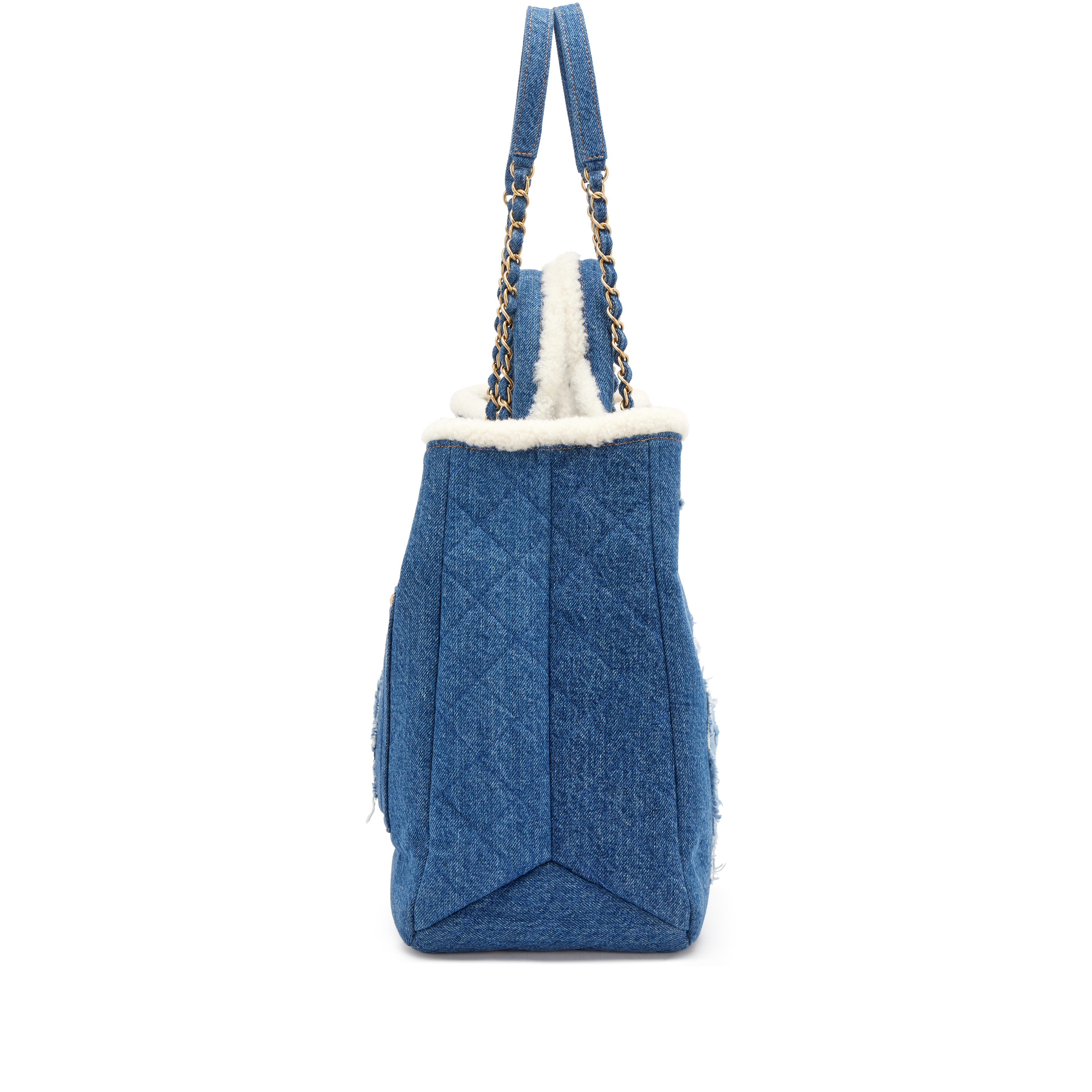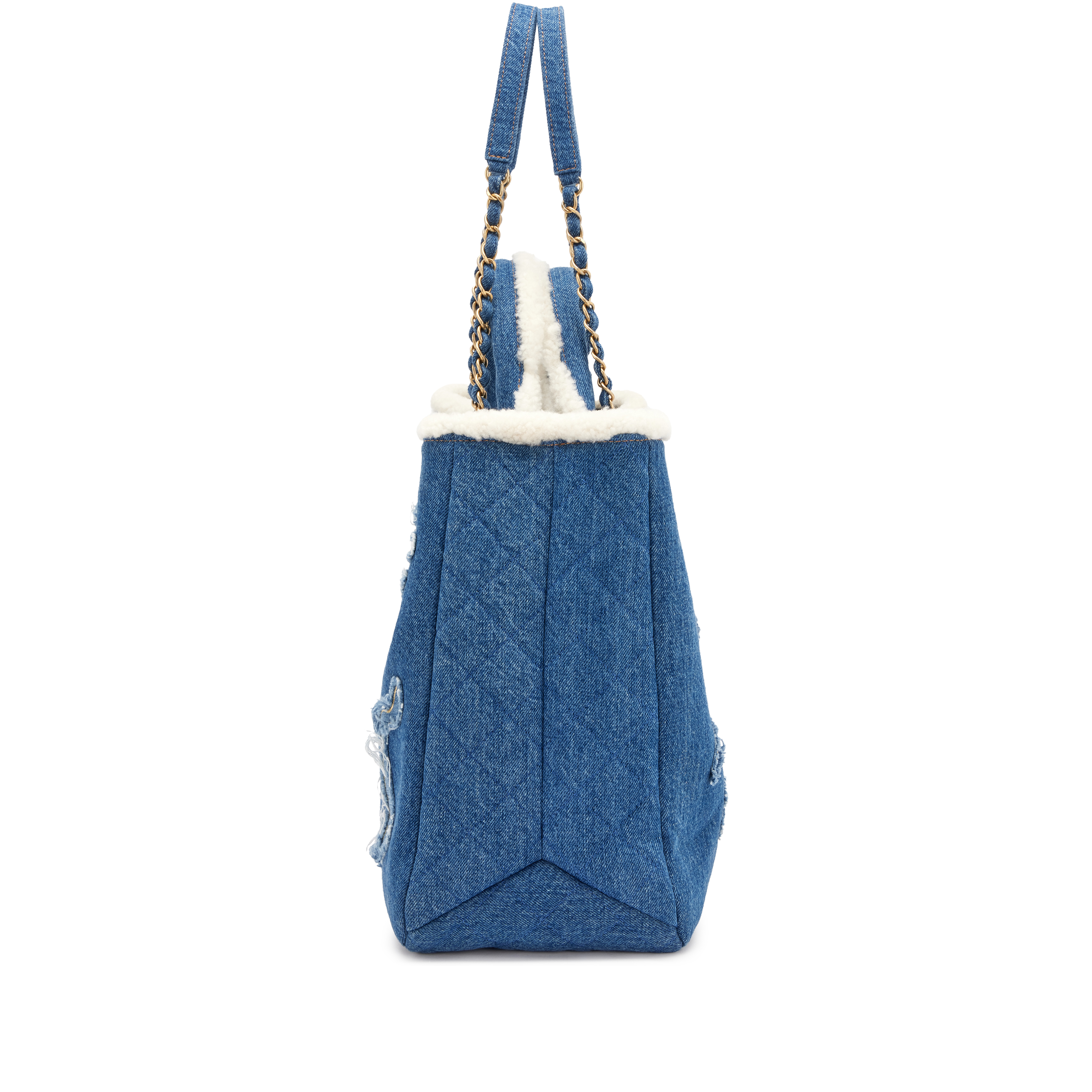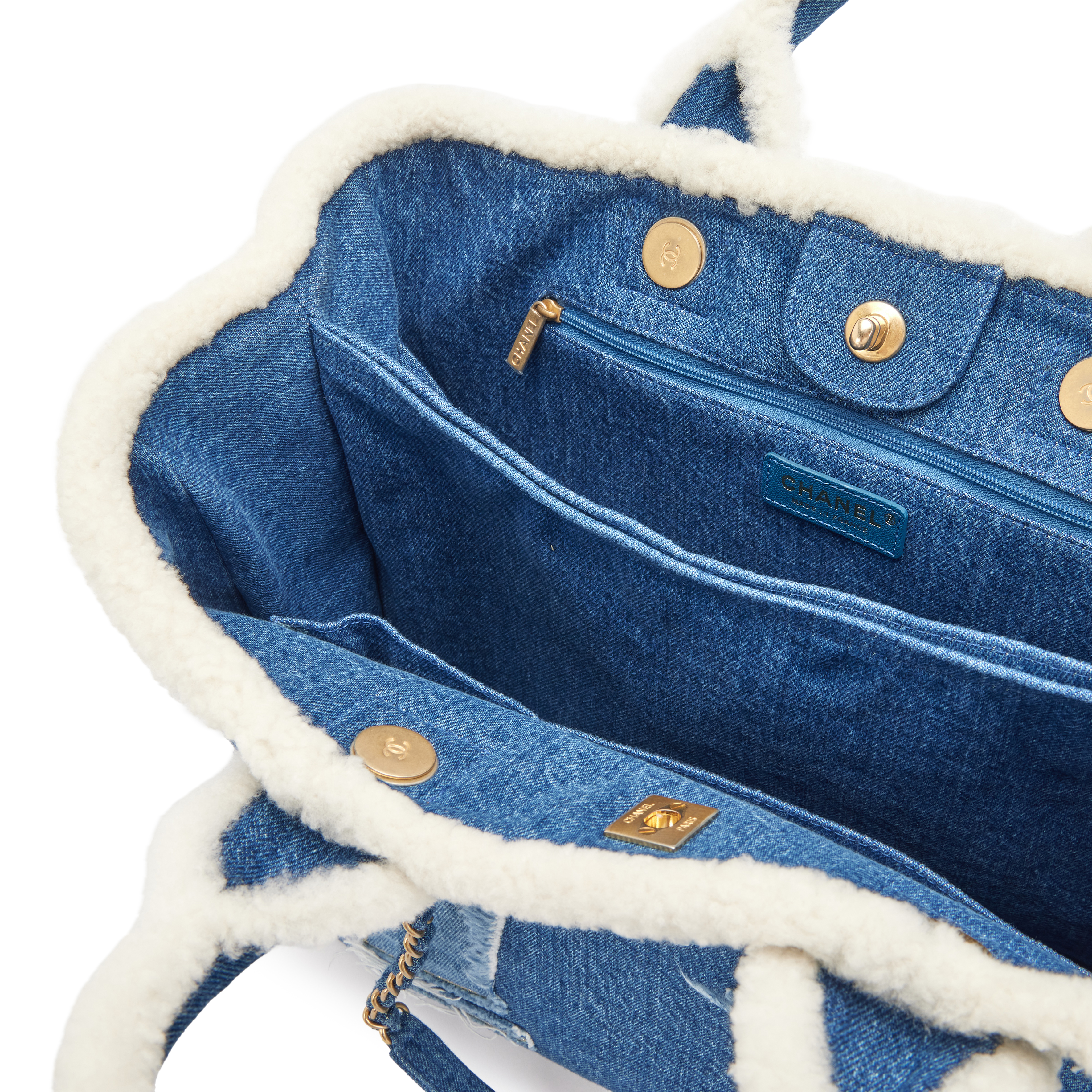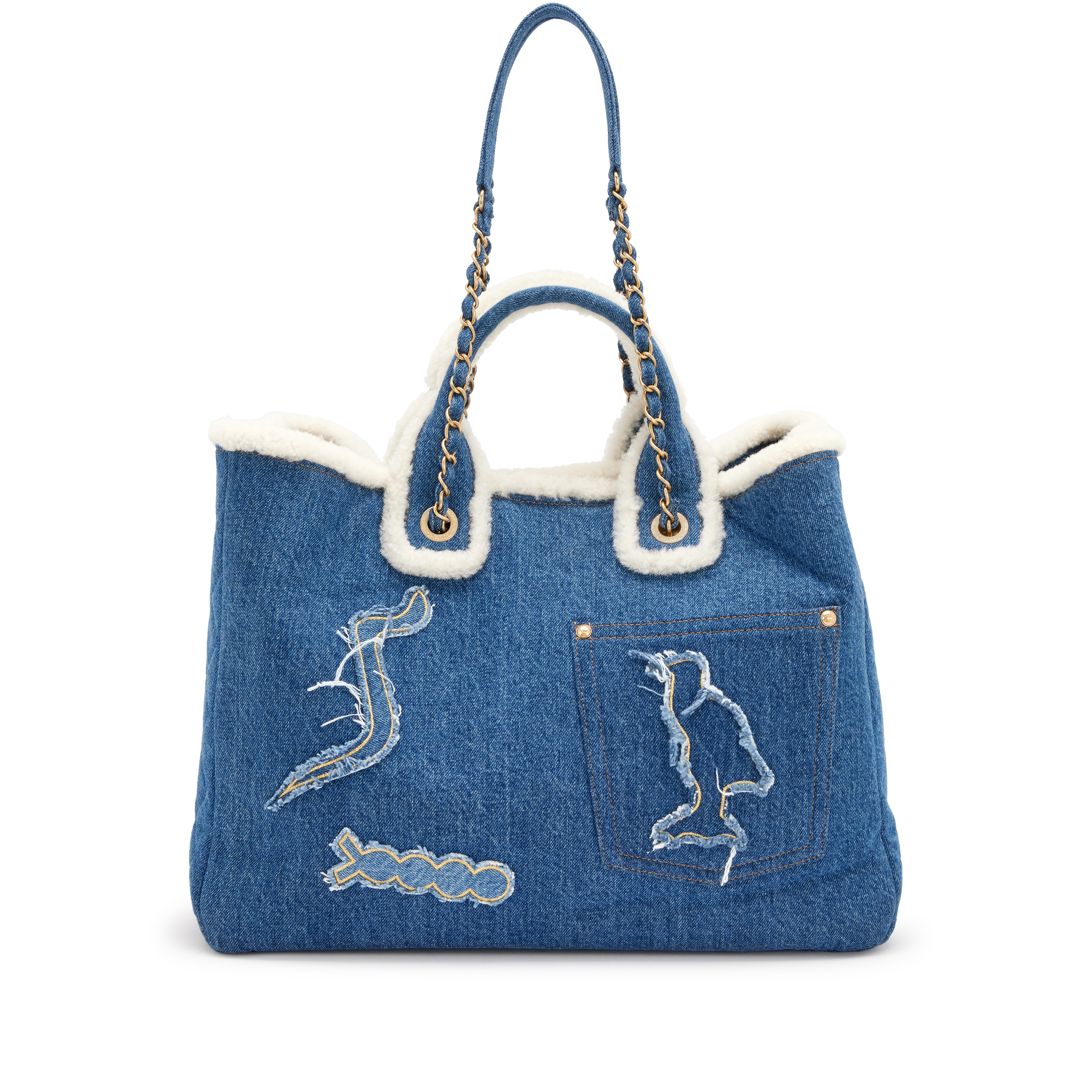 Blue Denim, White Shearling Paris-New York Hieroglyph Coco Tote Gold Hardware, 2019