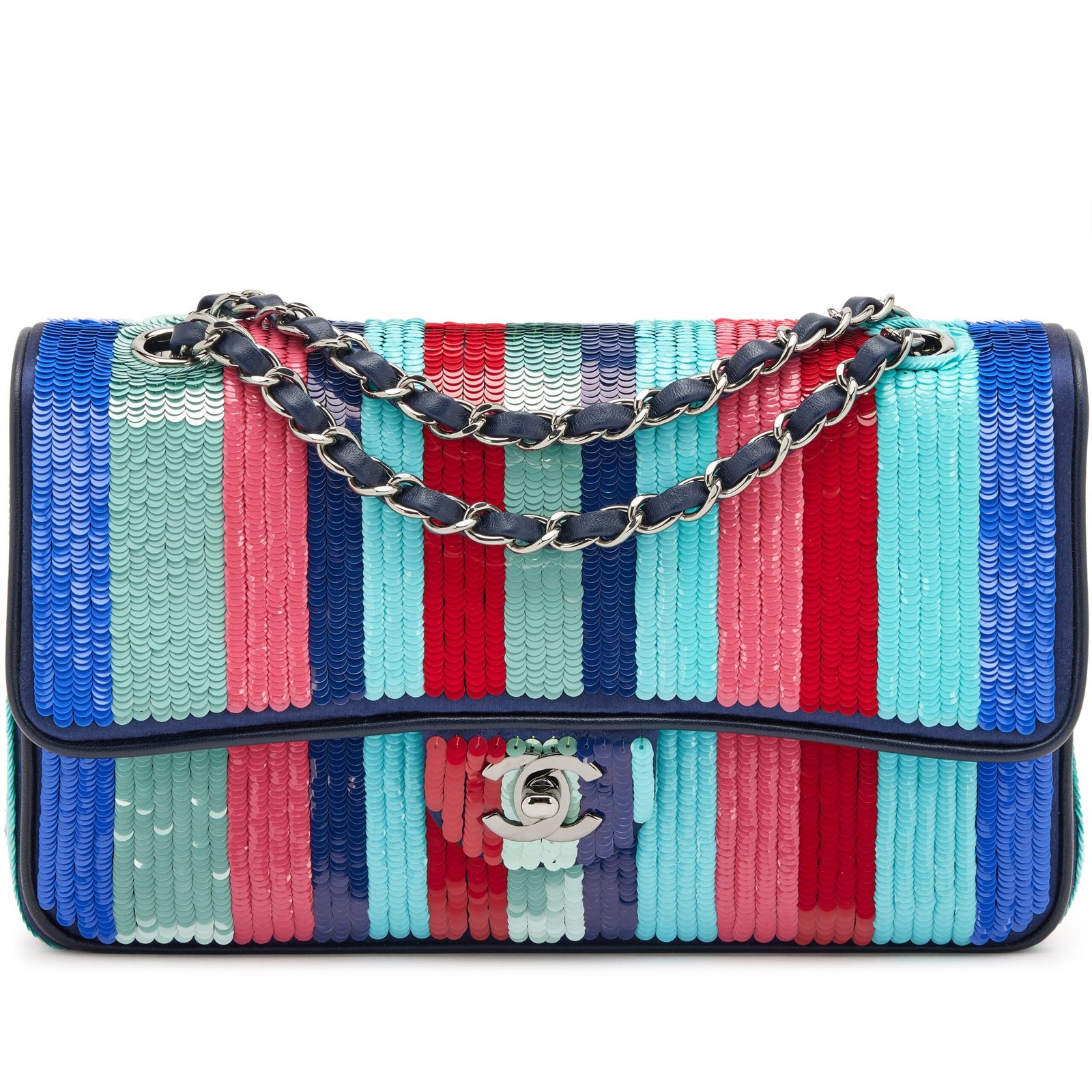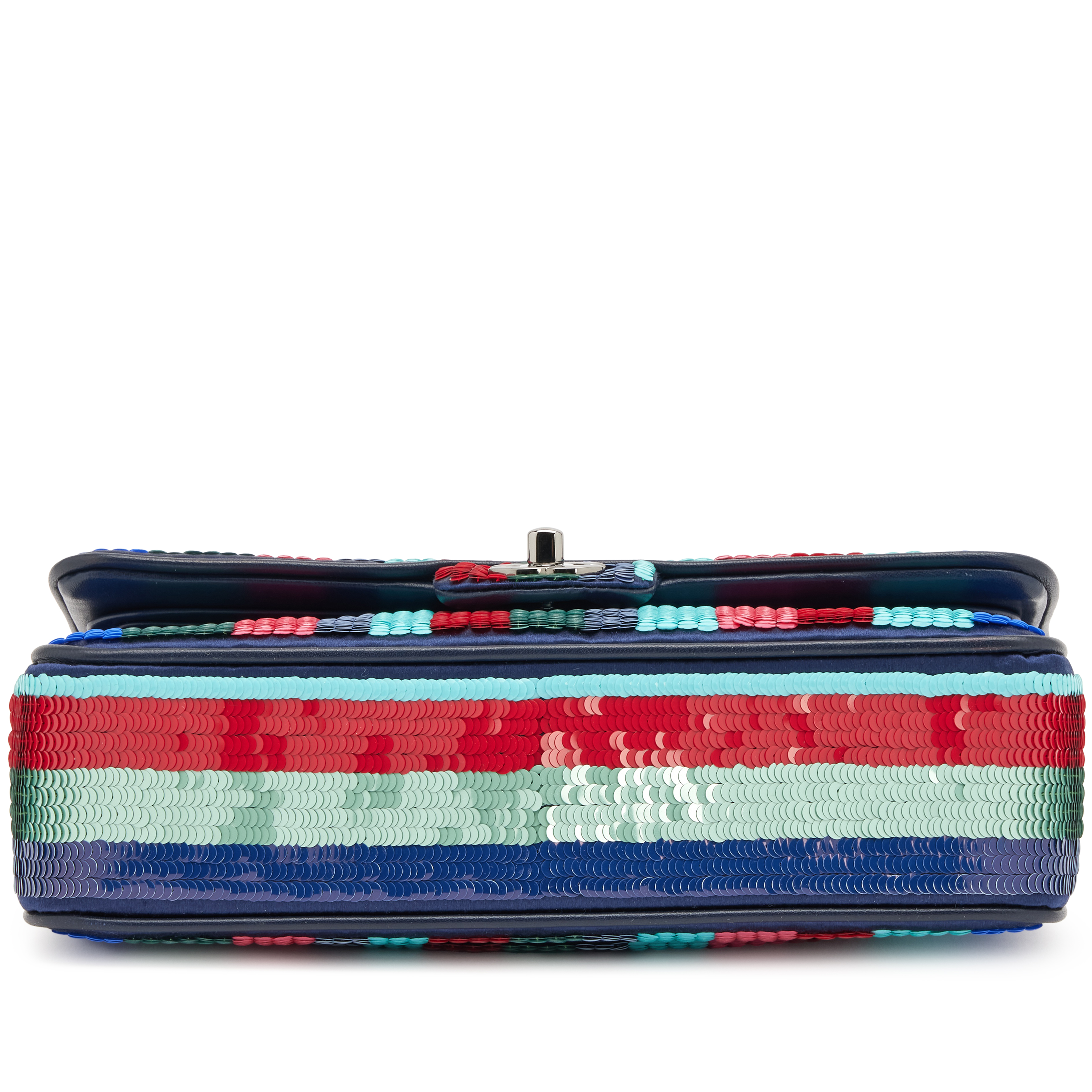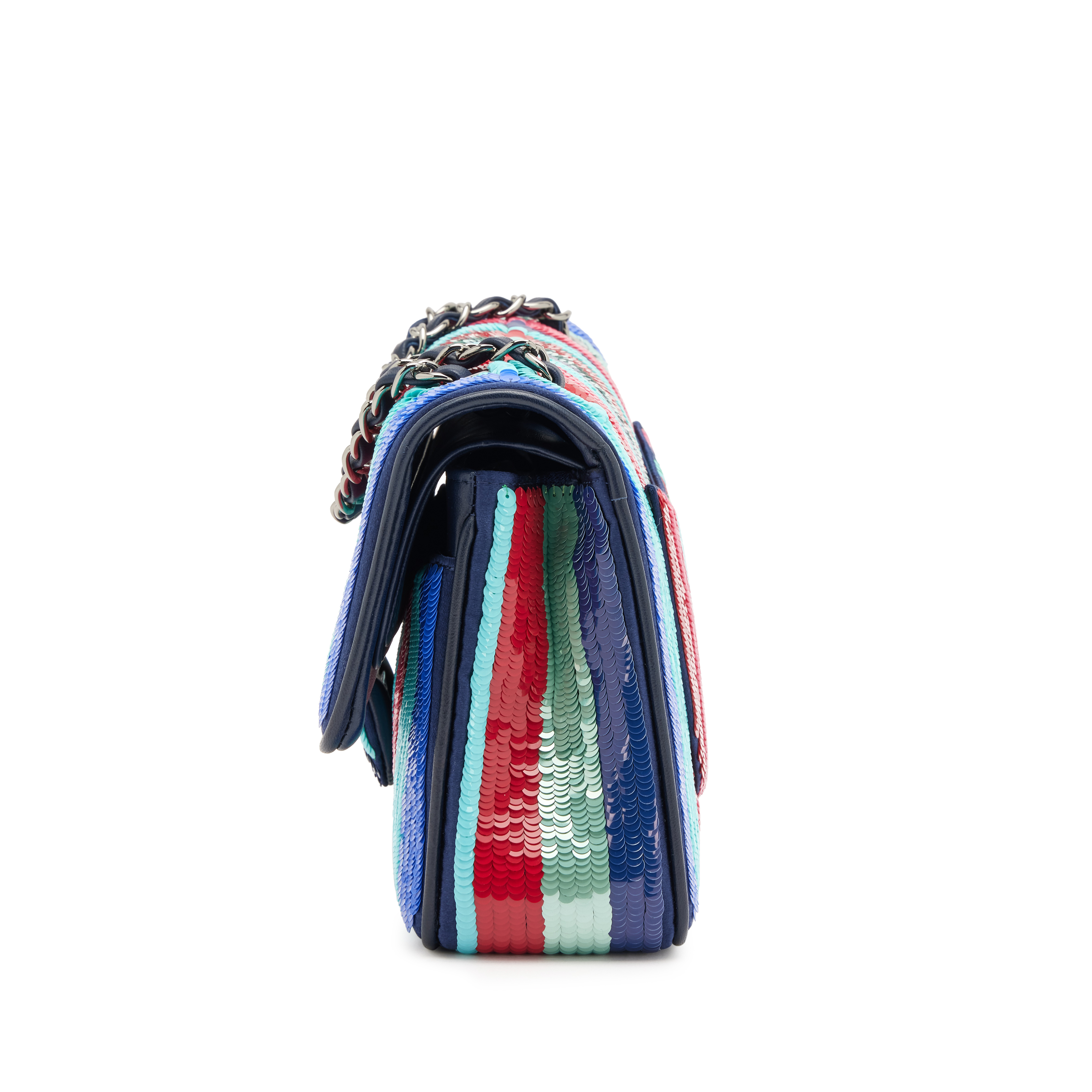 Chanel Blue, Green, Red, Navy, Pink, Rainbow Sequin and Navy Blue Lambskin Medium Classic Double Flap Bag Ruthenium Hardware, 2016