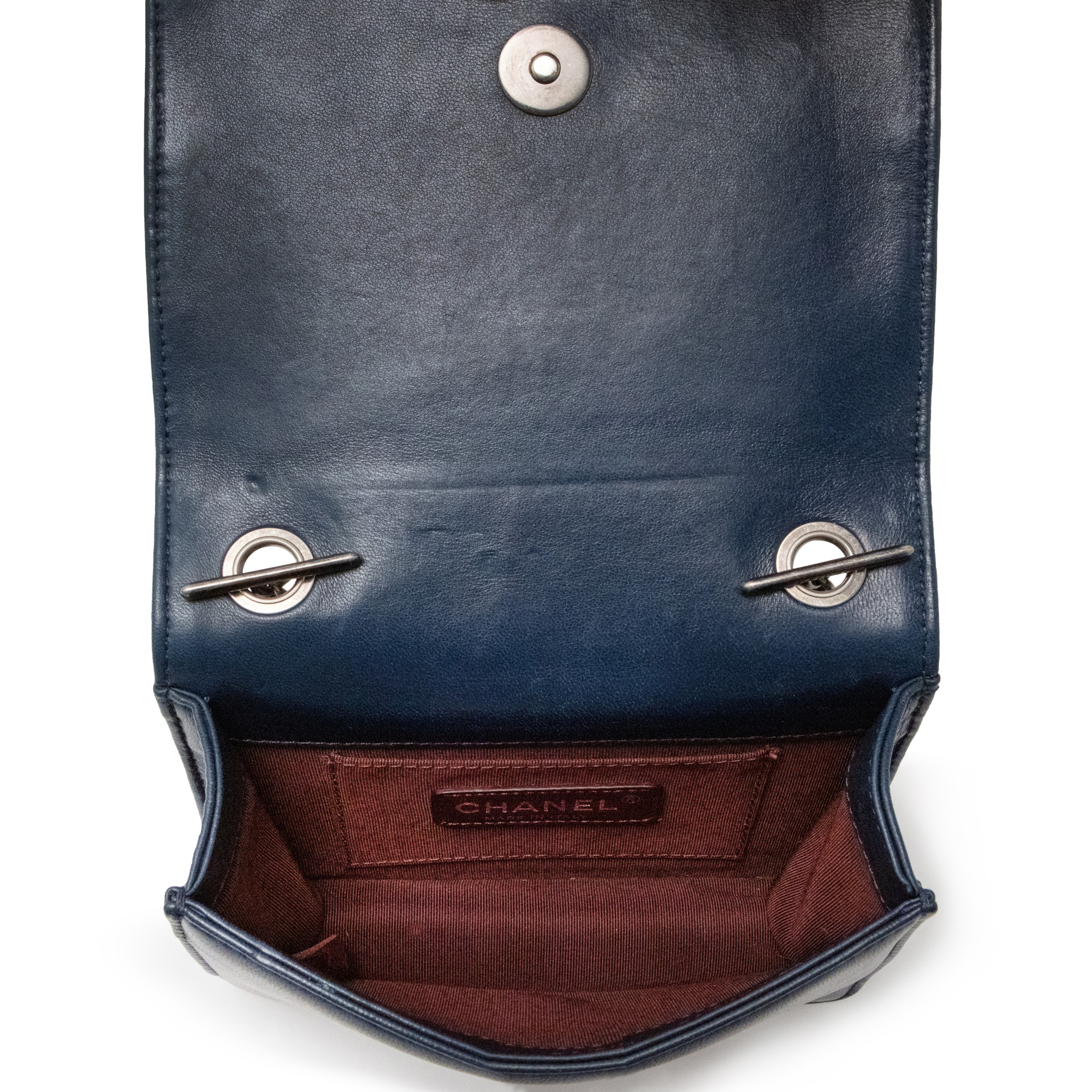 Chanel Blue Lambskin and Plexiglass Boy Lego Brick Ruthenium Hardware, 2013This bag is lined with red fabricThis item is final sale and not eligible for return