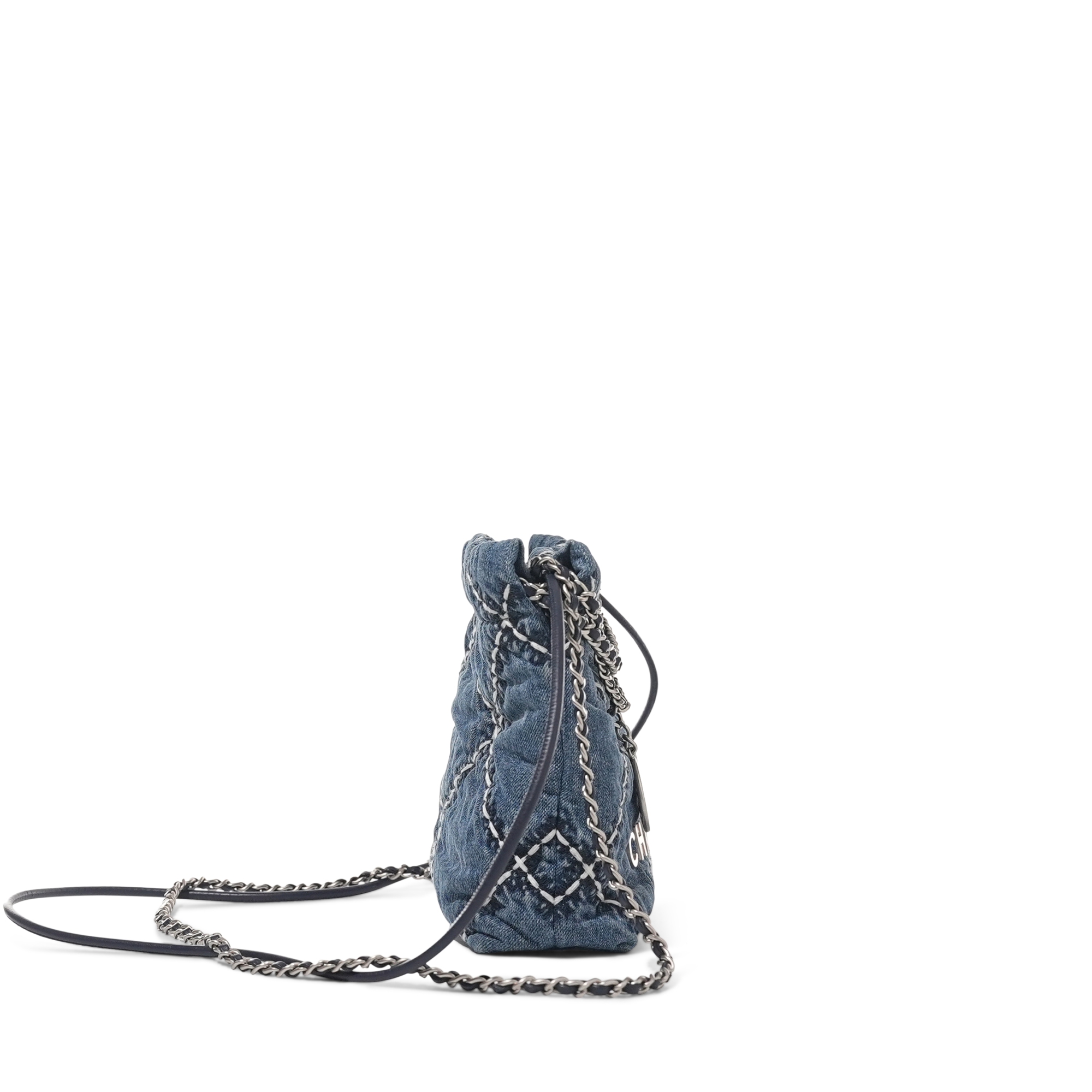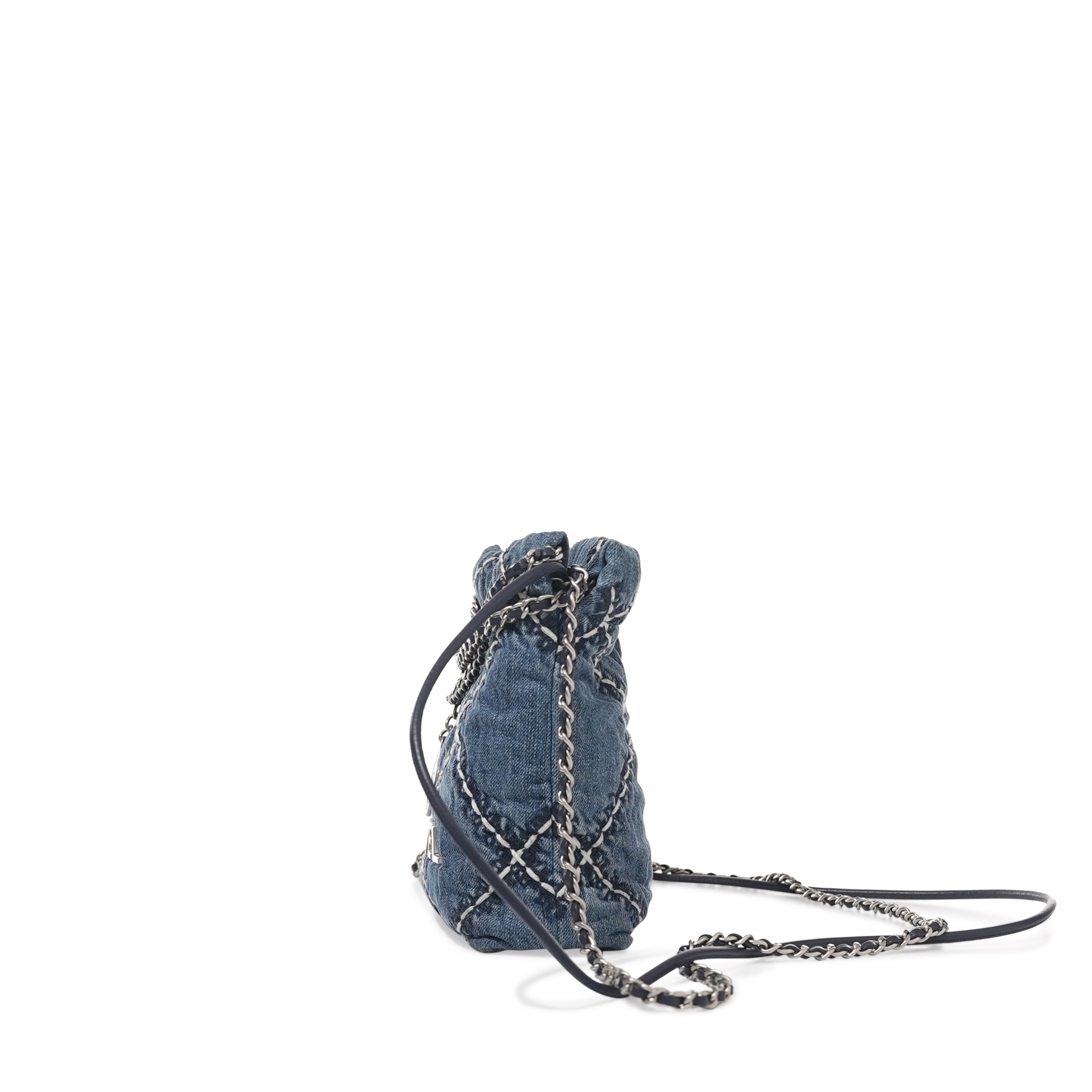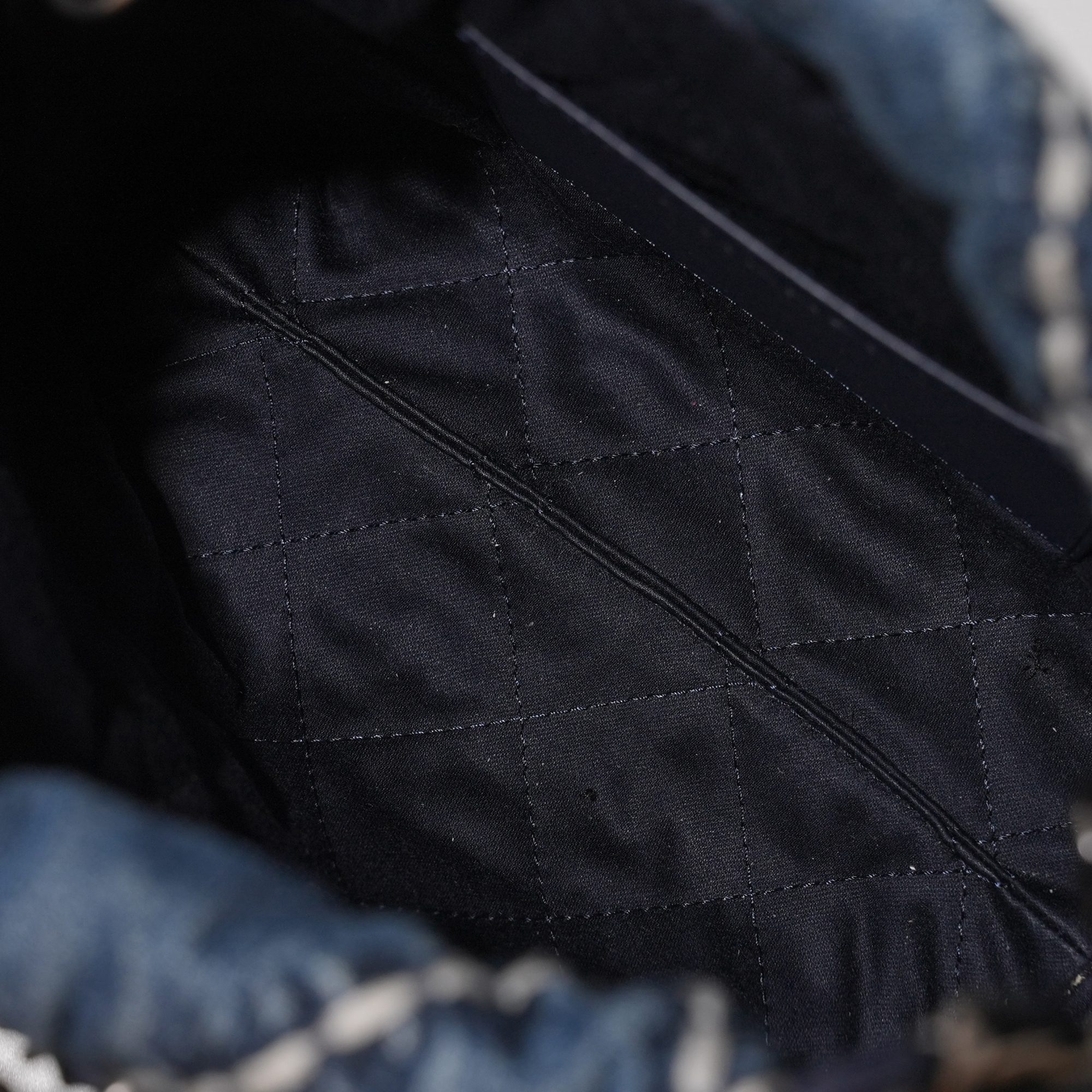 Chanel Blue Quilted Denim Mini 22 Bag Brushed Silver Hardware, 2024The interior is lined with tonal textile materialIncludes dust bag and boxThis item is final sale and not eligible for return