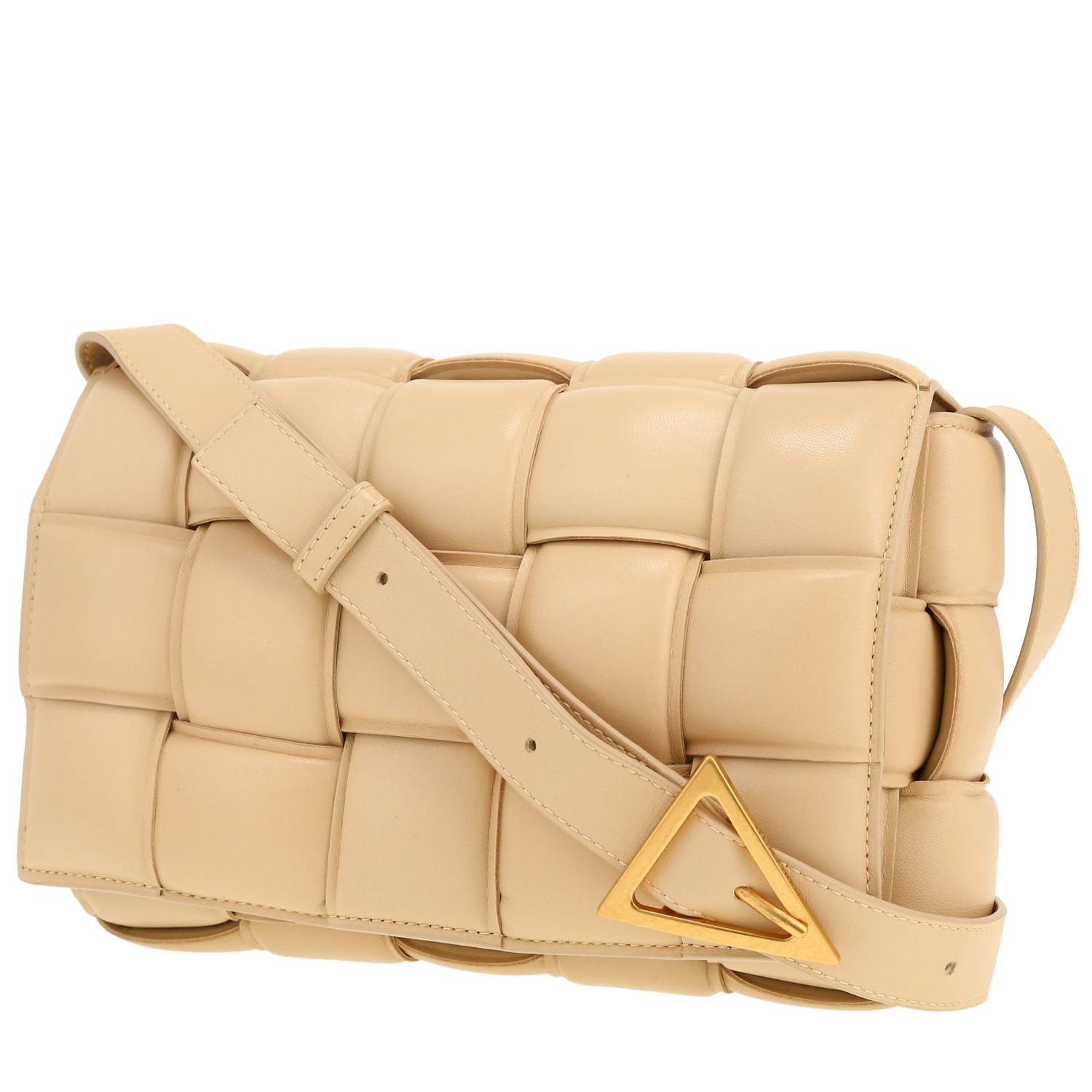 Charming Bottega Veneta Padded Cassette shoulder bag in beige intrecciato leather, hardware in gilt metal, beige leather adjustable strap to be worn accross the body allowing the bag to be worn on the shoulder or accross the body.