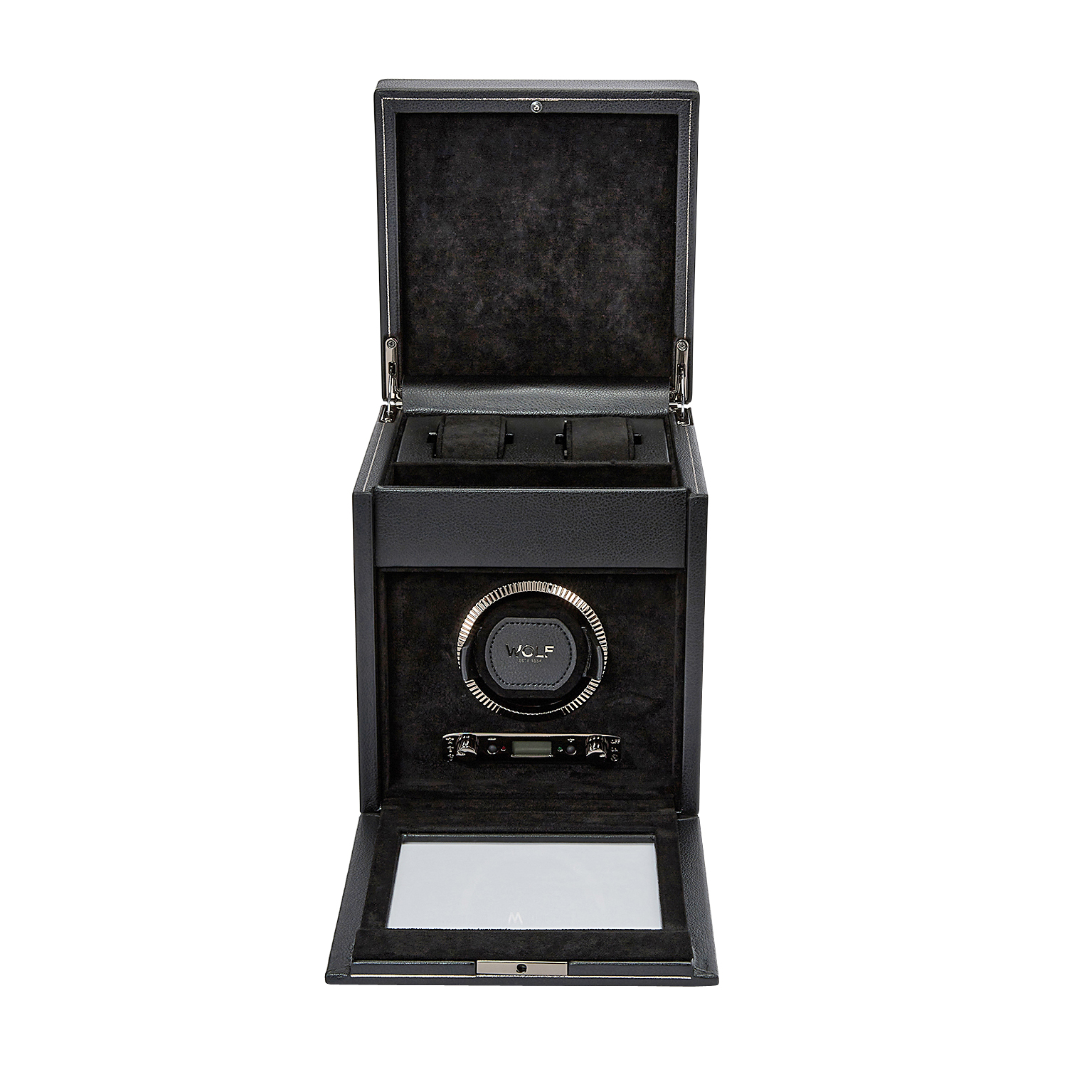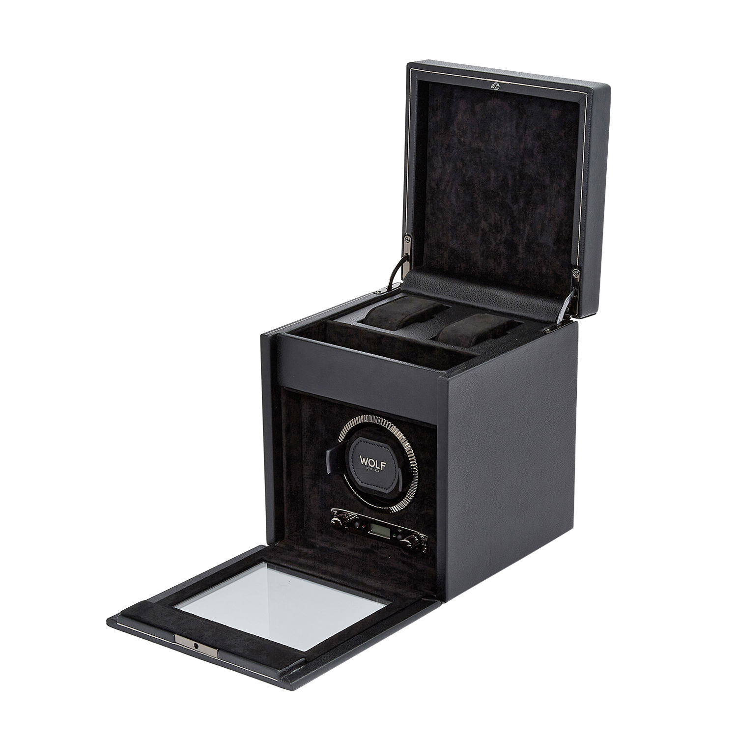 Classics are not created, they are born, destined to be one-off’s, different, unique and above all else, timeless. British Racing has, in a very short span of time, become a classic, truly one of a kind. Take your watches for a spin in the British Racing single watch winder with storage. Patented Innovation – Every WOLF winder counts the precise number of rotations. All other winders estimate the number of rotations. Lock-in dynamic cuff: Patented lock-in dynamic cuff ‘locks’ your timepiece into the rotator drum for a secure fit. Low density foam to accommodate all wrist sizes without putting pressure on your braceletExclusive: Return to start – Your watch will return to the position it started in when the cycle has completedRotation options: 10 second start delay. Can be set between 300 and 1,200 TPD (turns per day). Double the amount of TPD by selecting bi-directional settingVegan leather